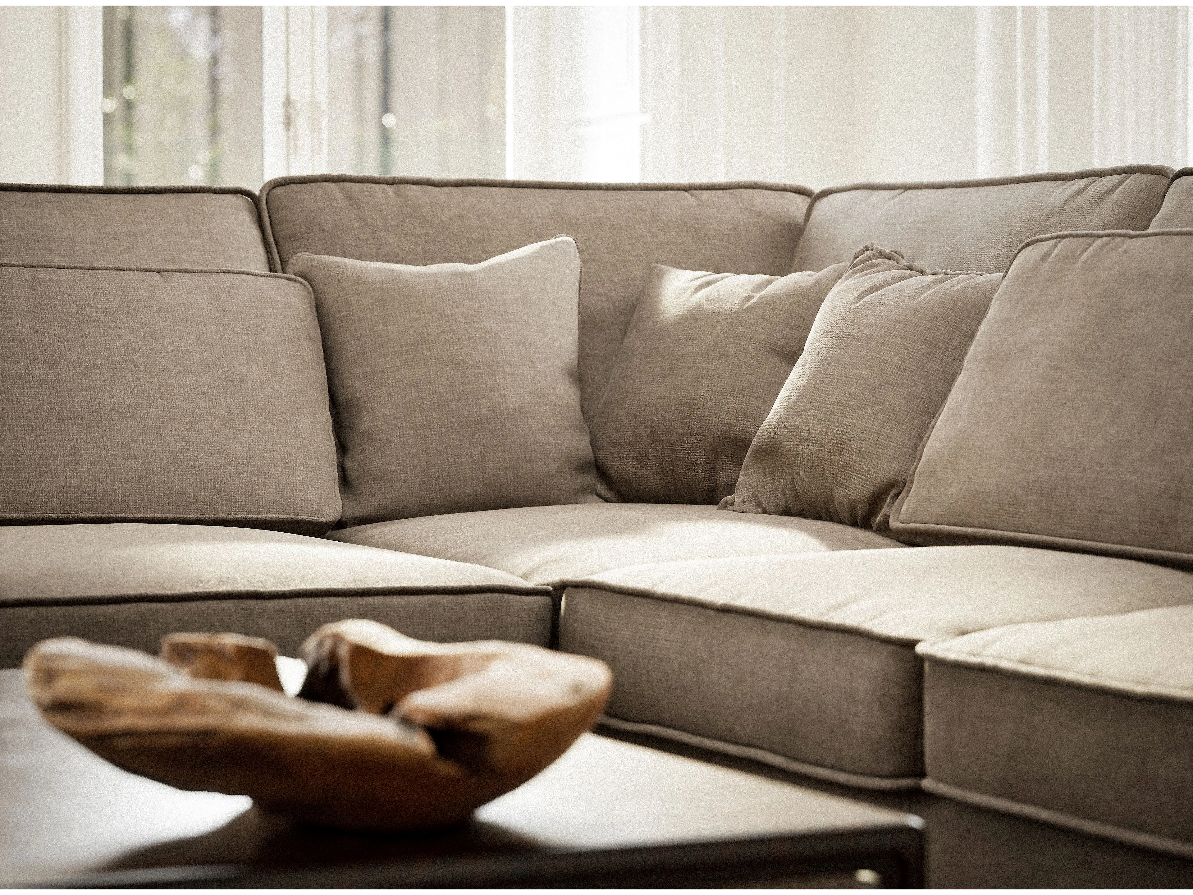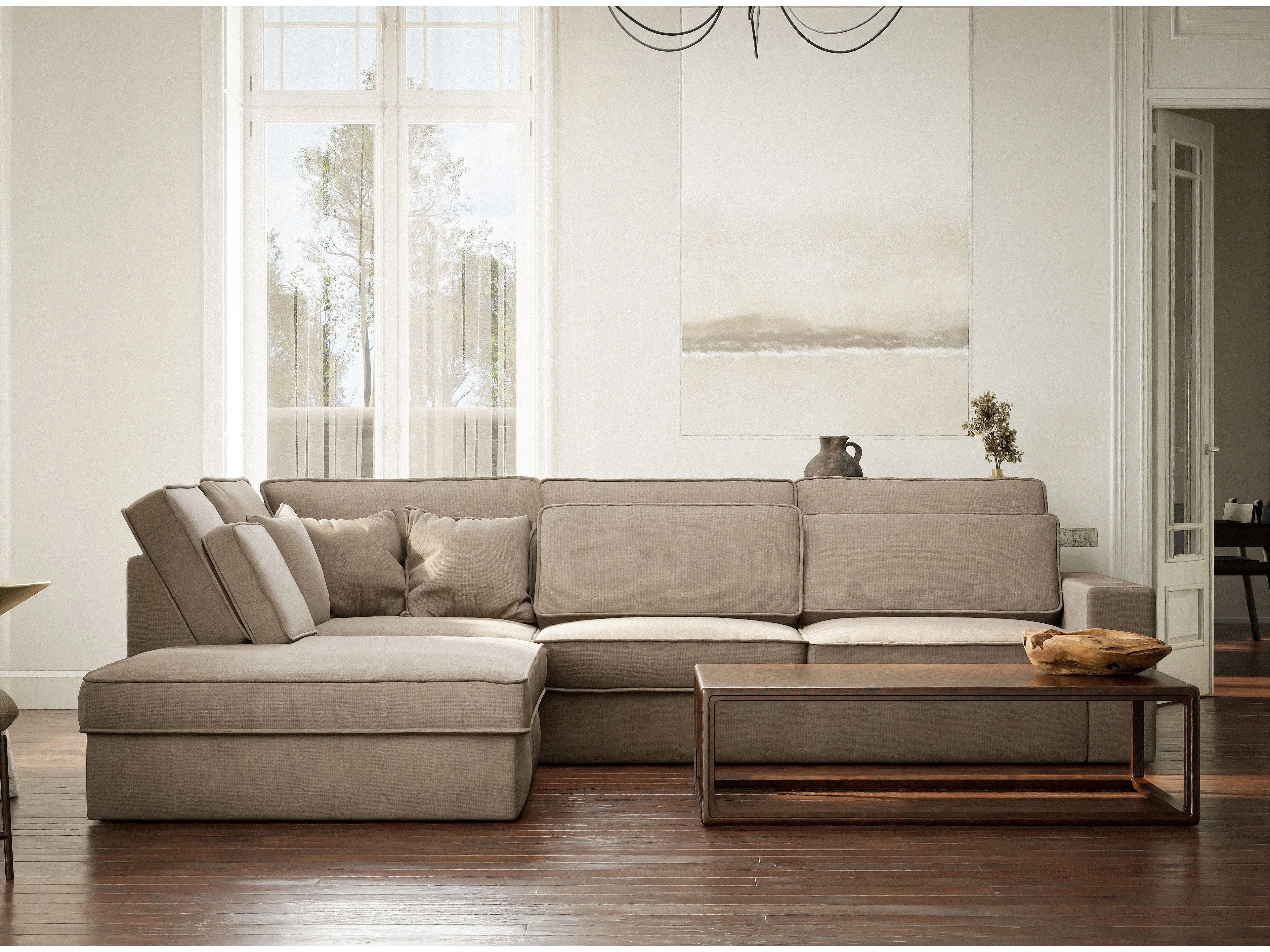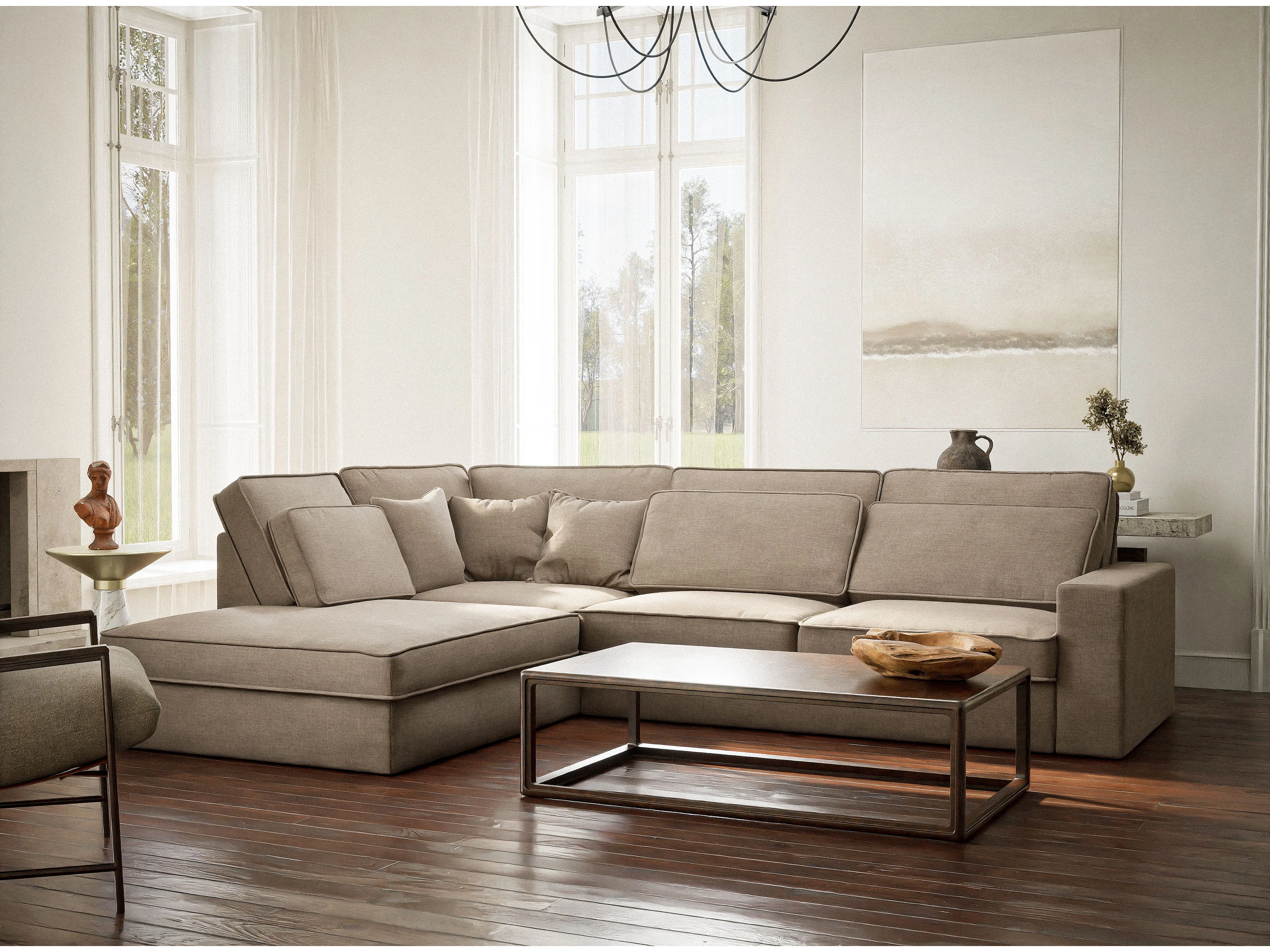 Canapé d'angle gauche 5 places en tissu chenille gris brun KIROU
