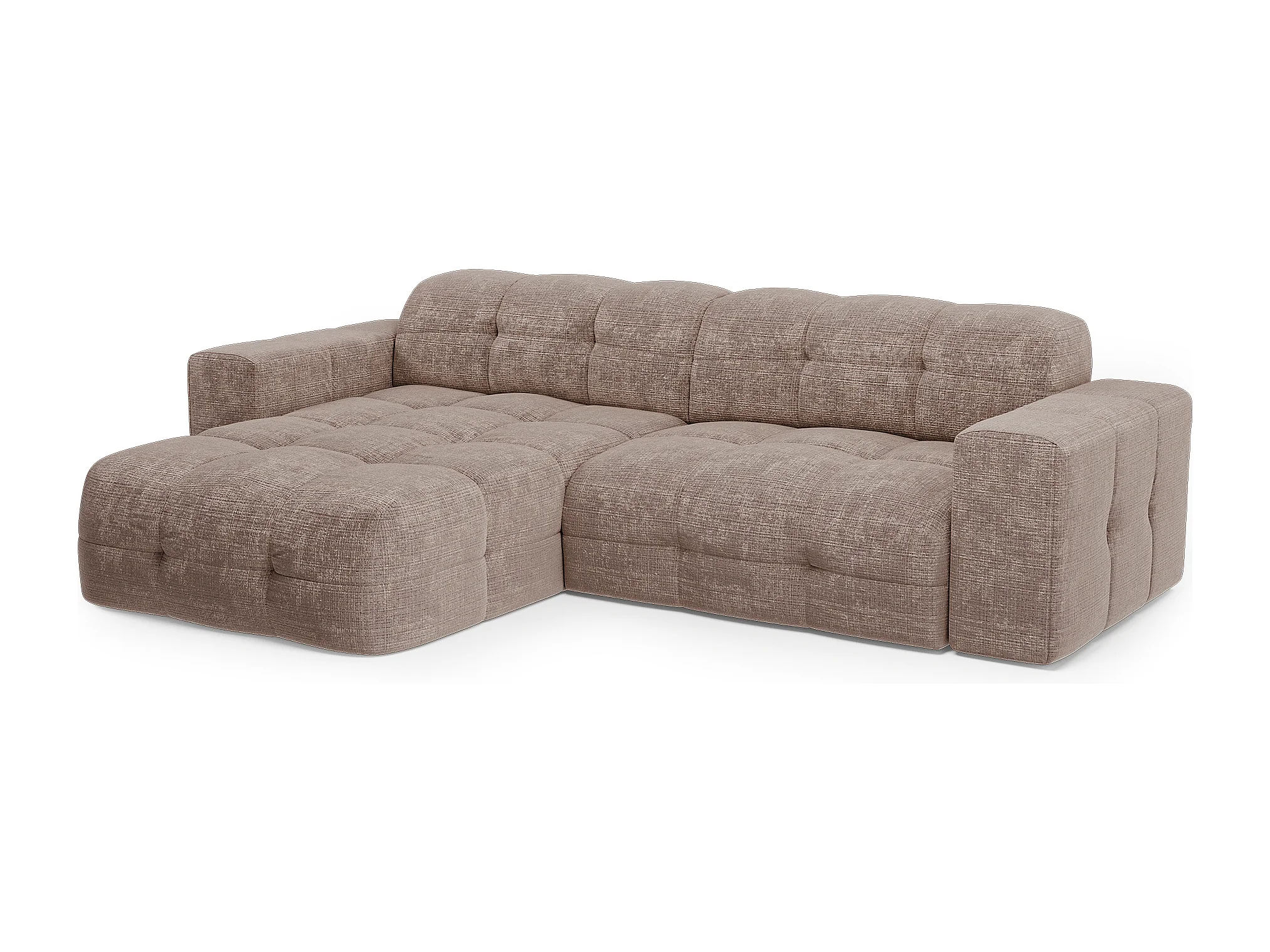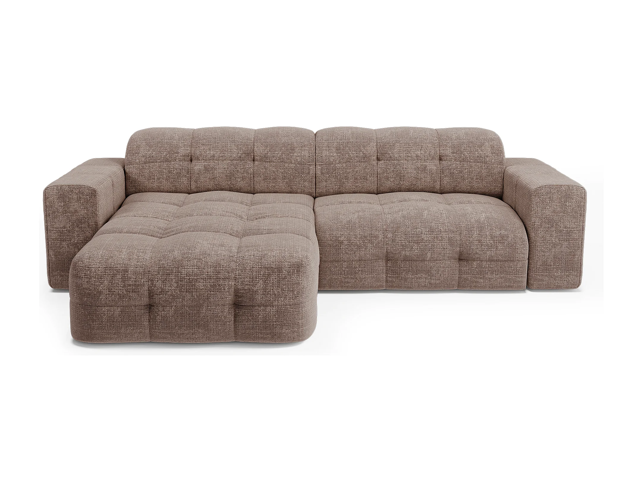 Canapé d'angle gauche 5 places velours gaufré taupe MAEL