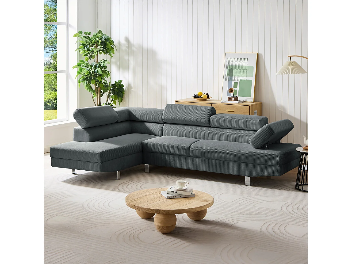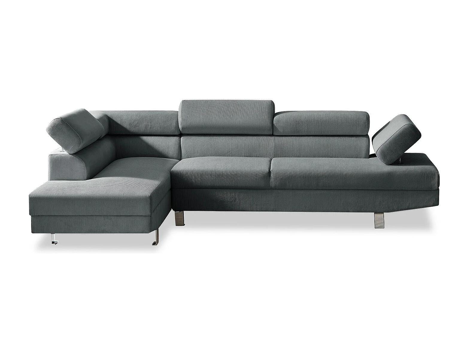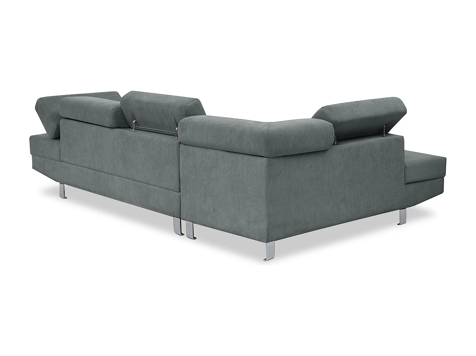 Canapé d'angle gauche avec têtières relevables Palerme velours côtelé gris