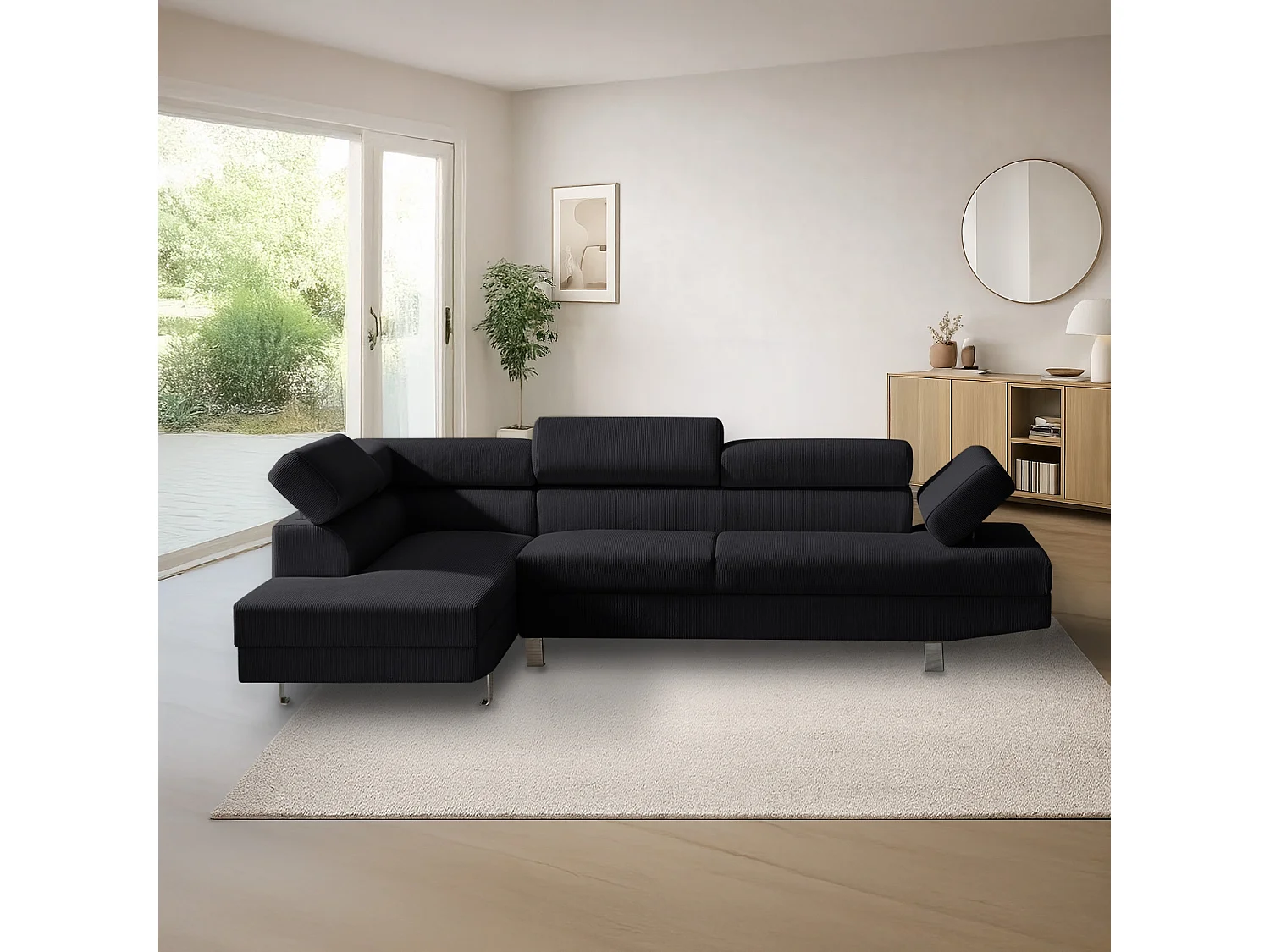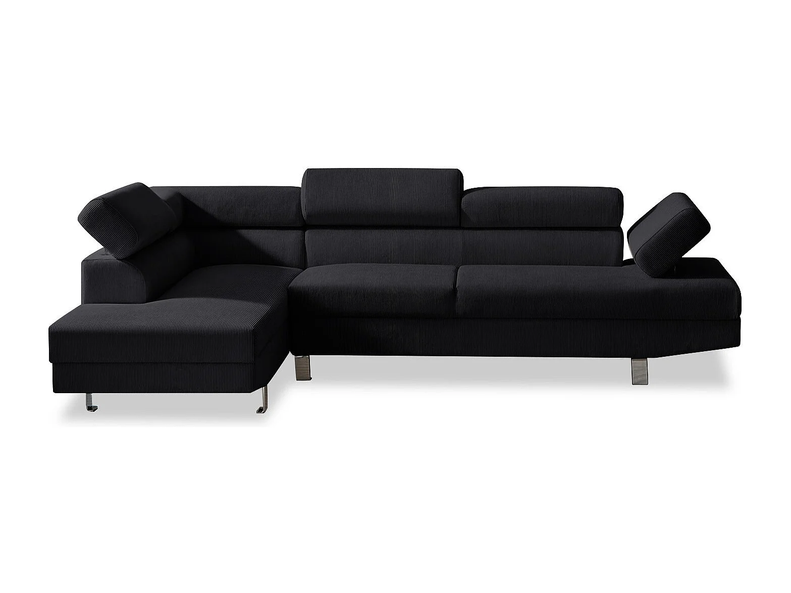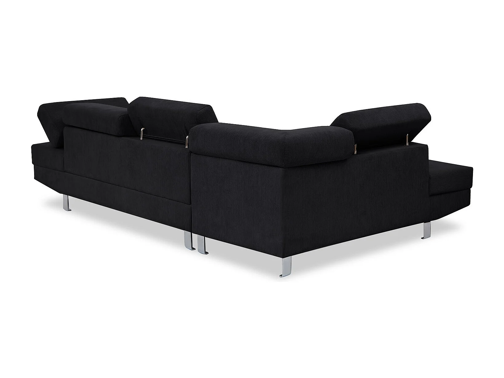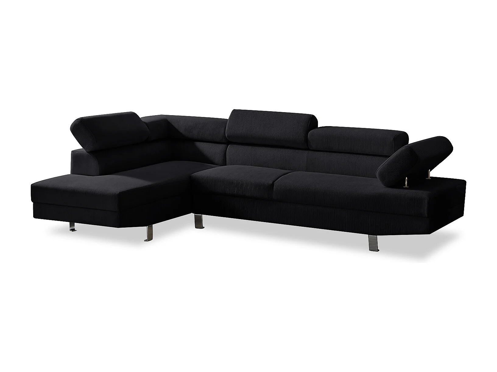Canapé d'angle gauche avec têtières relevables Palerme velours côtelé noir