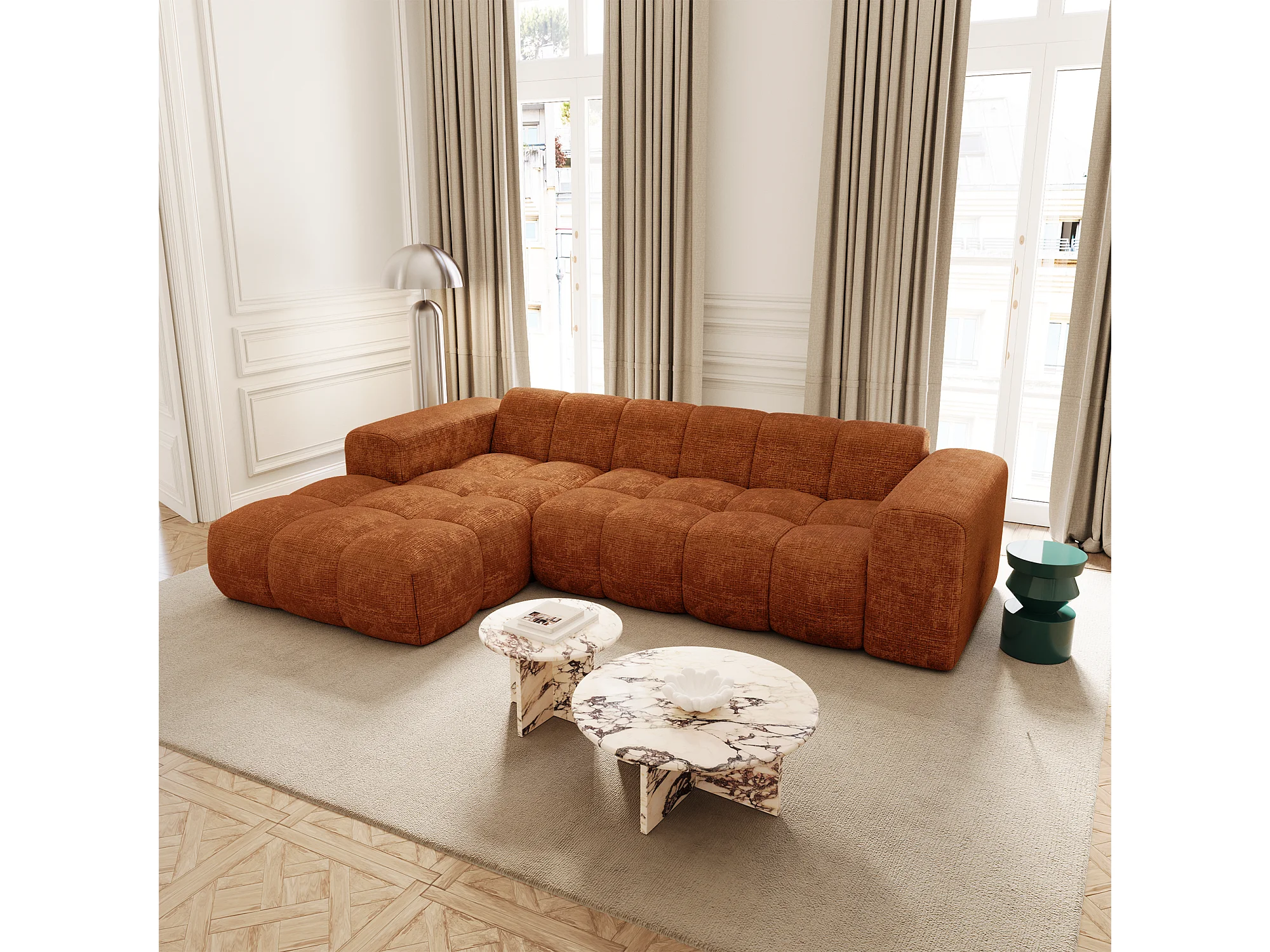 Canapé d'angle gauche BLOOM en Velours gaufré