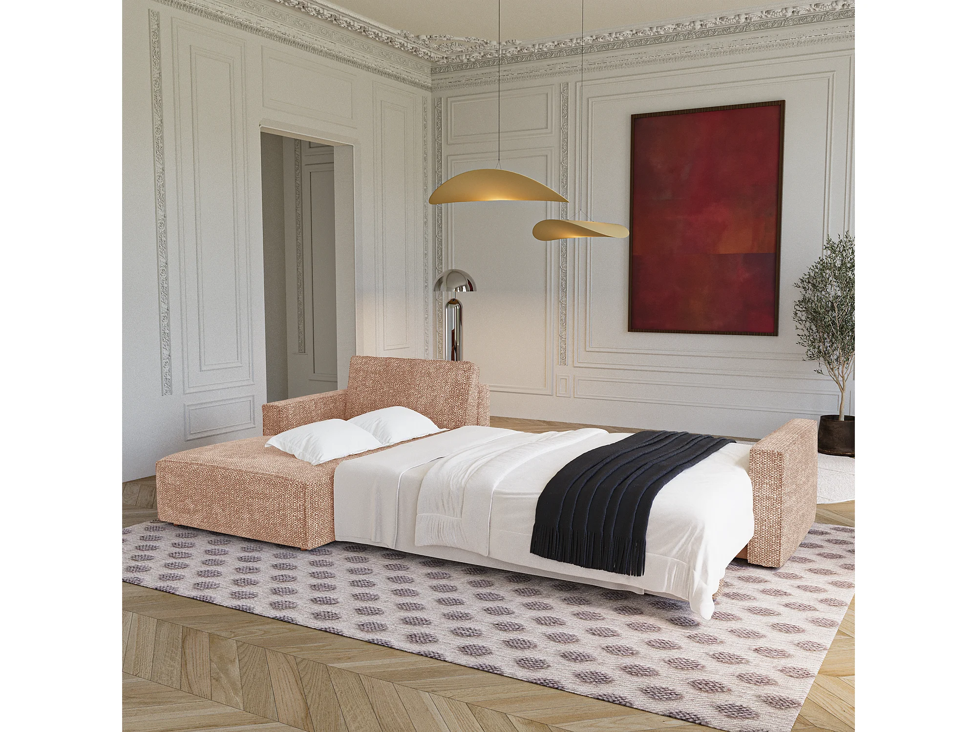 Canapé d'angle gauche convertible avec coffre