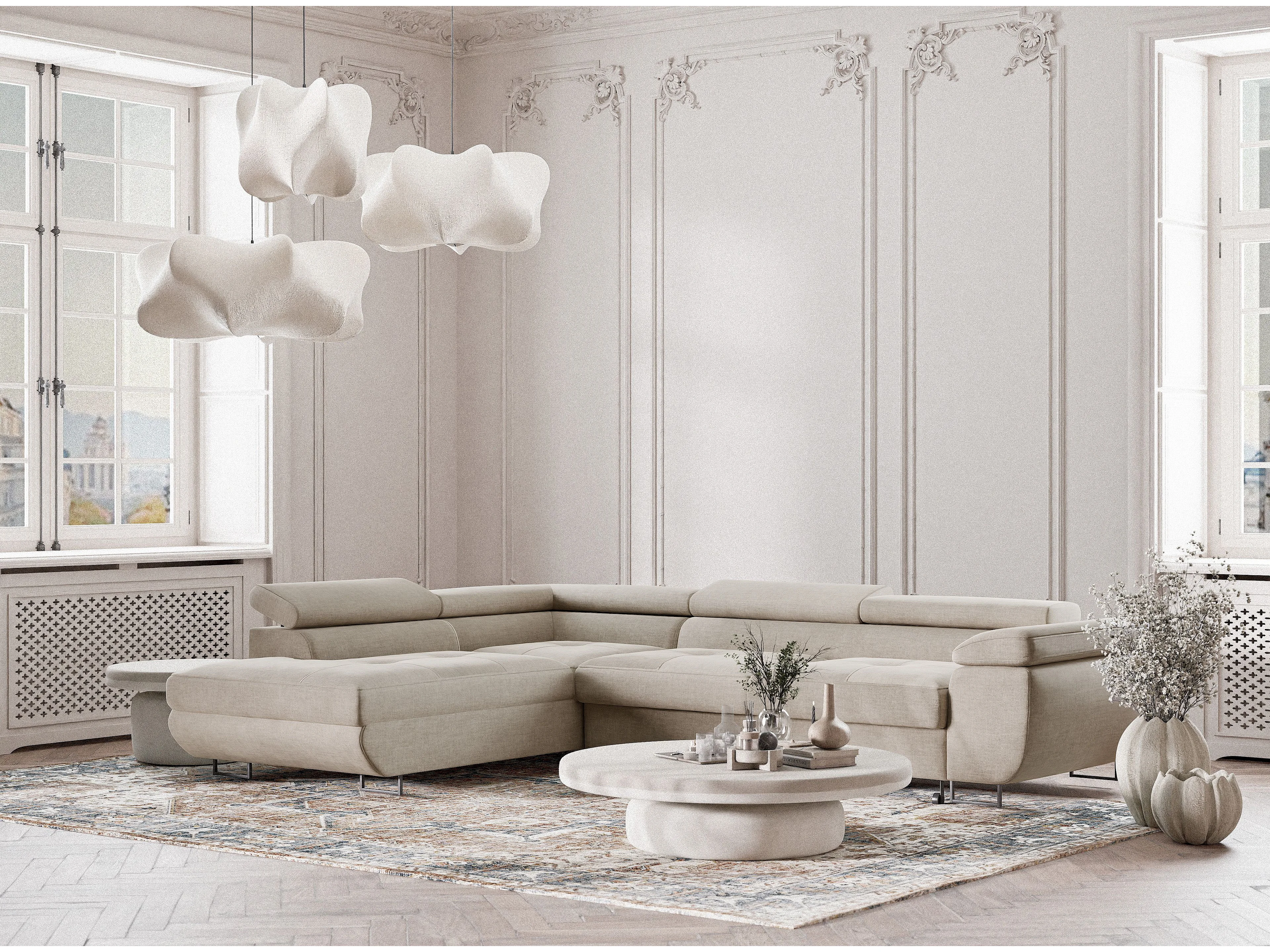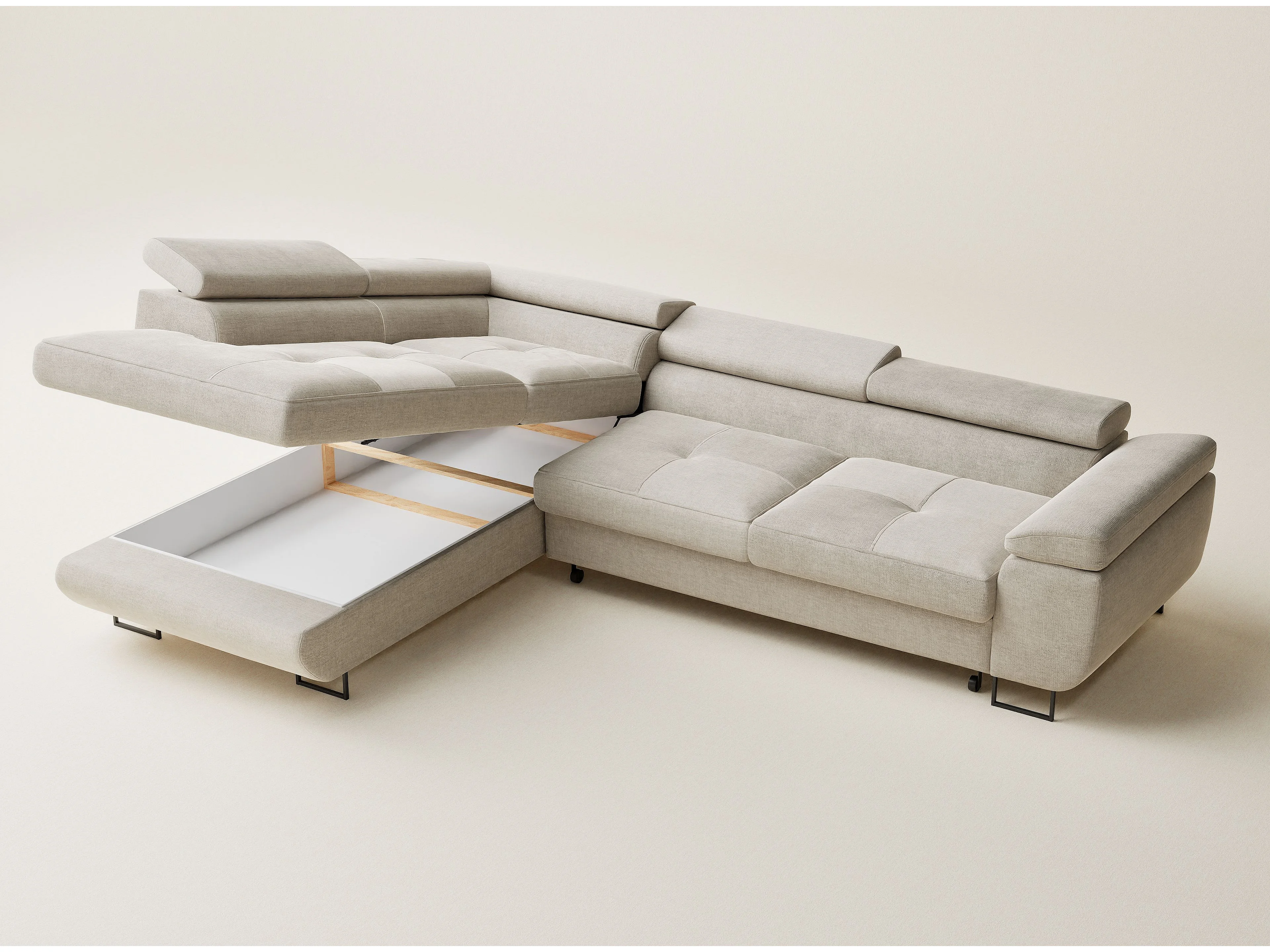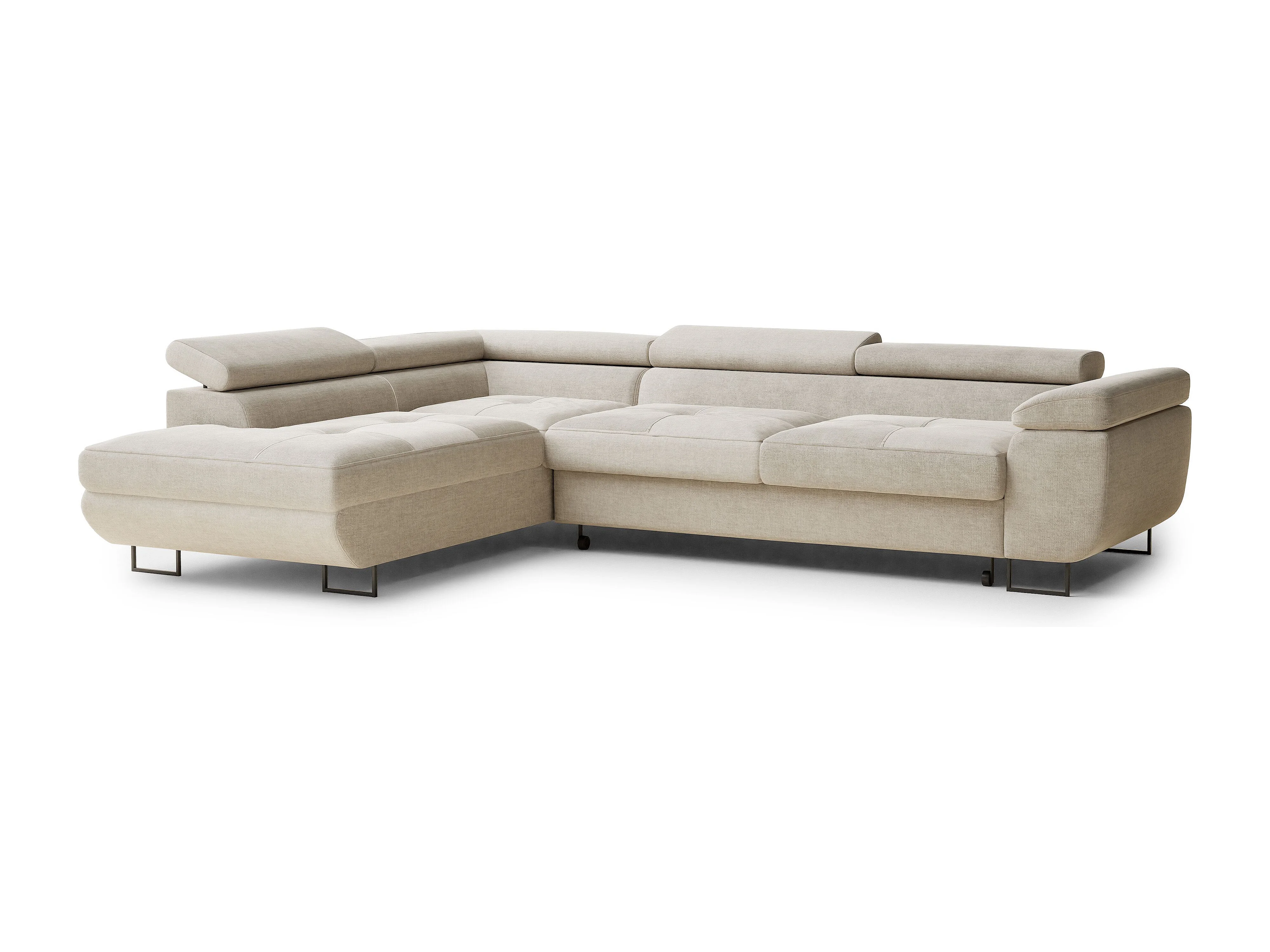 Canapé d'angle gauche convertible en tissu chenille beige CONCORD