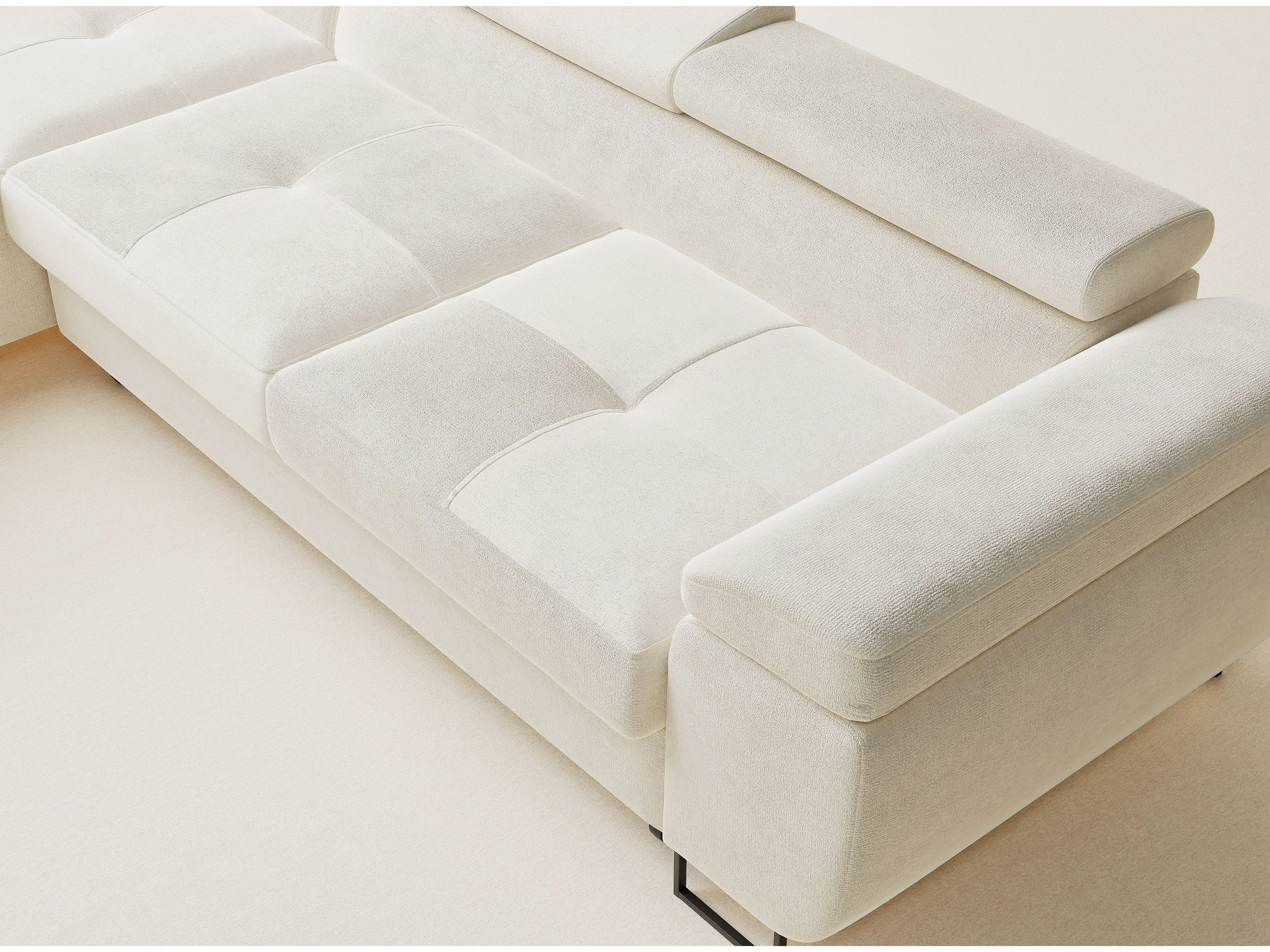 Canapé d'angle gauche convertible en tissu chenille creme CONCORD