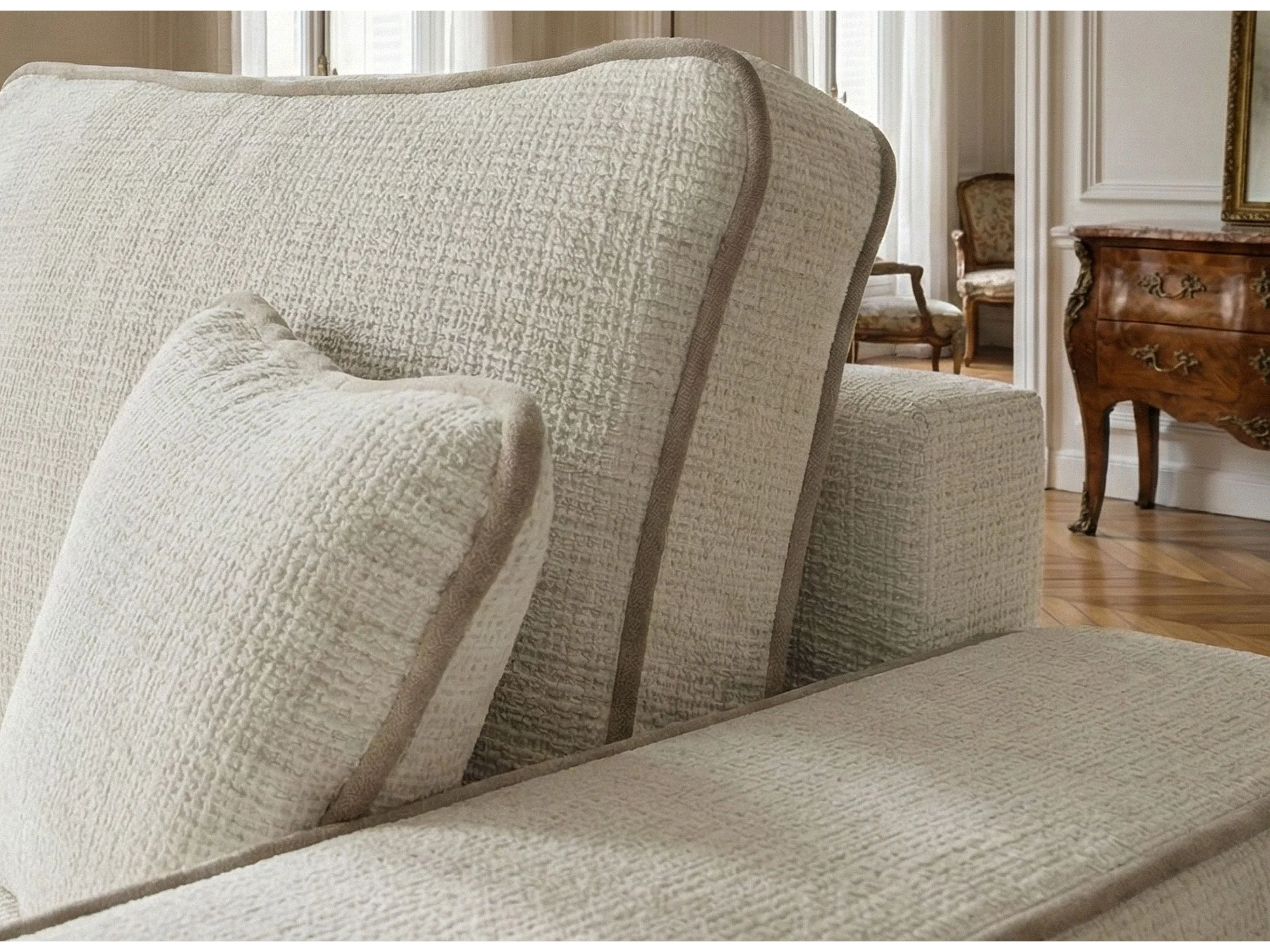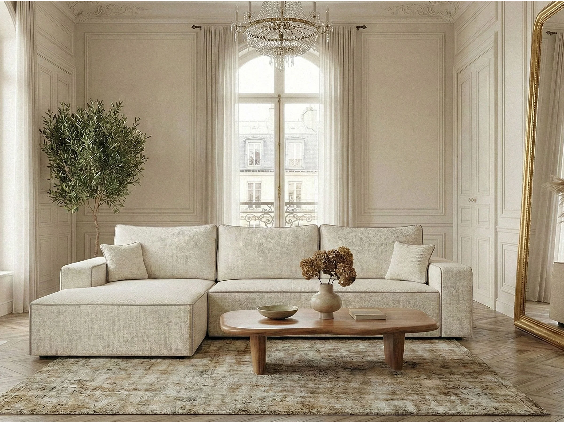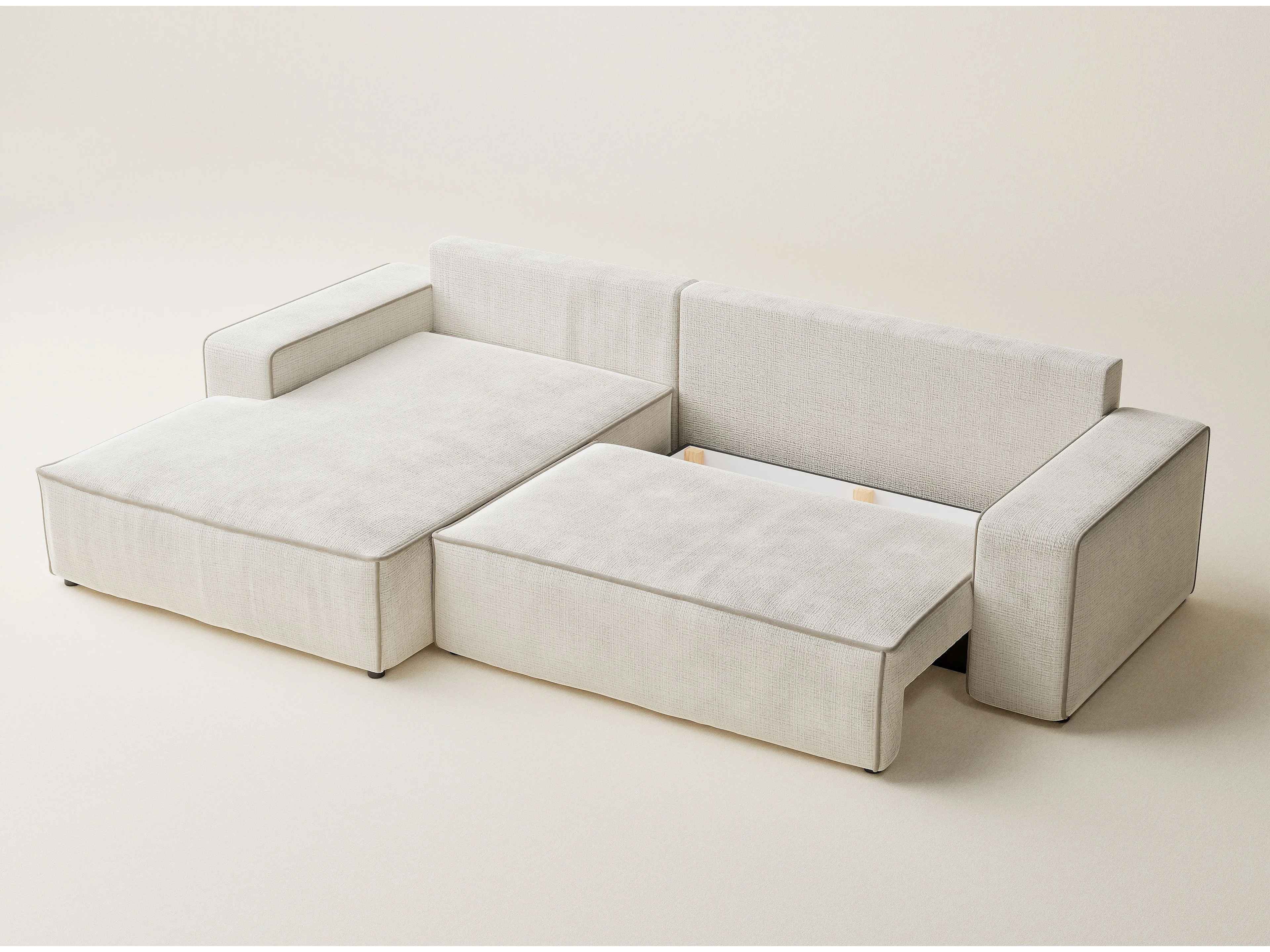 Canapé d'angle gauche convertible en tissu chenille ivoire-beige MODO