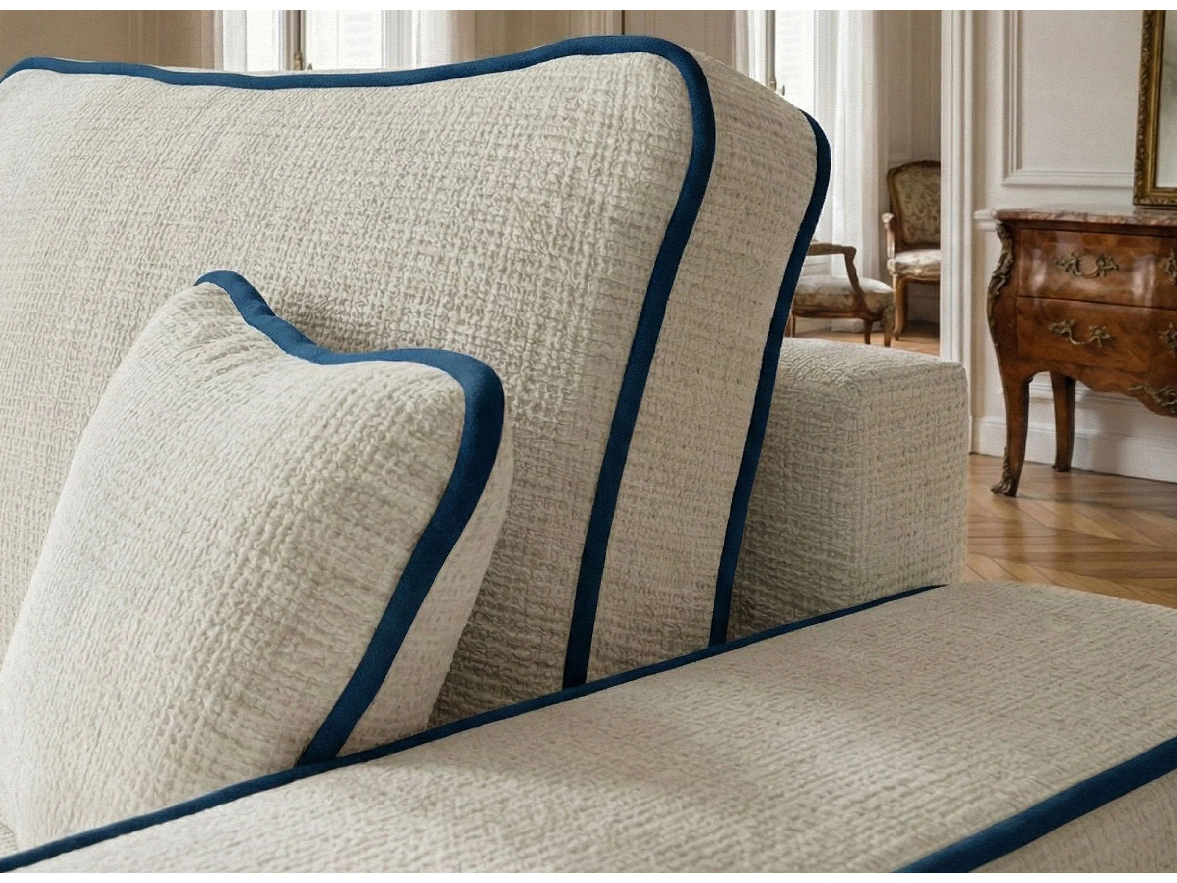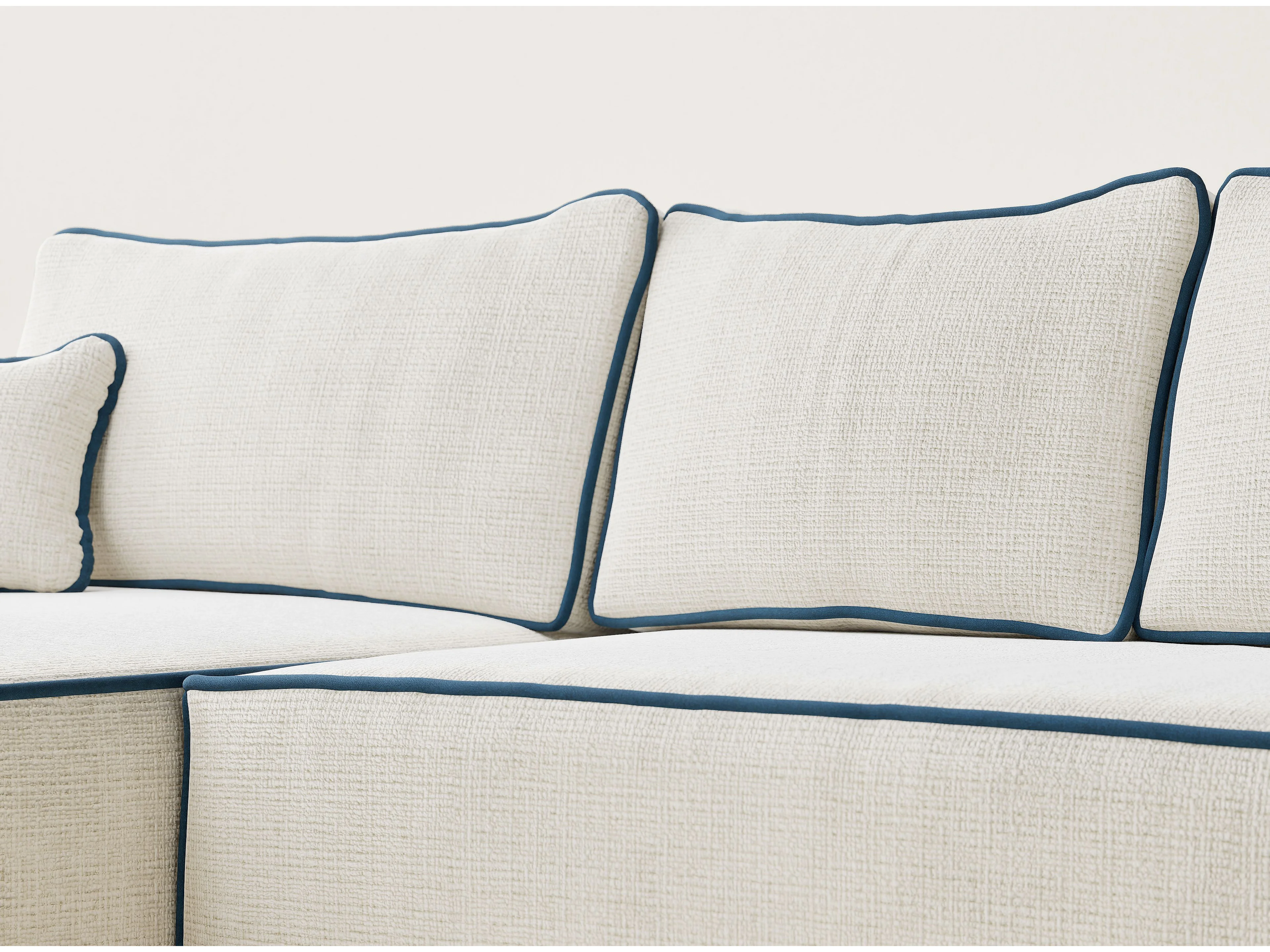 Canapé d'angle gauche convertible en tissu chenille ivoire-bleu foncé MODO