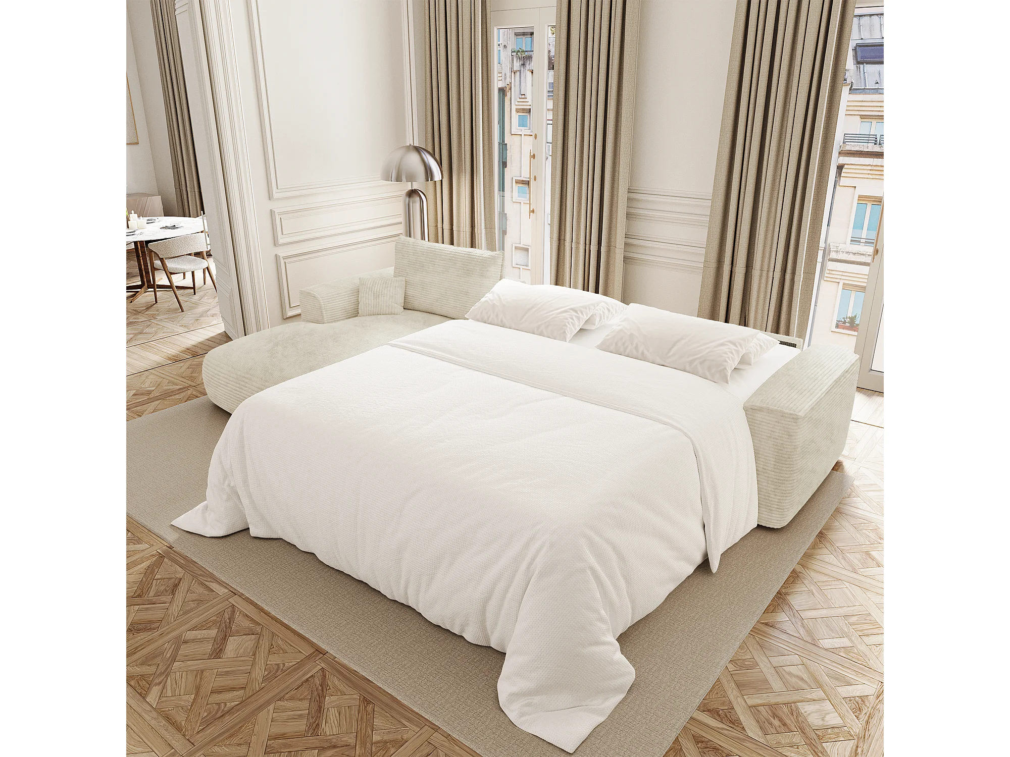 Canapé d'angle gauche convertible express COMO en Velours côtelé