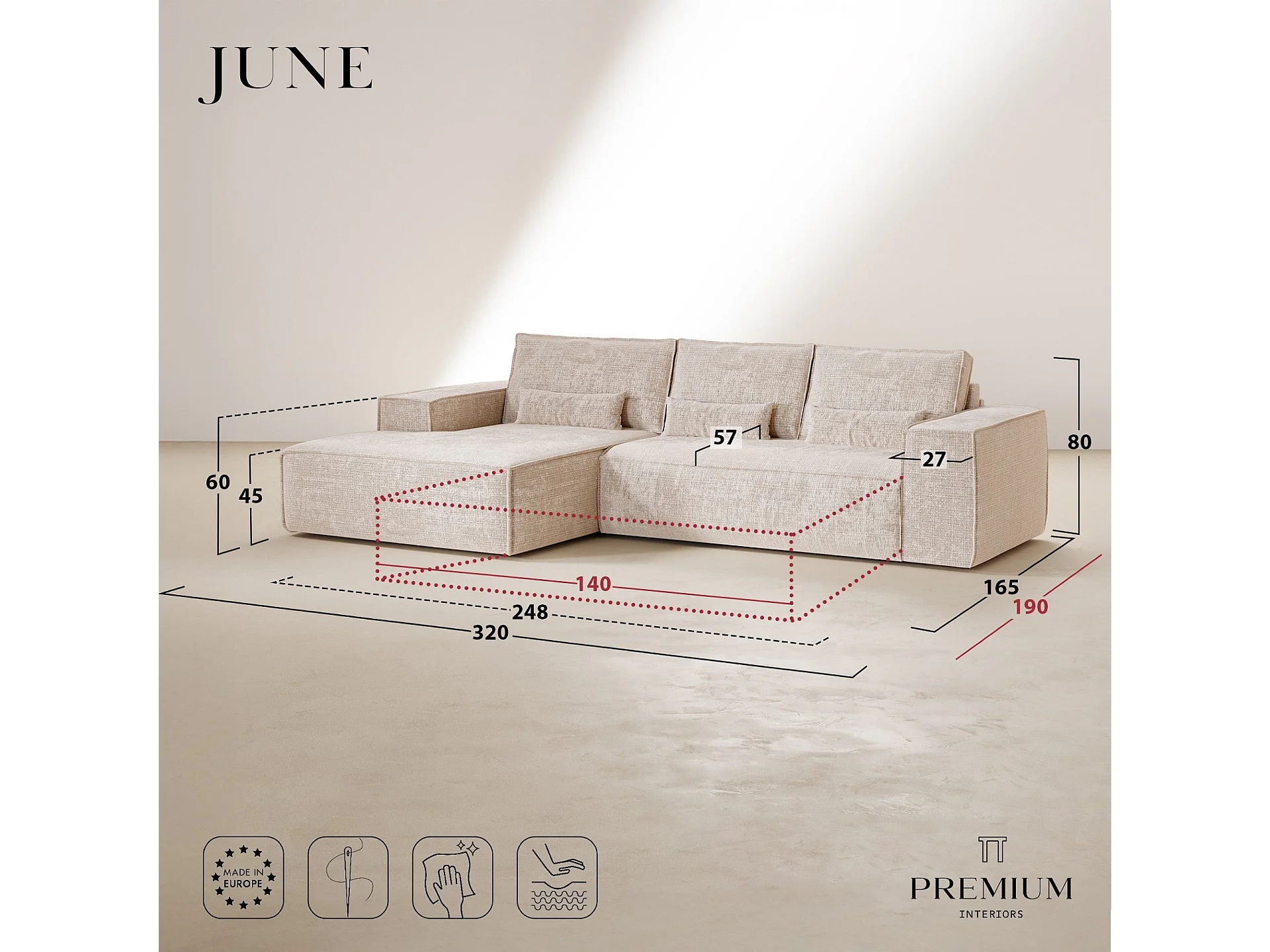 Canapé d'angle gauche convertible express JUNE en Velours gaufré