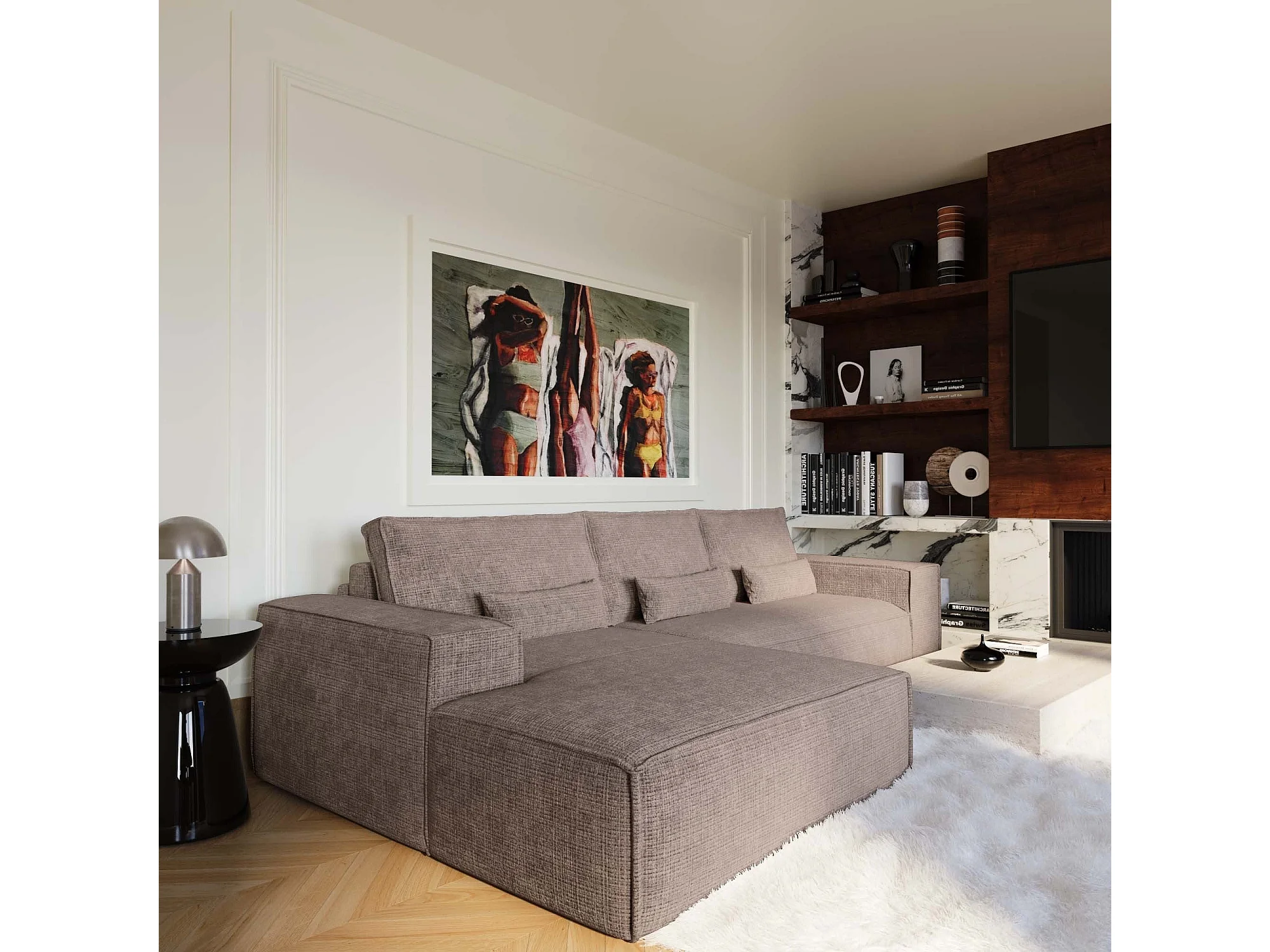 Canapé d'angle gauche convertible express JUNE en Velours gaufré