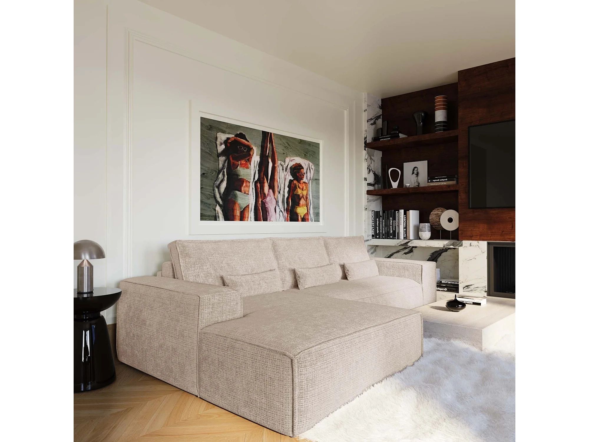 Canapé d'angle gauche convertible express JUNE en Velours gaufré