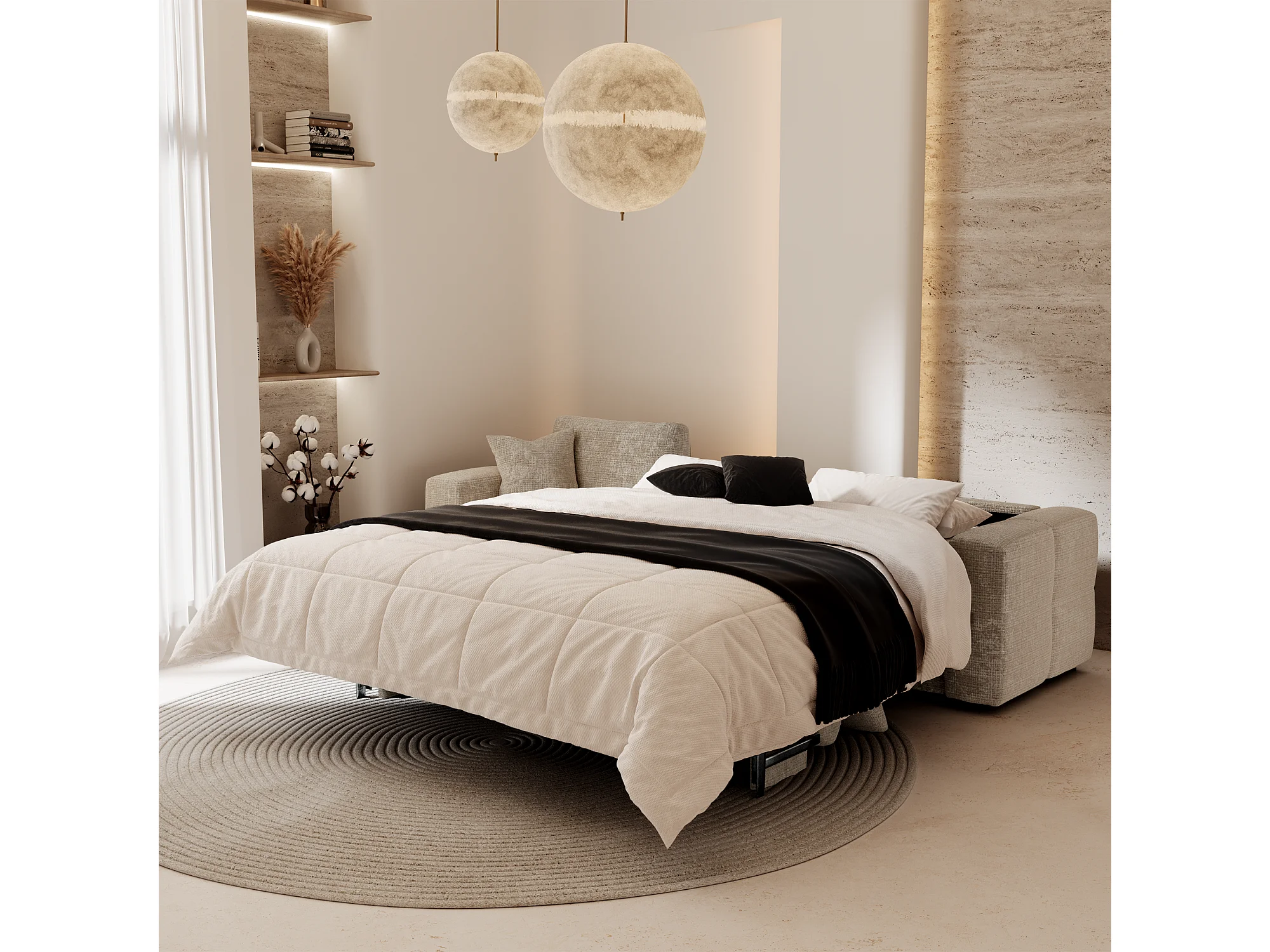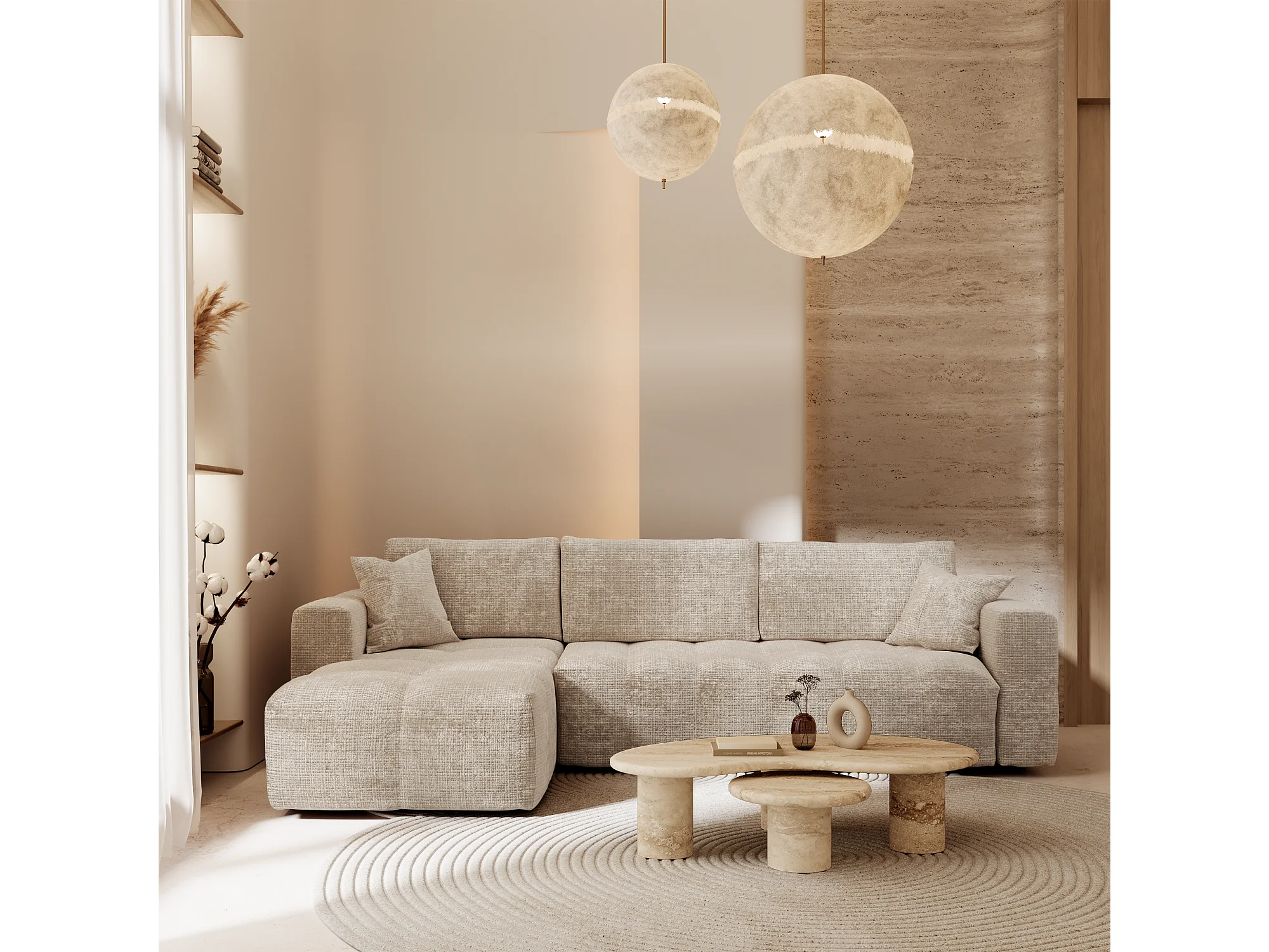 Canapé d'angle gauche convertible express VIBE en Velours gaufré