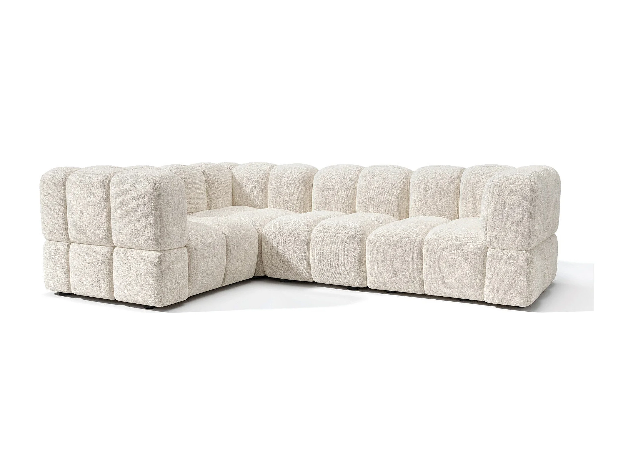 Canapé d'angle gauche modulable 5-6 places velours texturé crème NUBI