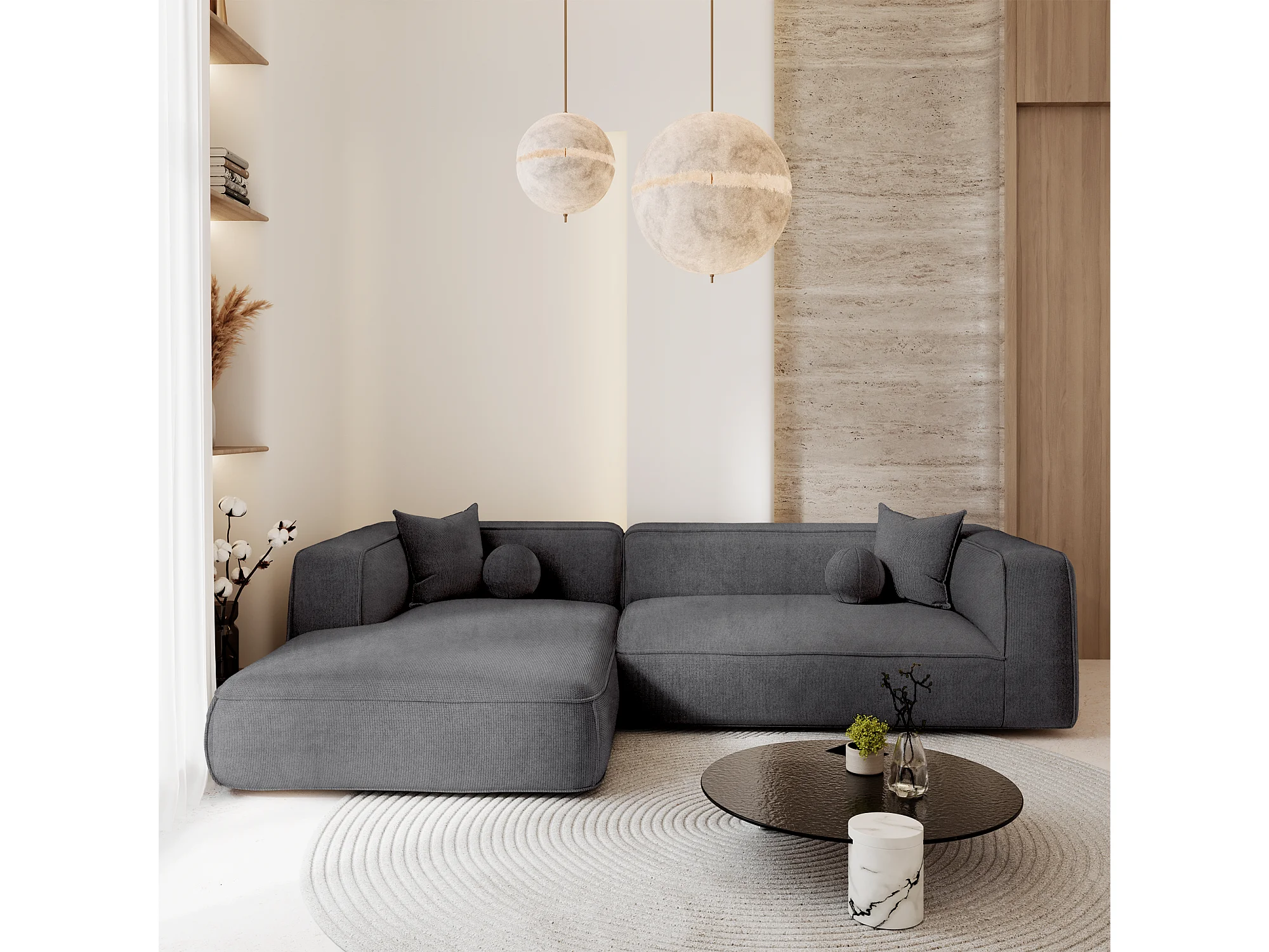 Canapé d'angle gauche SOFIA en Tissu tramé