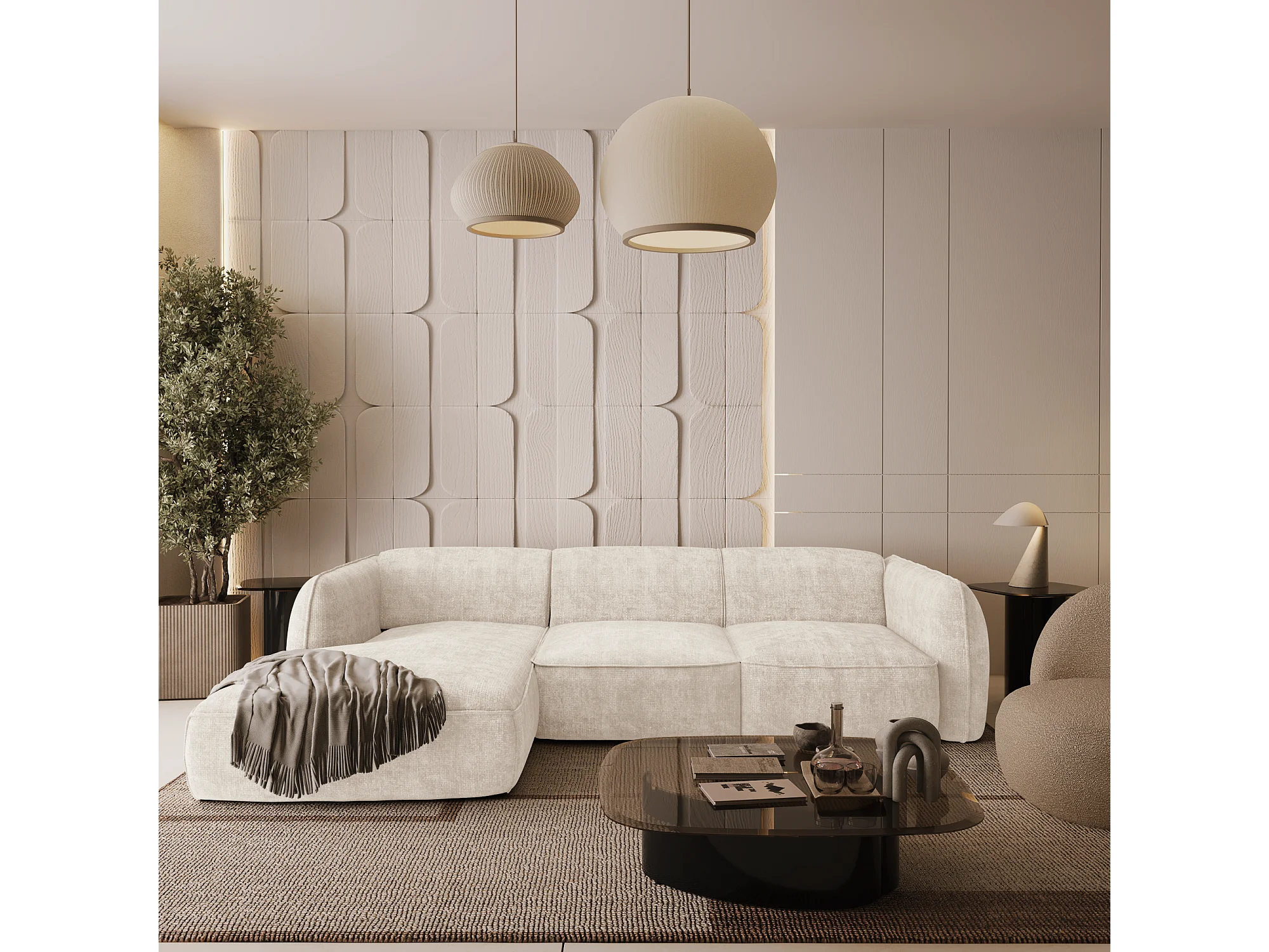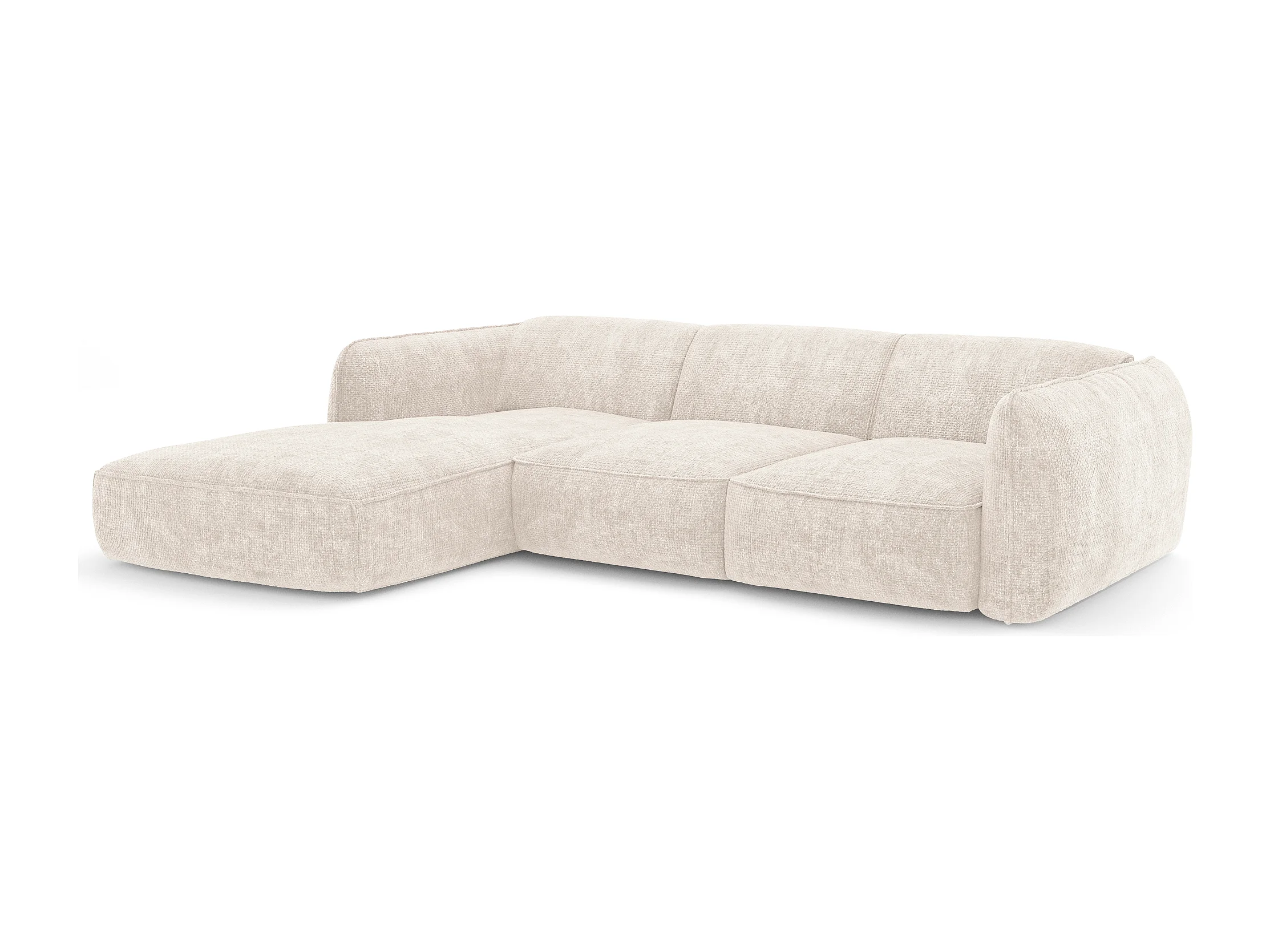 Canapé d'angle gauche velours tramé crème LIVIA