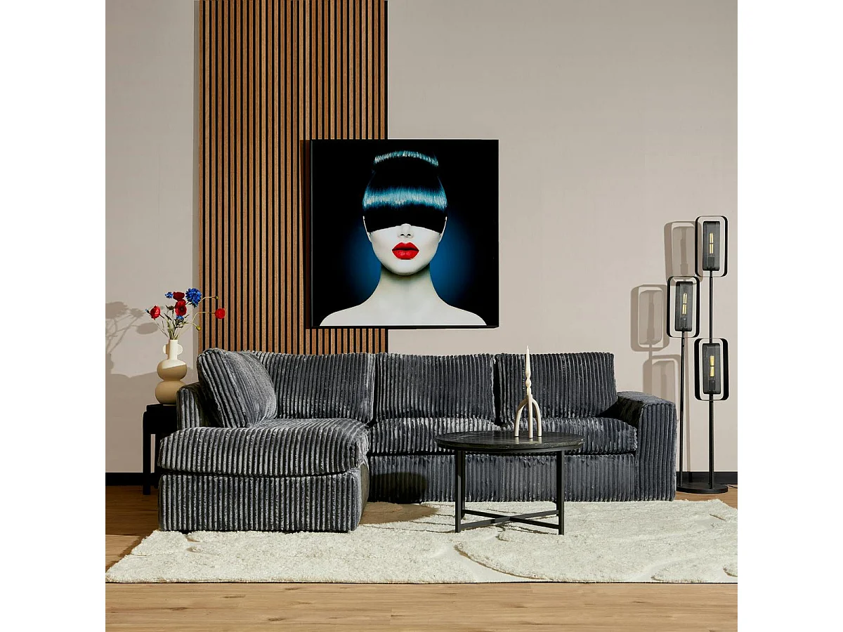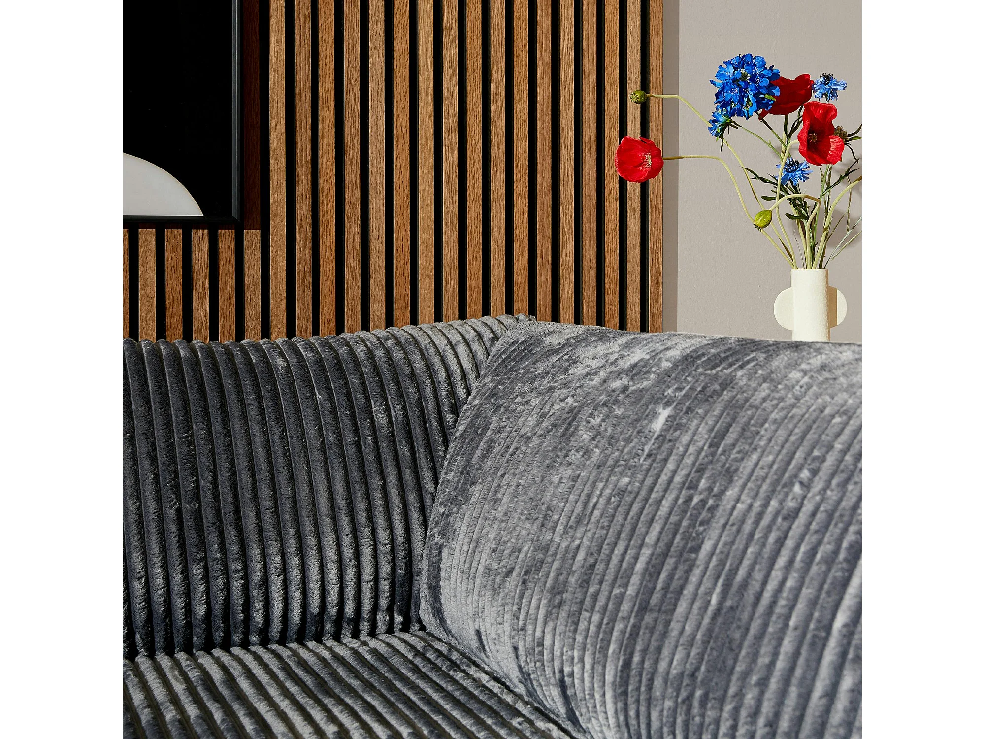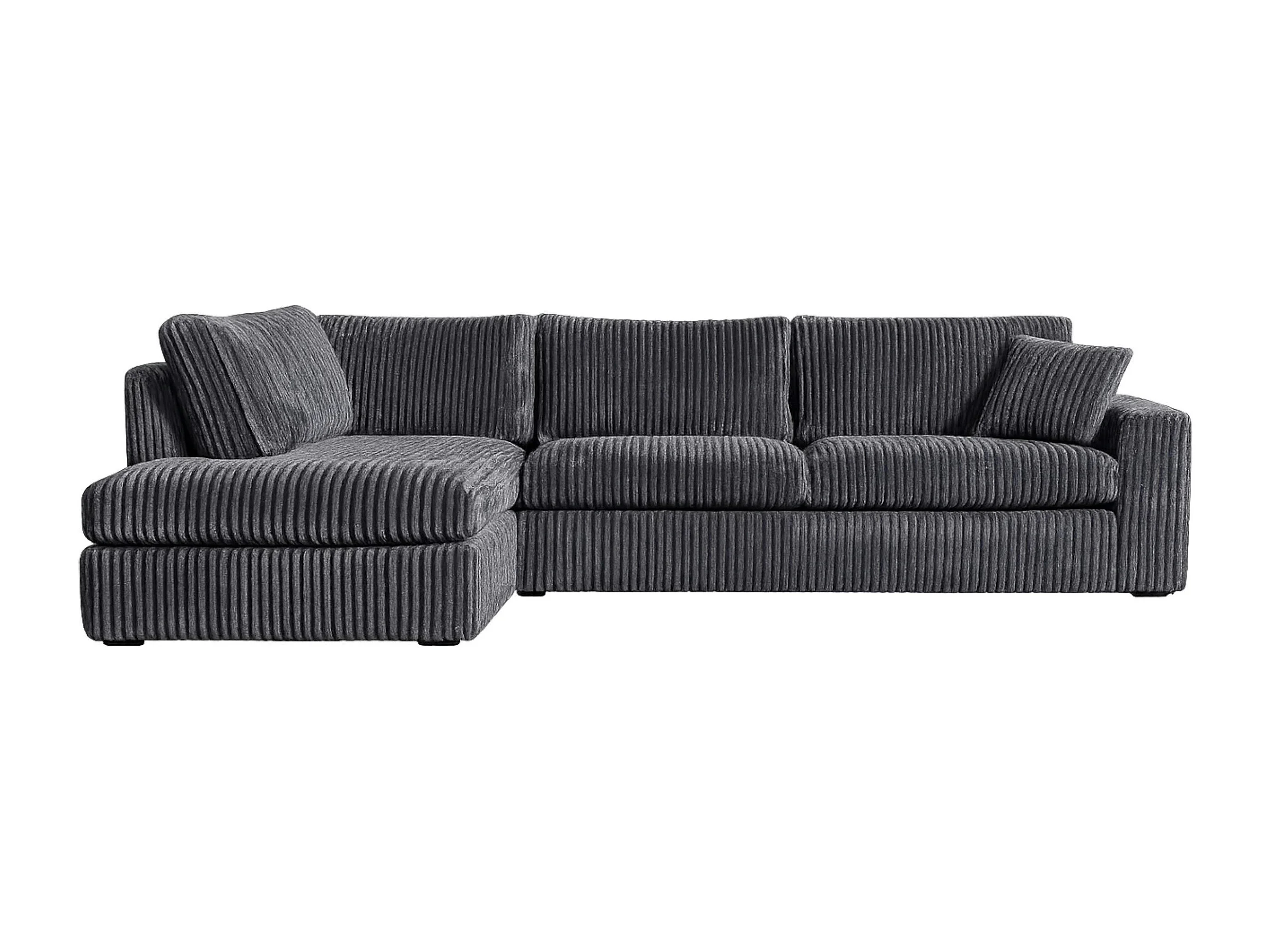 Canapé d'angle gris foncé velours côtelé (côté gauche fixe) RIVOLI