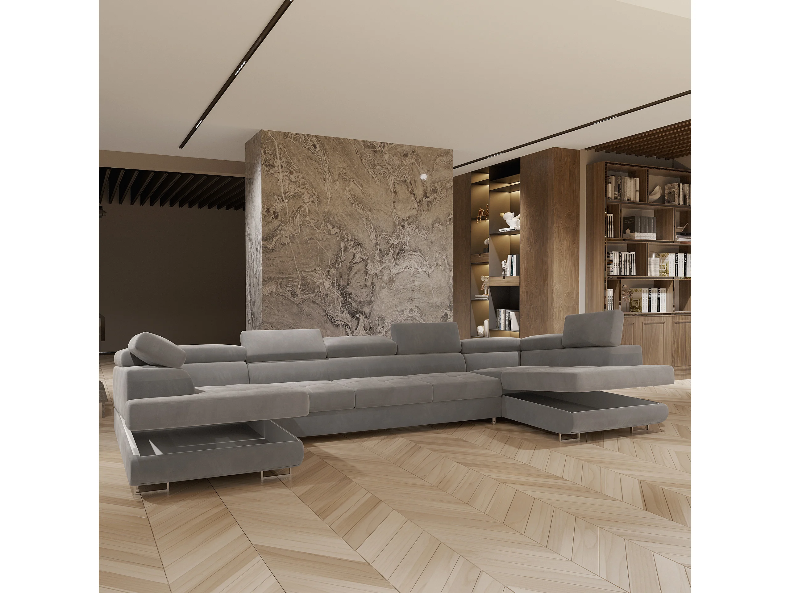 Canapé d'angle ISOLANO Gris en velours avec fonction de couchage