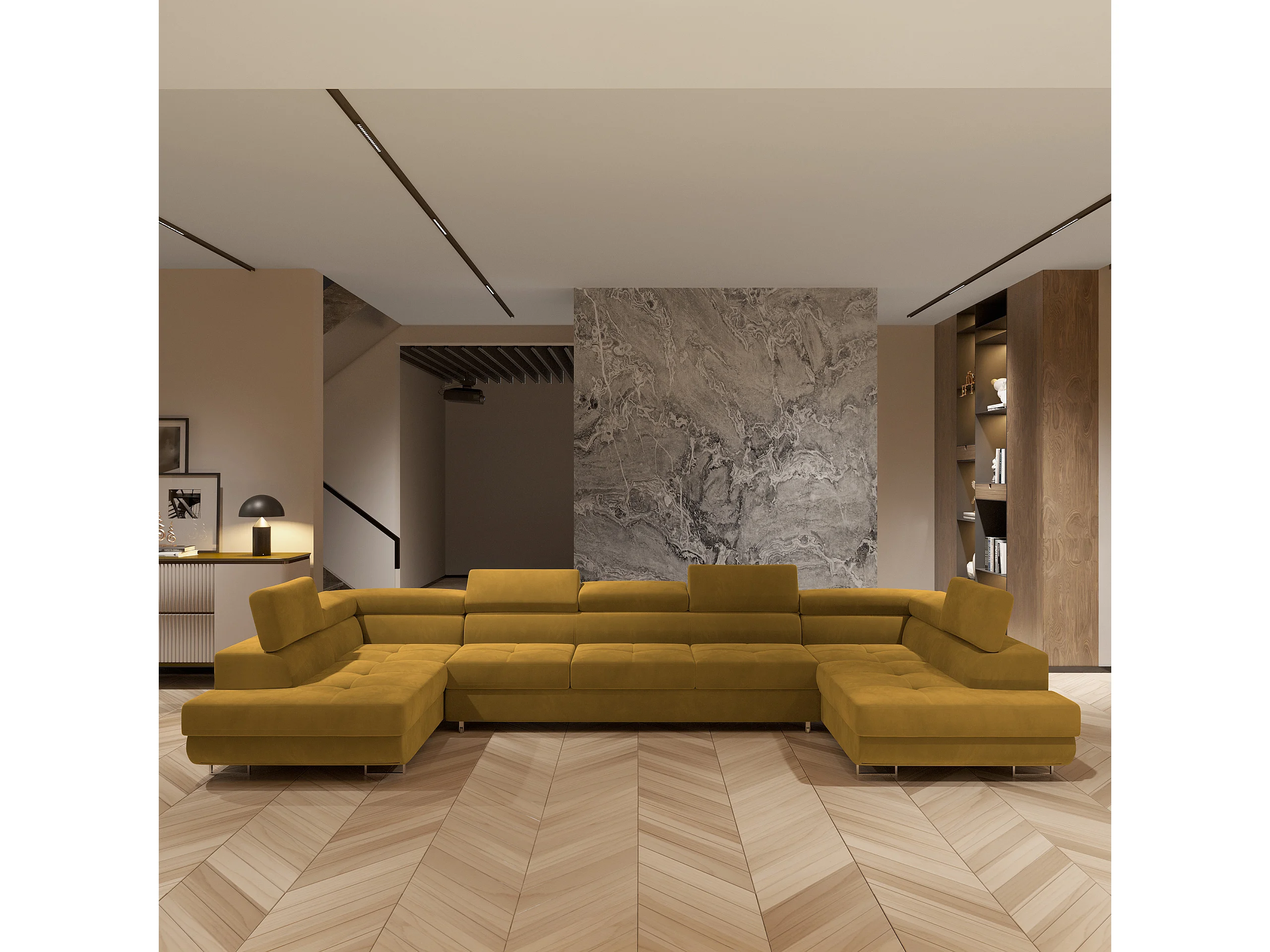 Canapé d'angle ISOLANO Jaune en velours avec fonction de couchage