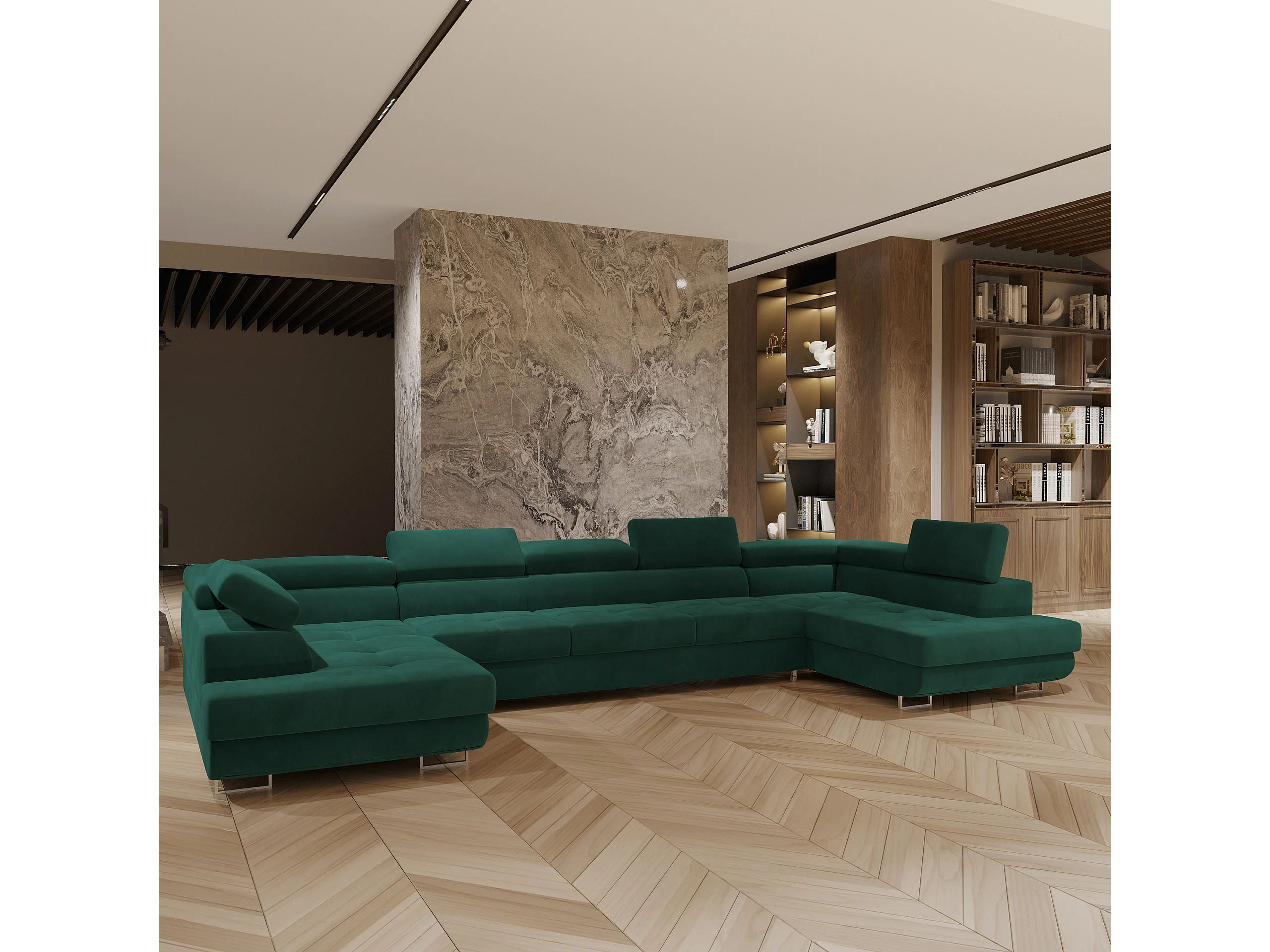 Canapé d'angle ISOLANO Vert en velours avec fonction de couchage