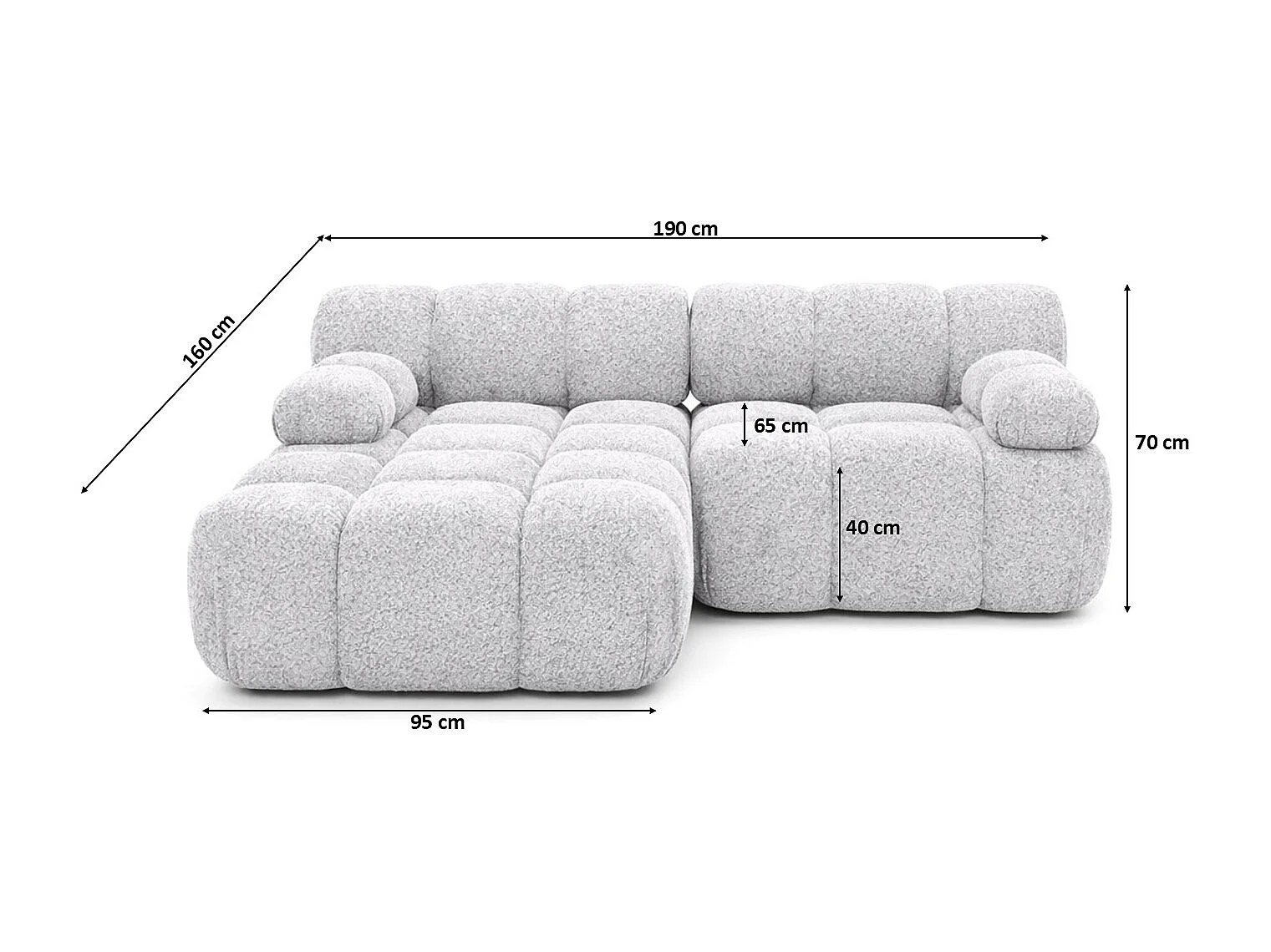 Canapé d’angle L mini modulaire, tissu bouclé Abriamo, Gris clair, Gauche, Selia
