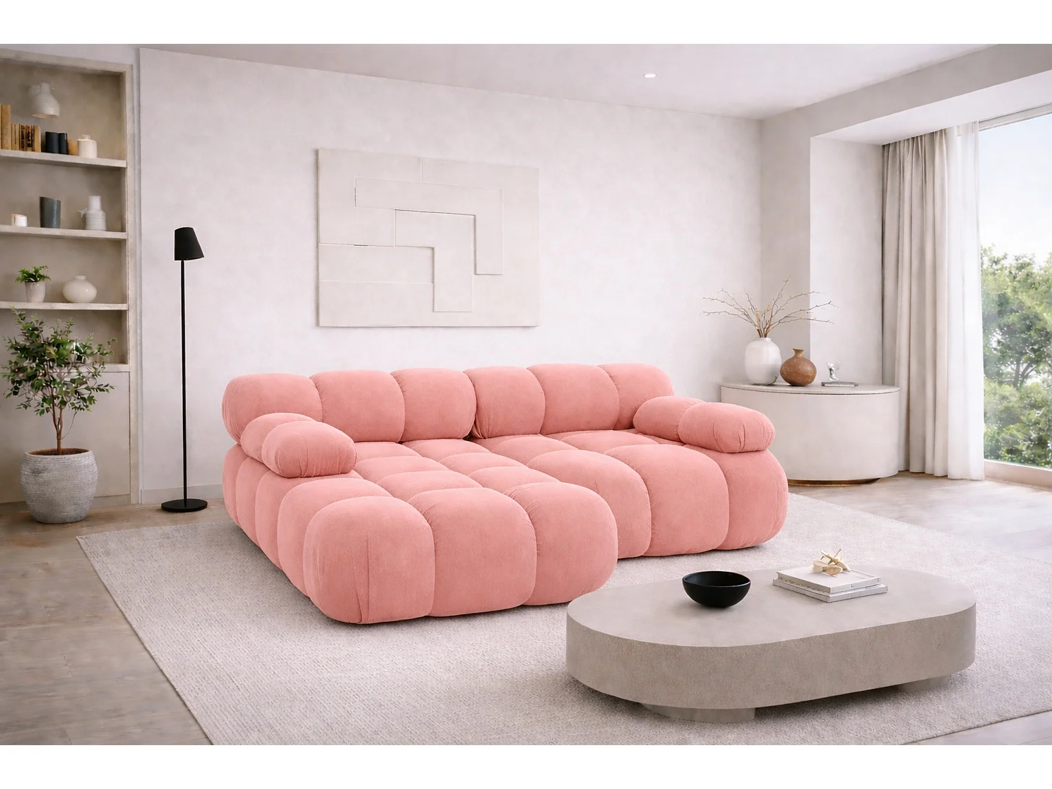 Canapé d’angle L mini modulaire, velours Salvador, Rose, Gauche, Selia