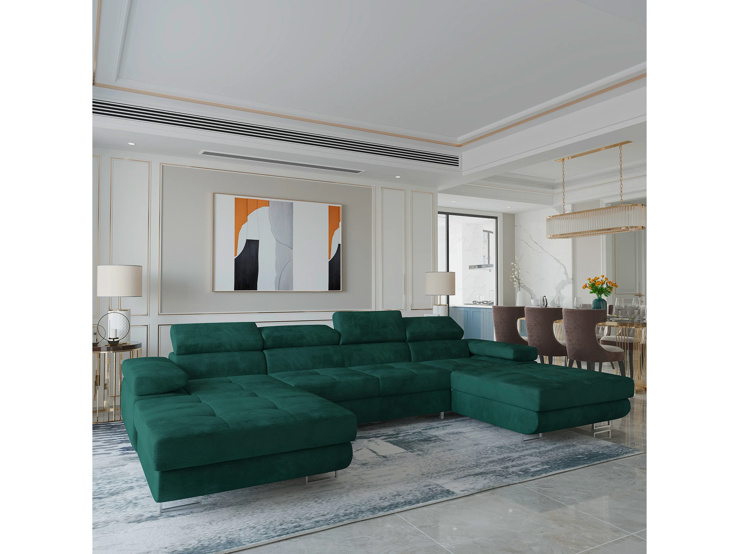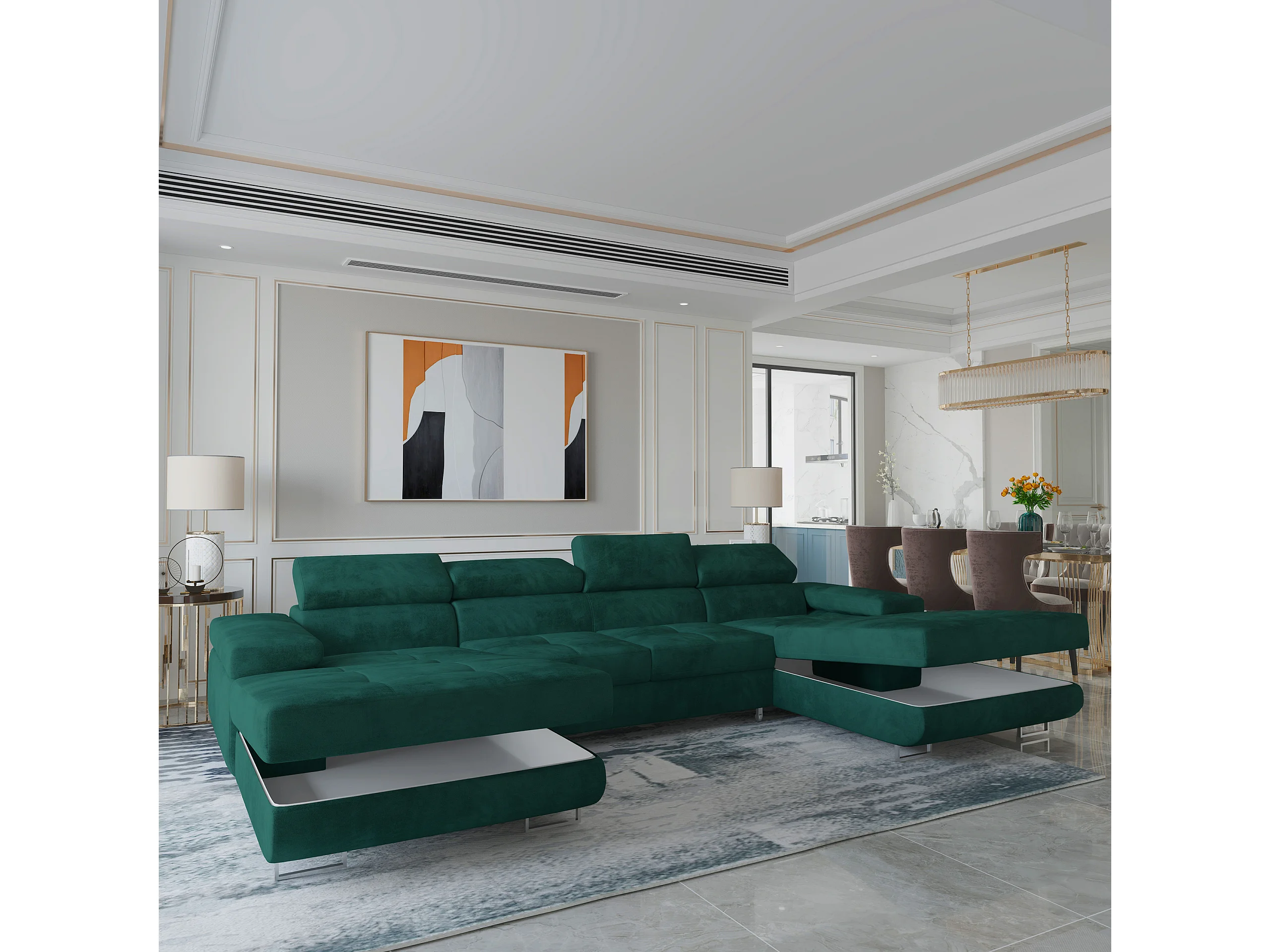 Canapé d'angle LYKKE Vert en velours avec fonction de couchage