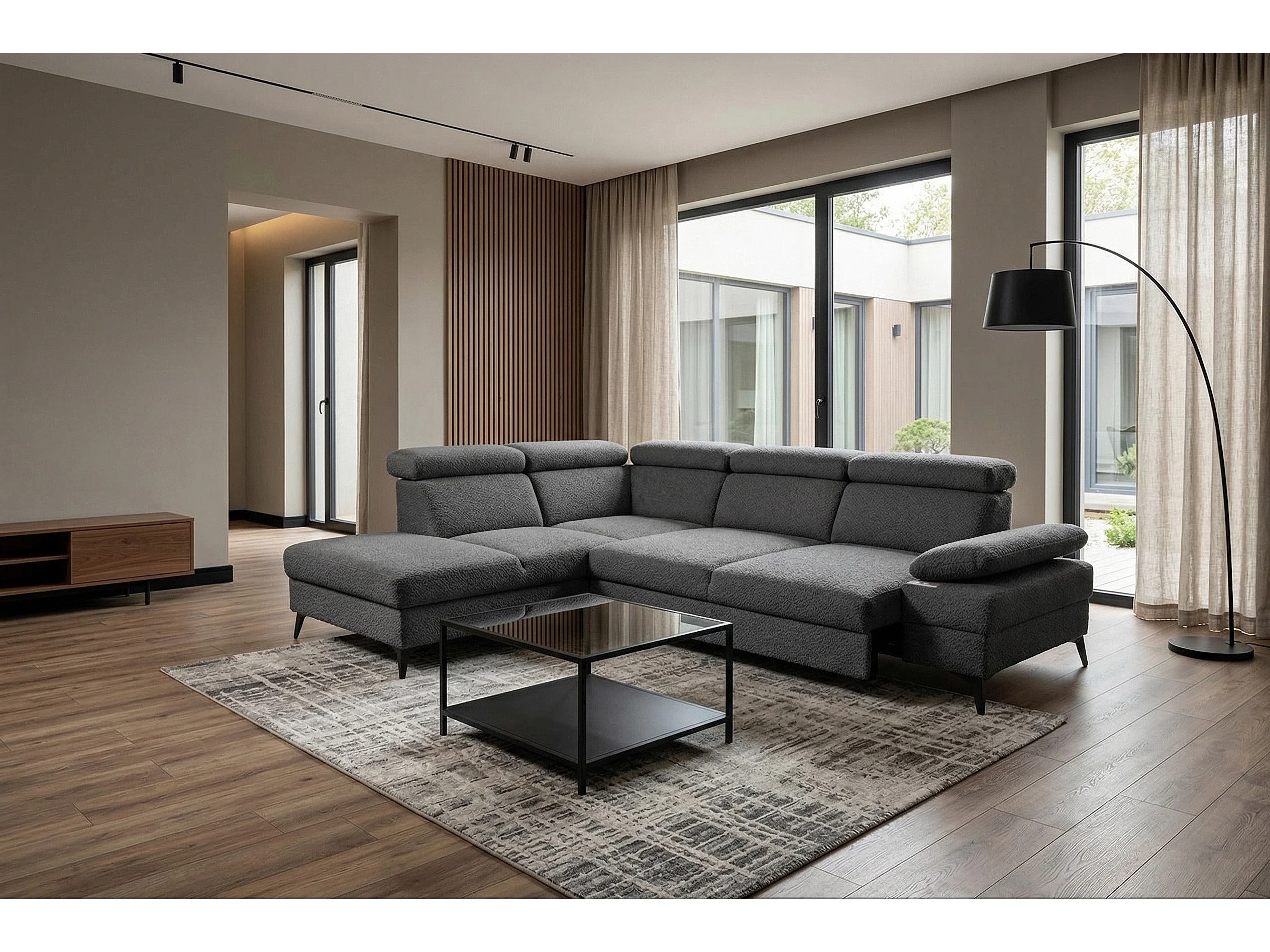 Canapé d’angle moderne Vigo avec fonction RELAX et appuie-têtes réglables – idéal pour le salon
