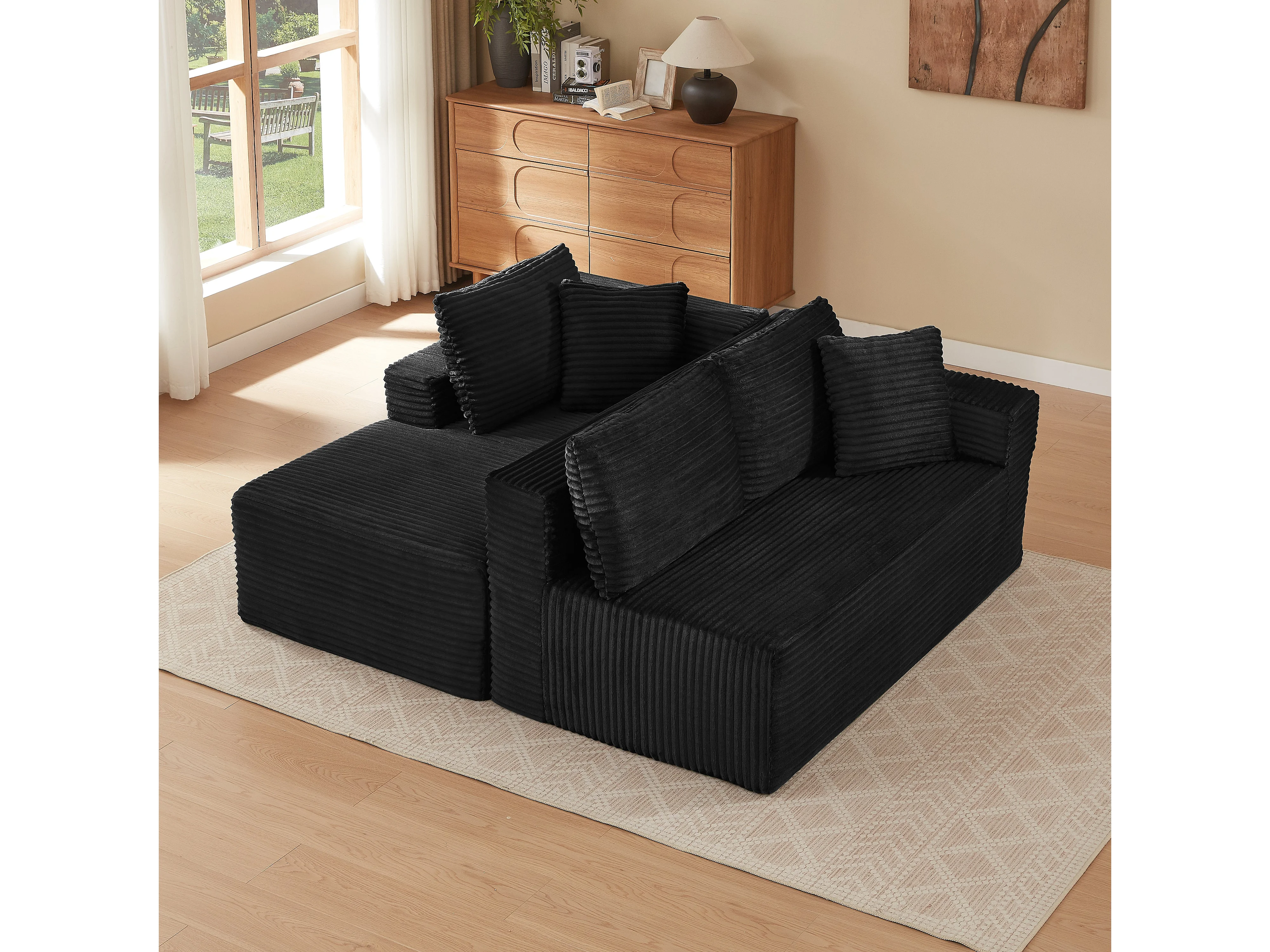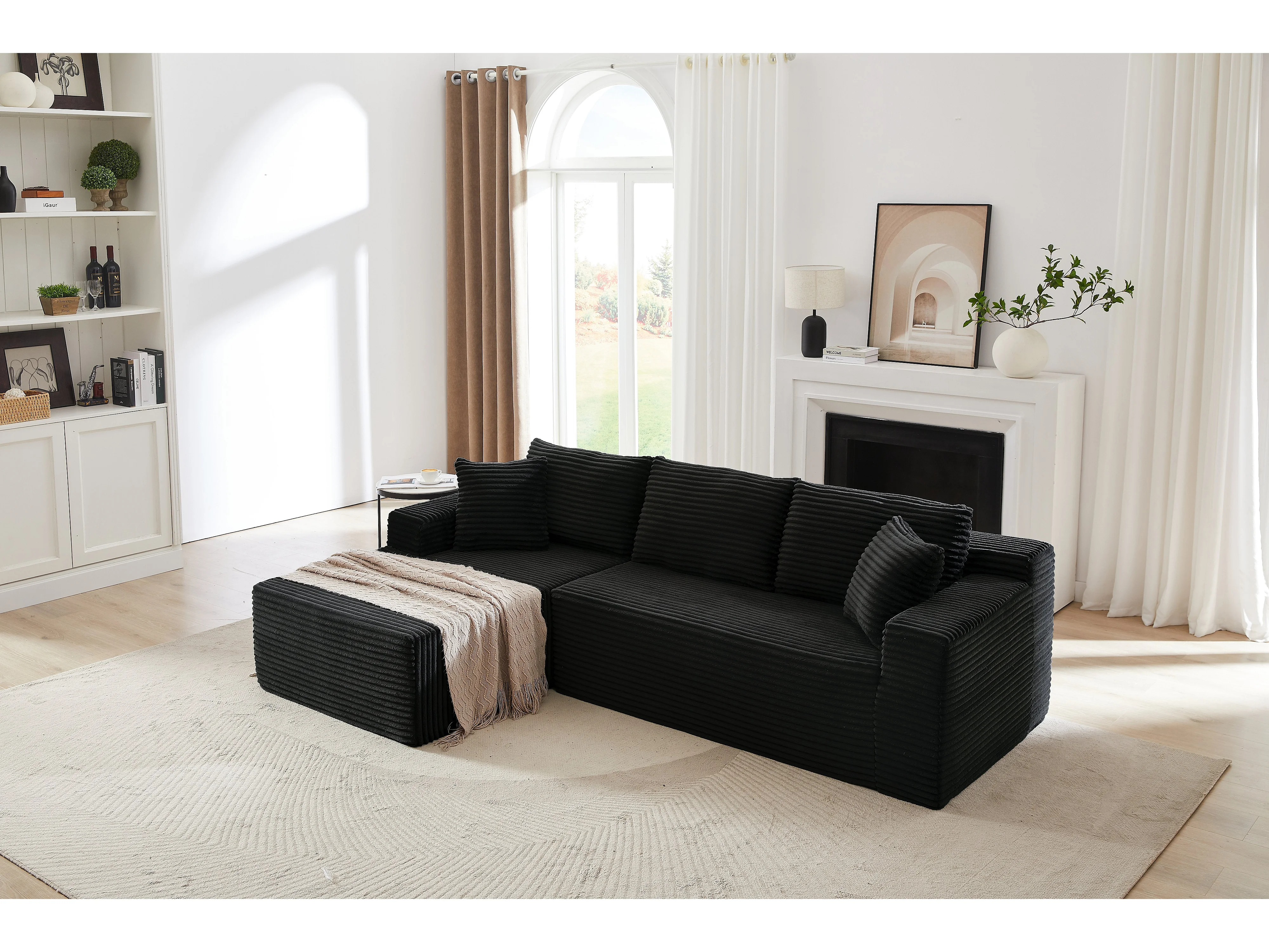 Canapé d'angle modulable 3 places, mousse mémoire, tissu noir