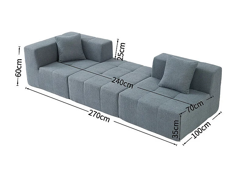 Canapé d'angle modulable en tissu - avec pouf et 2 oreillers - Gris - 270x100x60cm