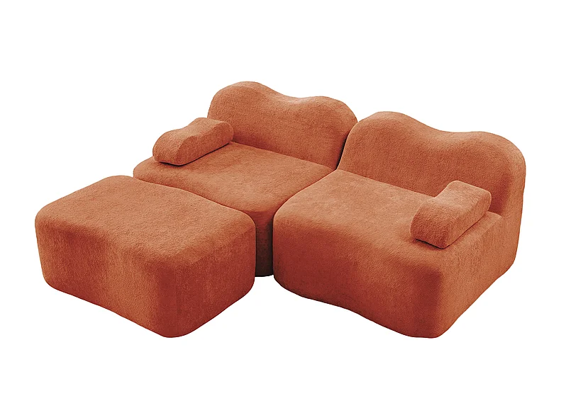 Canapé d'angle modulable en velours, avec pouf et coussin d'accoudoir mobile, 192x167x70cm, Orange