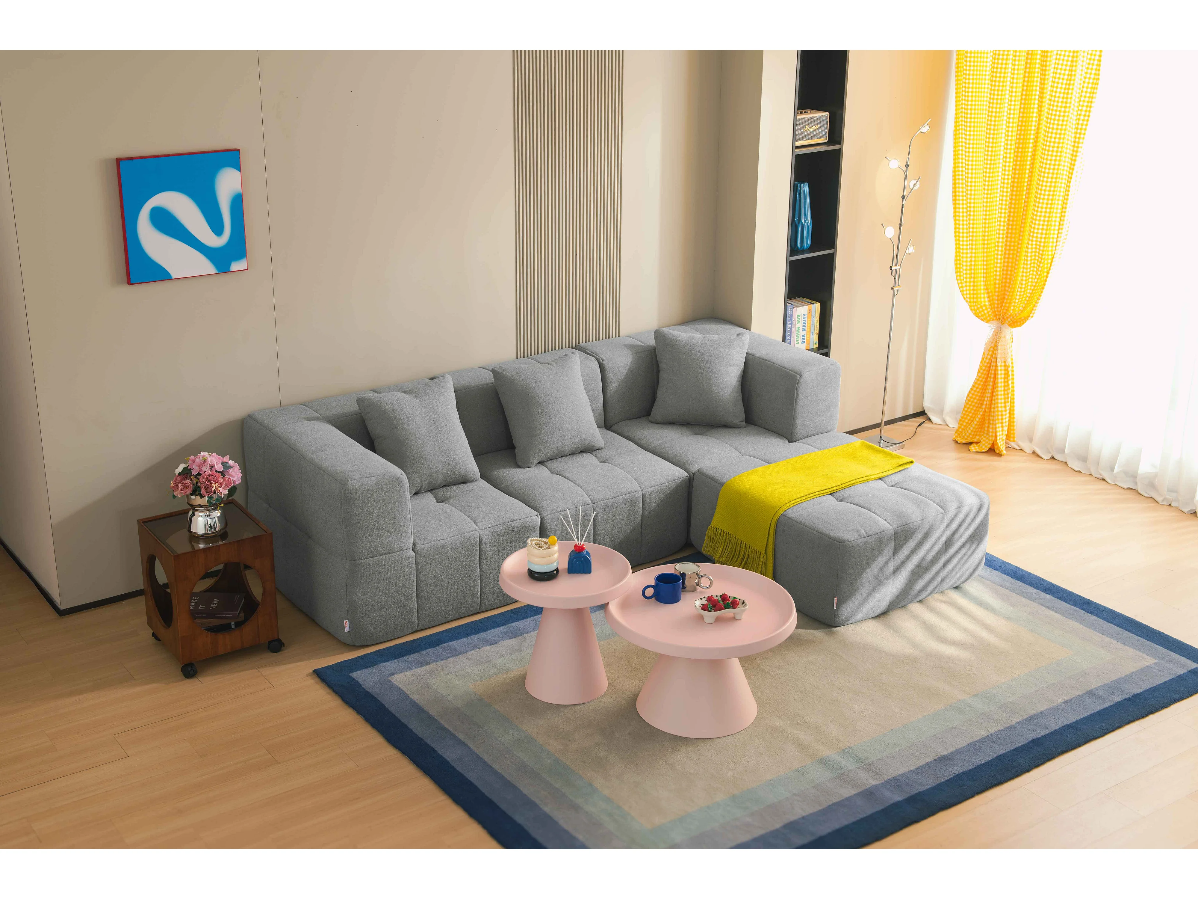 Canapé d'angle modulaire MILYSOFA SOFABULOUS 3 places avec méridienne Tissu fine bouclette Gris nuage