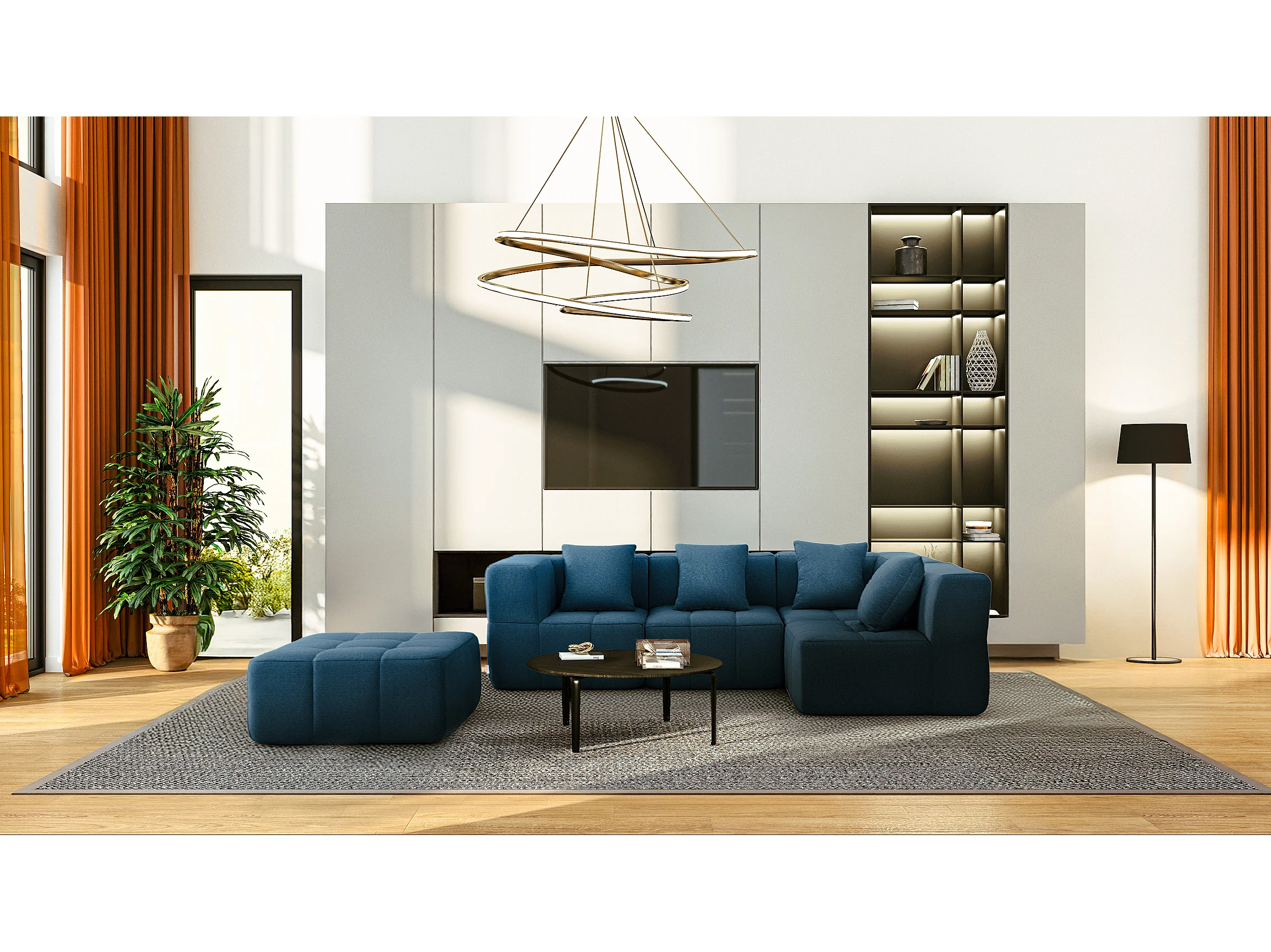 Canapé d'angle modulaire MILYSOFA SOFABULOUS 4 places avec méridienne Tissu fine bouclette Bleu profond