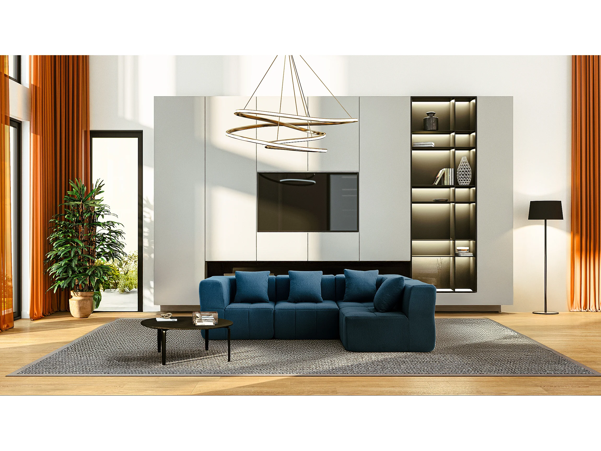 Canapé d'angle modulaire MILYSOFA SOFABULOUS 4 places Tissu fine bouclette Bleu profond