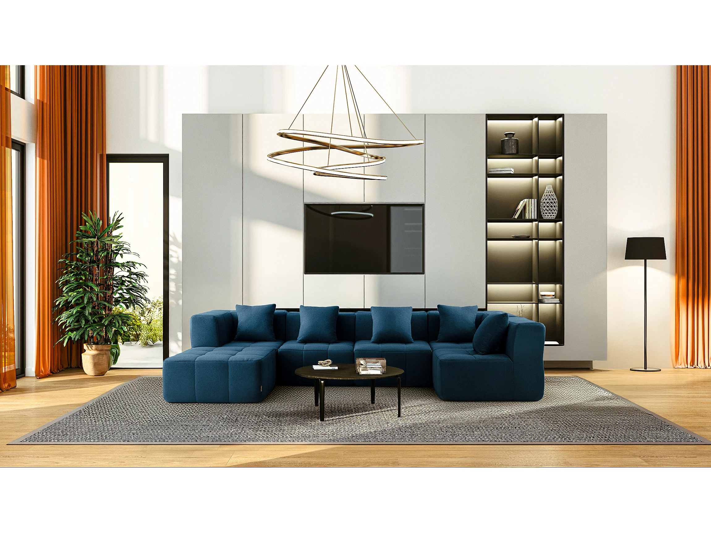 Canapé d'angle modulaire MILYSOFA SOFABULOUS 5 places avec méridienne Tissu fine bouclette Bleu profond