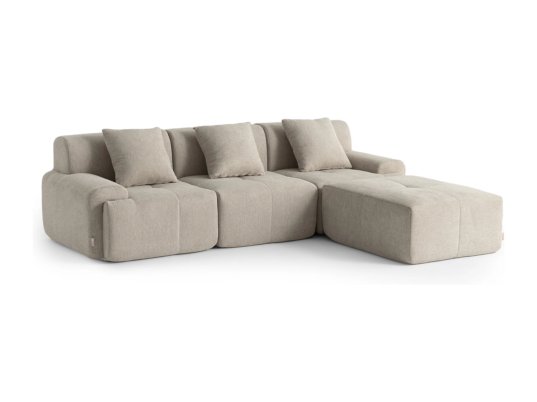Canapé d'angle modulaire MILYSOFA SOFAMOUS 3 places avec méridienne Tissu chenille Beige sable