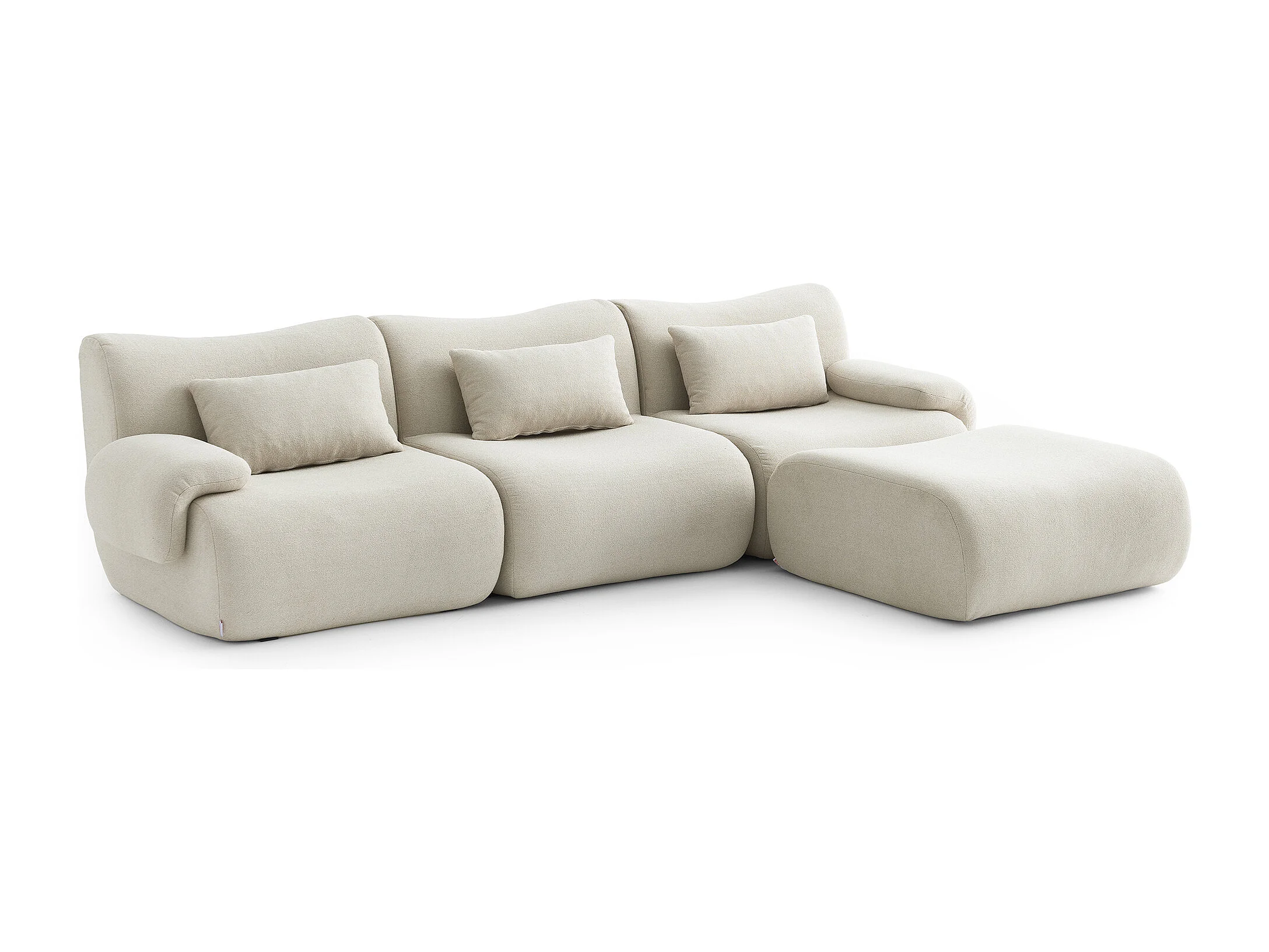 Canapé d'angle modulaire MILYSOFA SOFATIME 3 places avec méridienne tissu fine bouclette Beige crème