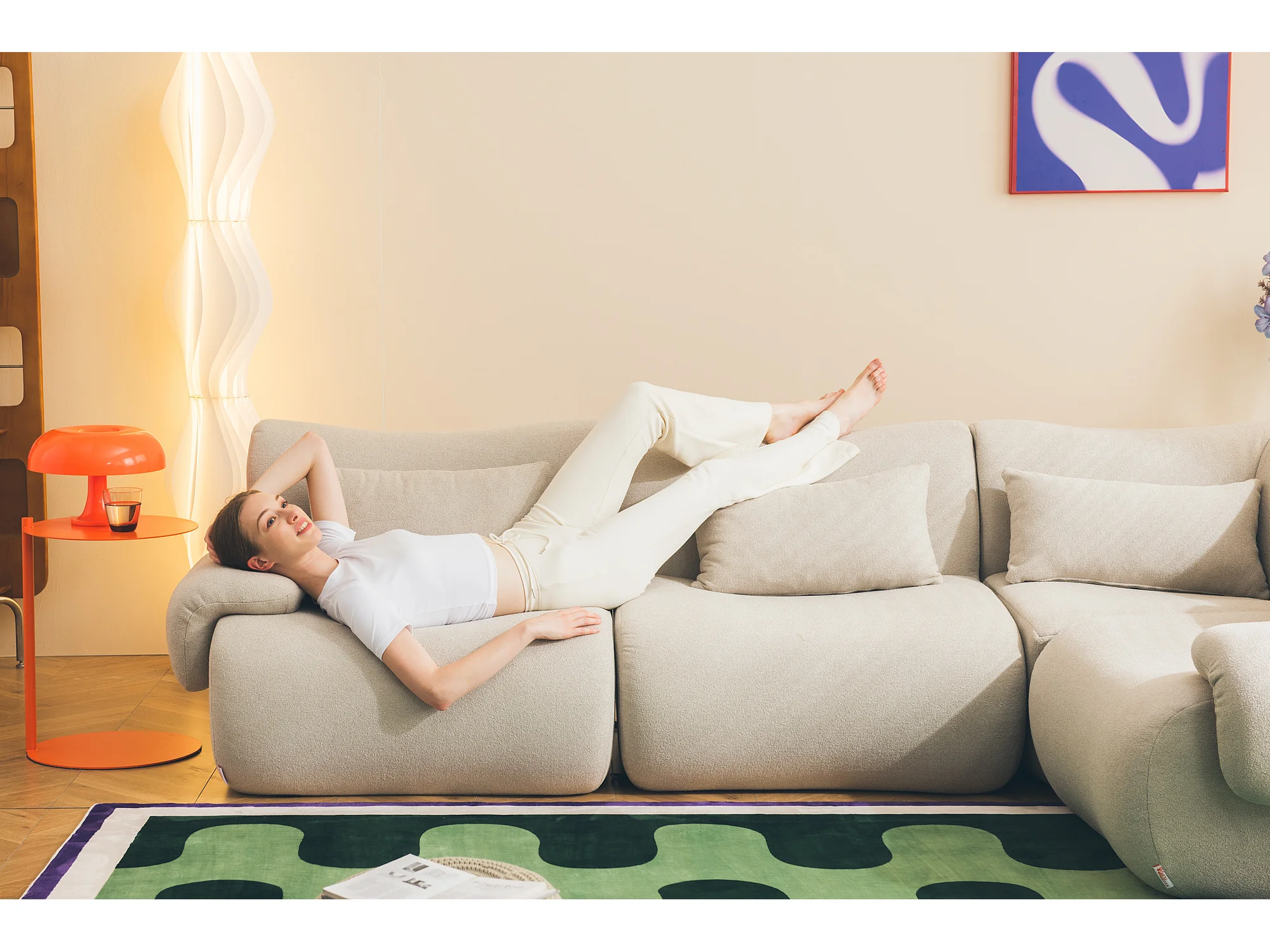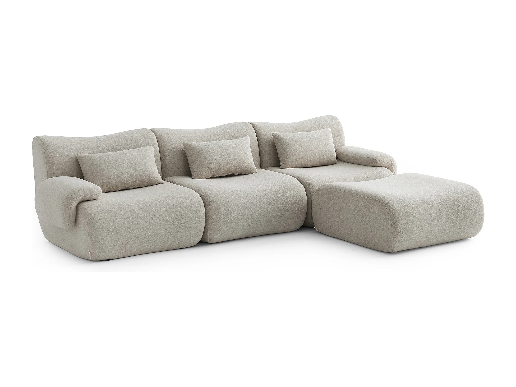 Canapé d'angle modulaire MILYSOFA SOFATIME 3 places avec méridienne Tissu fine bouclette Beige pierre
