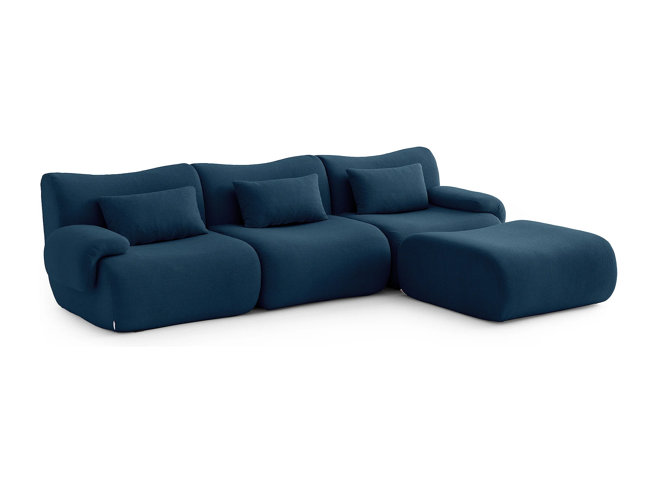 Canapé d'angle modulaire MILYSOFA SOFATIME 3 places avec méridienne tissu fine bouclette Bleu profond
