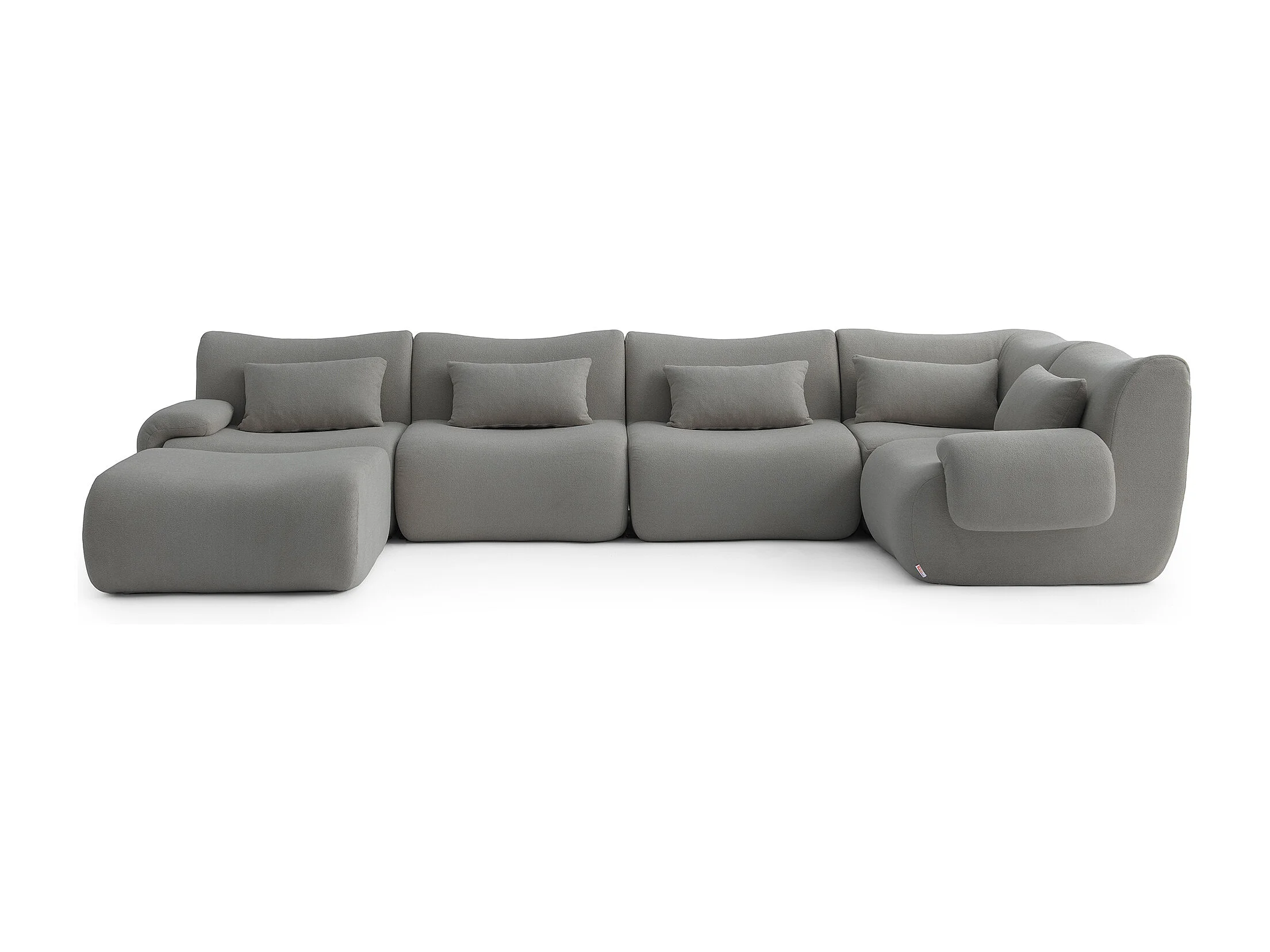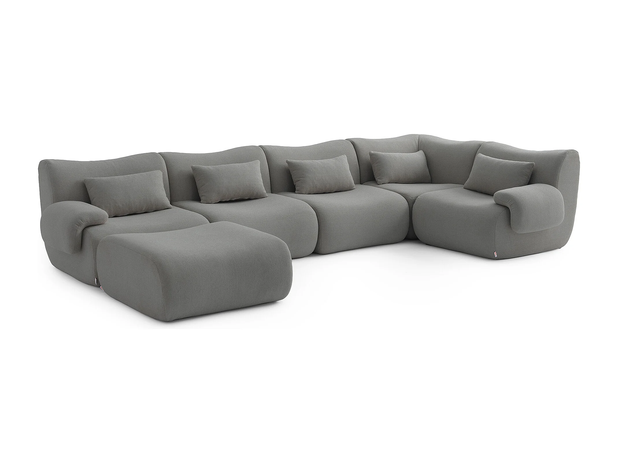 Canapé d'angle modulaire MILYSOFA SOFATIME 5 places avec méridienne Tissu fine bouclette Gris nuage