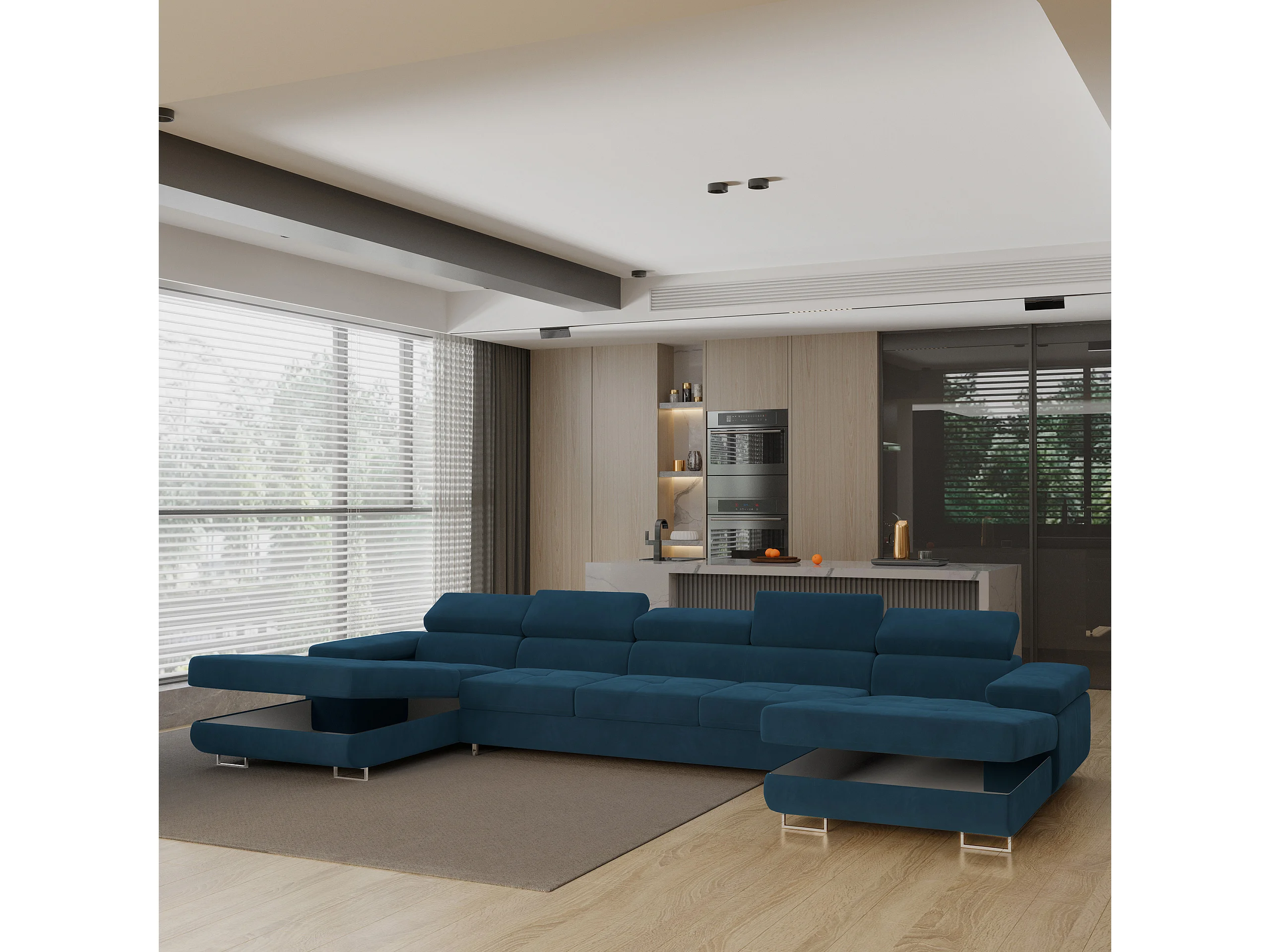 Canapé d'angle OMBRA Bleu en velours avec fonction de couchage
