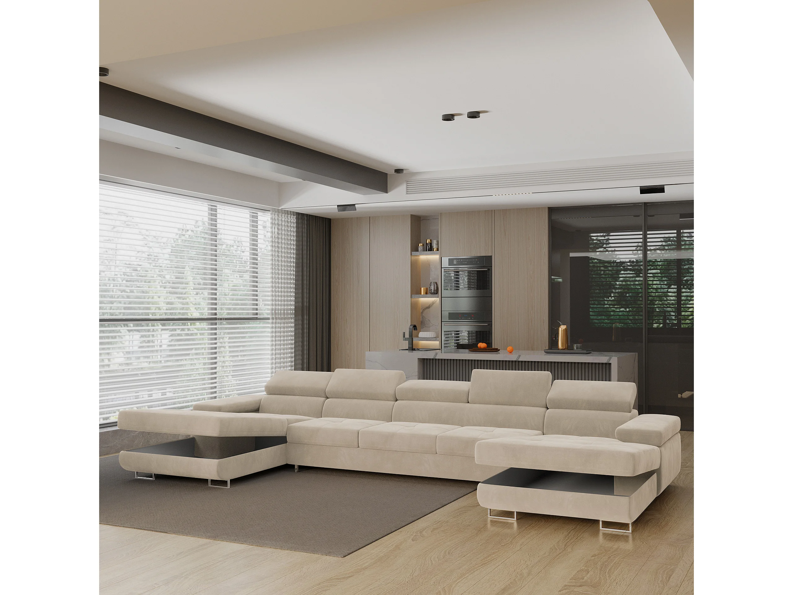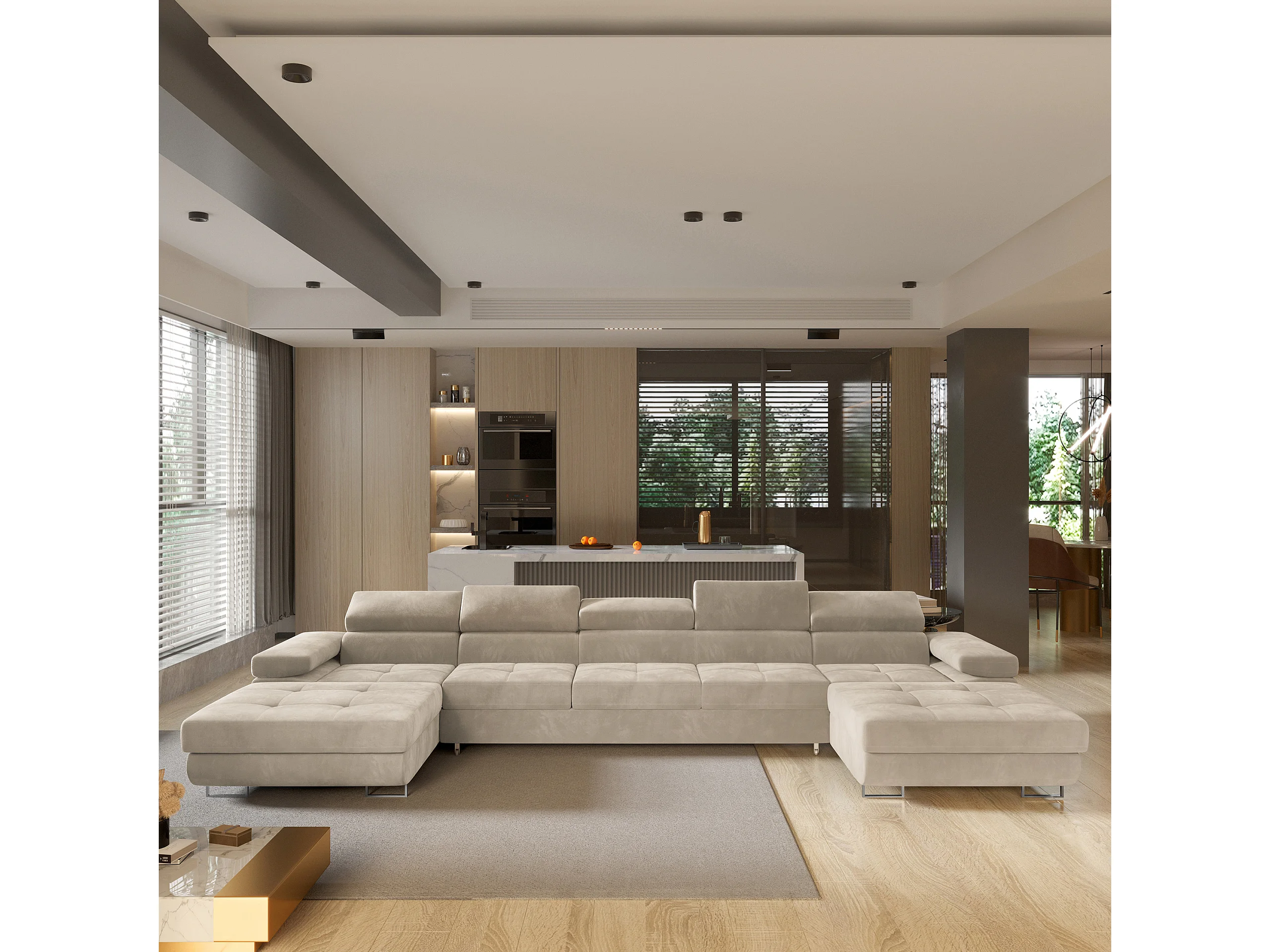 Canapé d'angle OMBRA Crème en velours avec fonction de couchage
