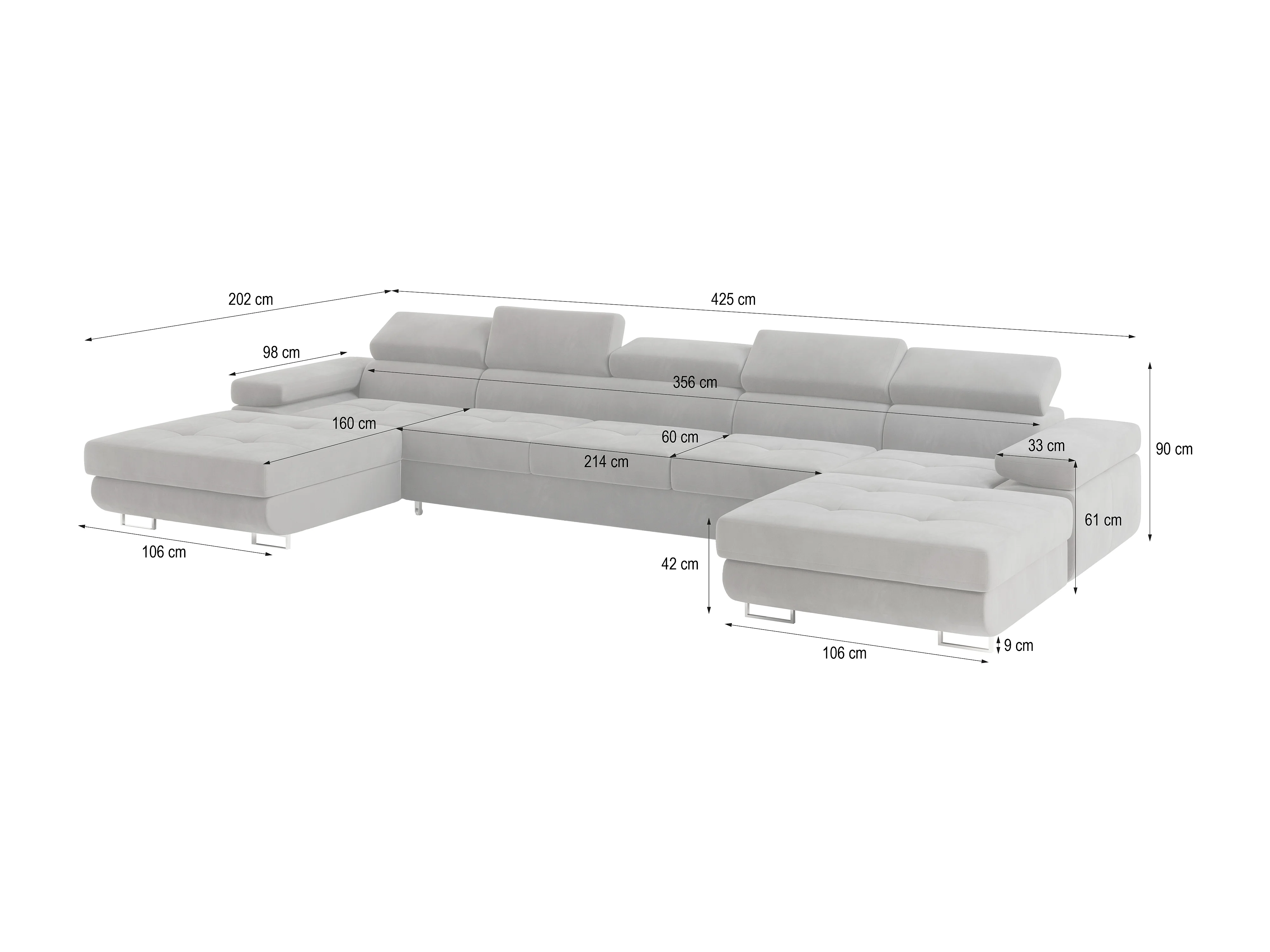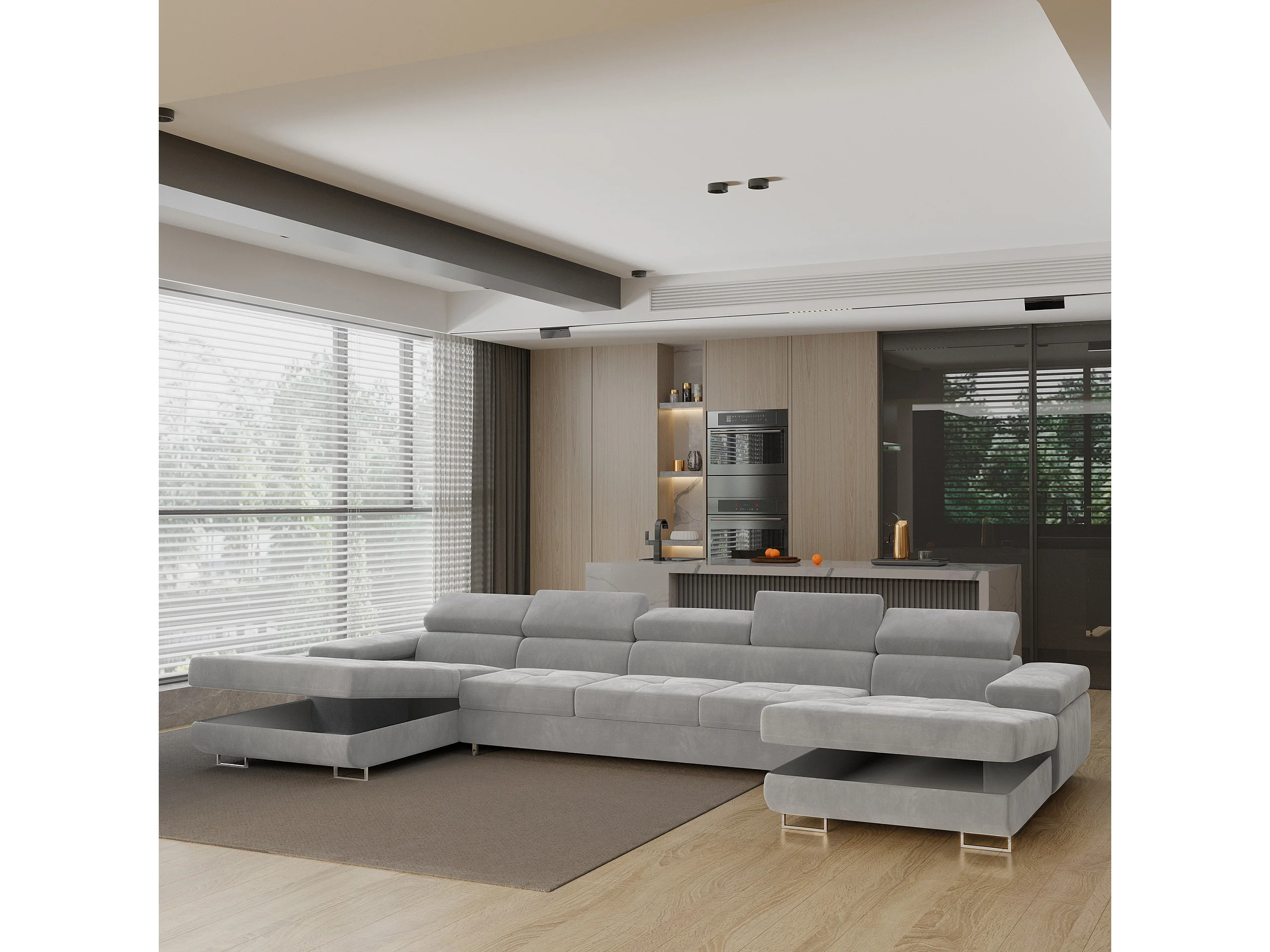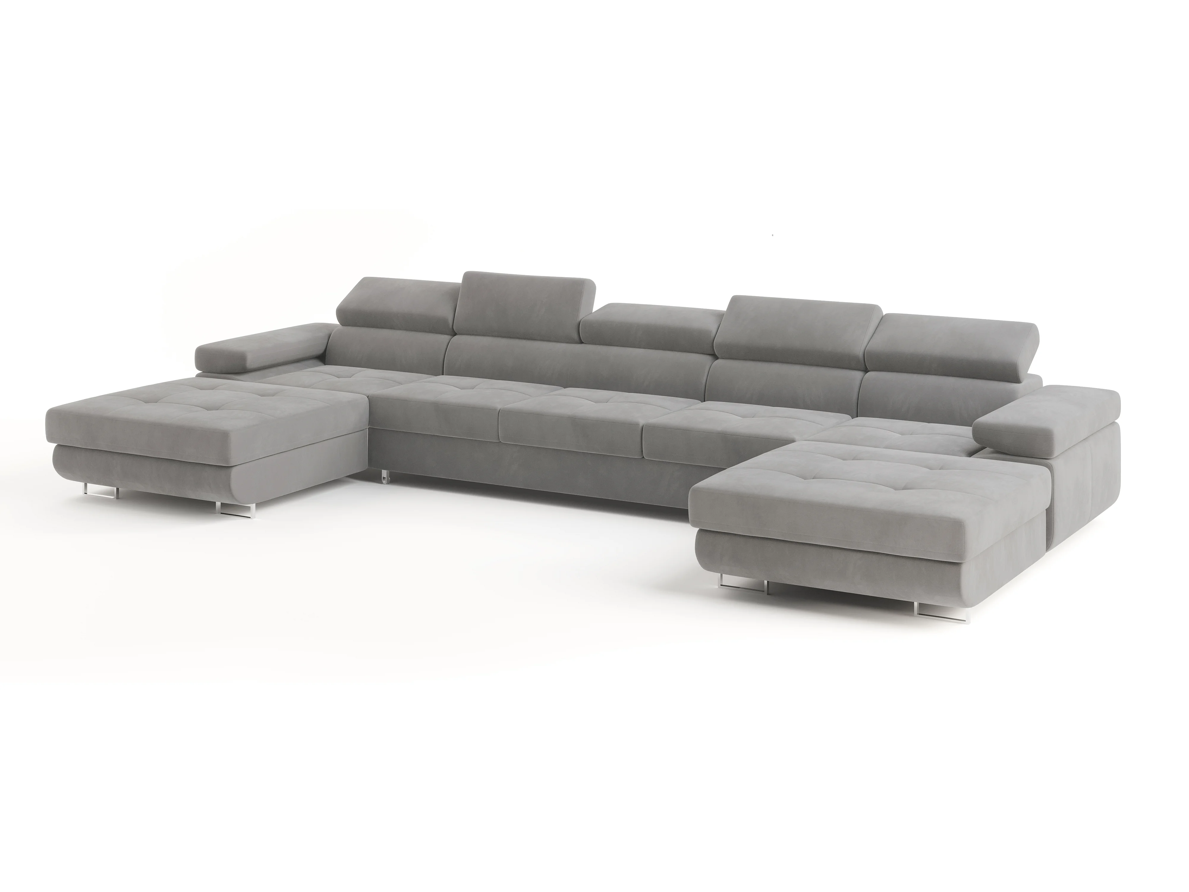 Canapé d'angle OMBRA Gris clair en velours avec fonction de couchage