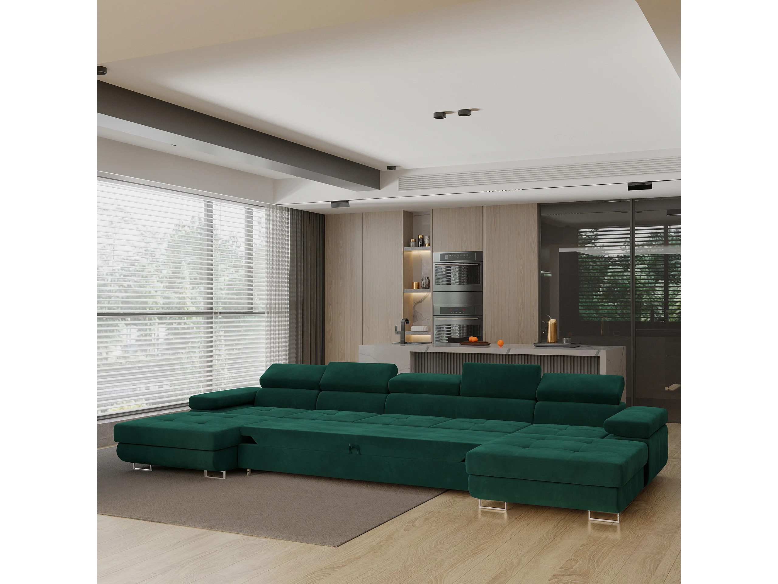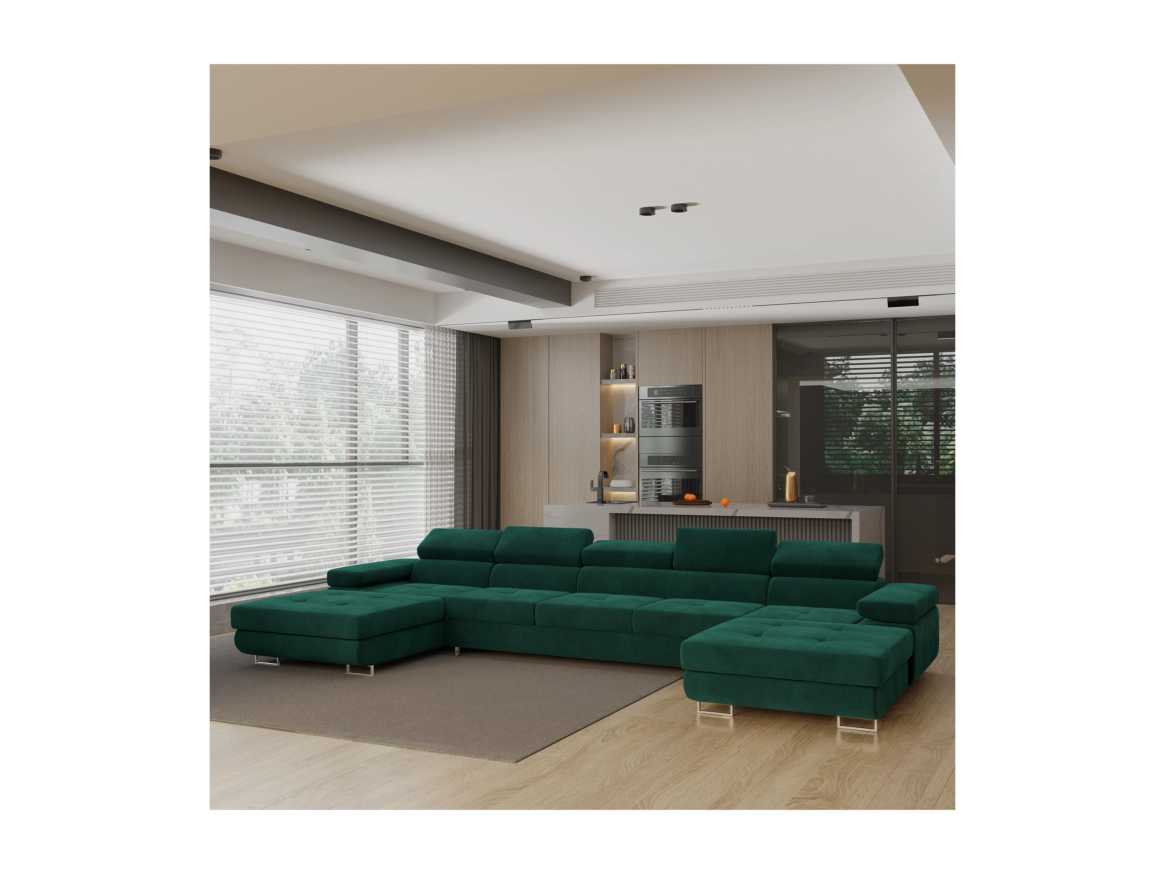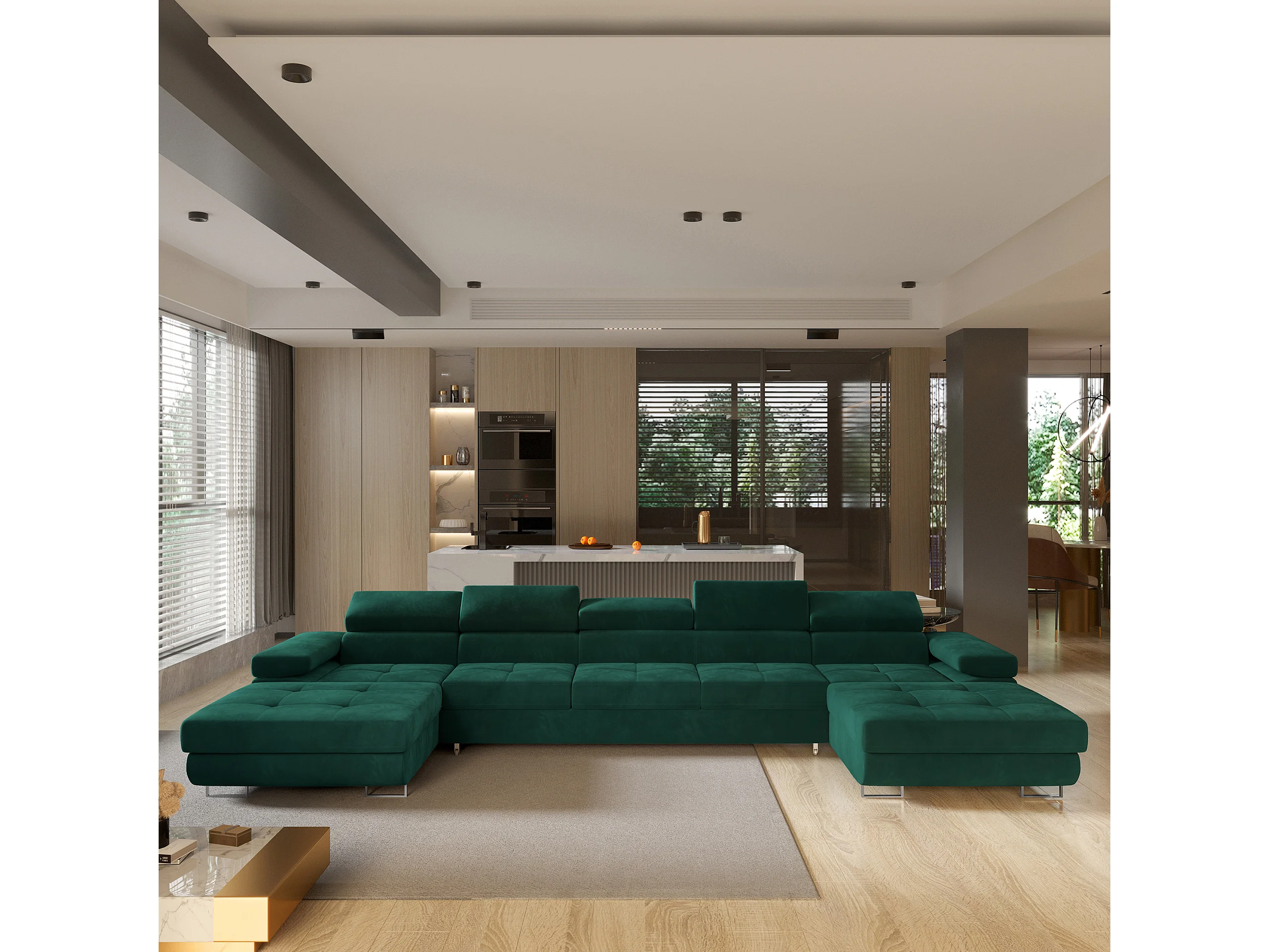 Canapé d'angle OMBRA Vert en velours avec fonction de couchage