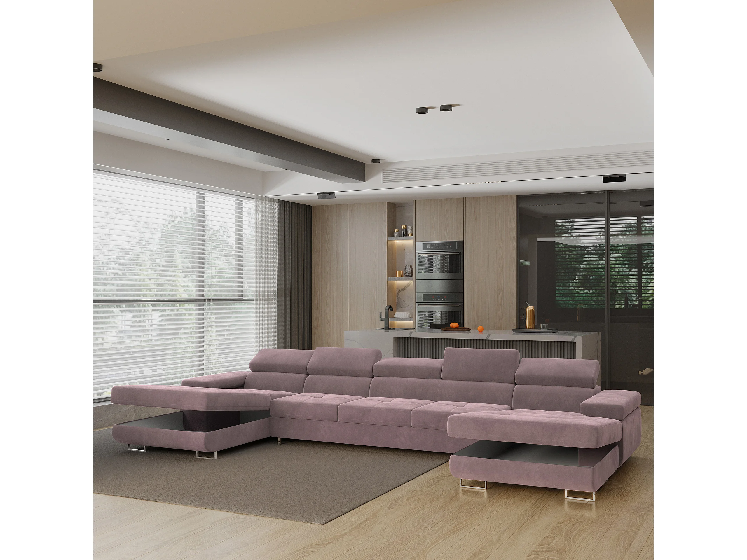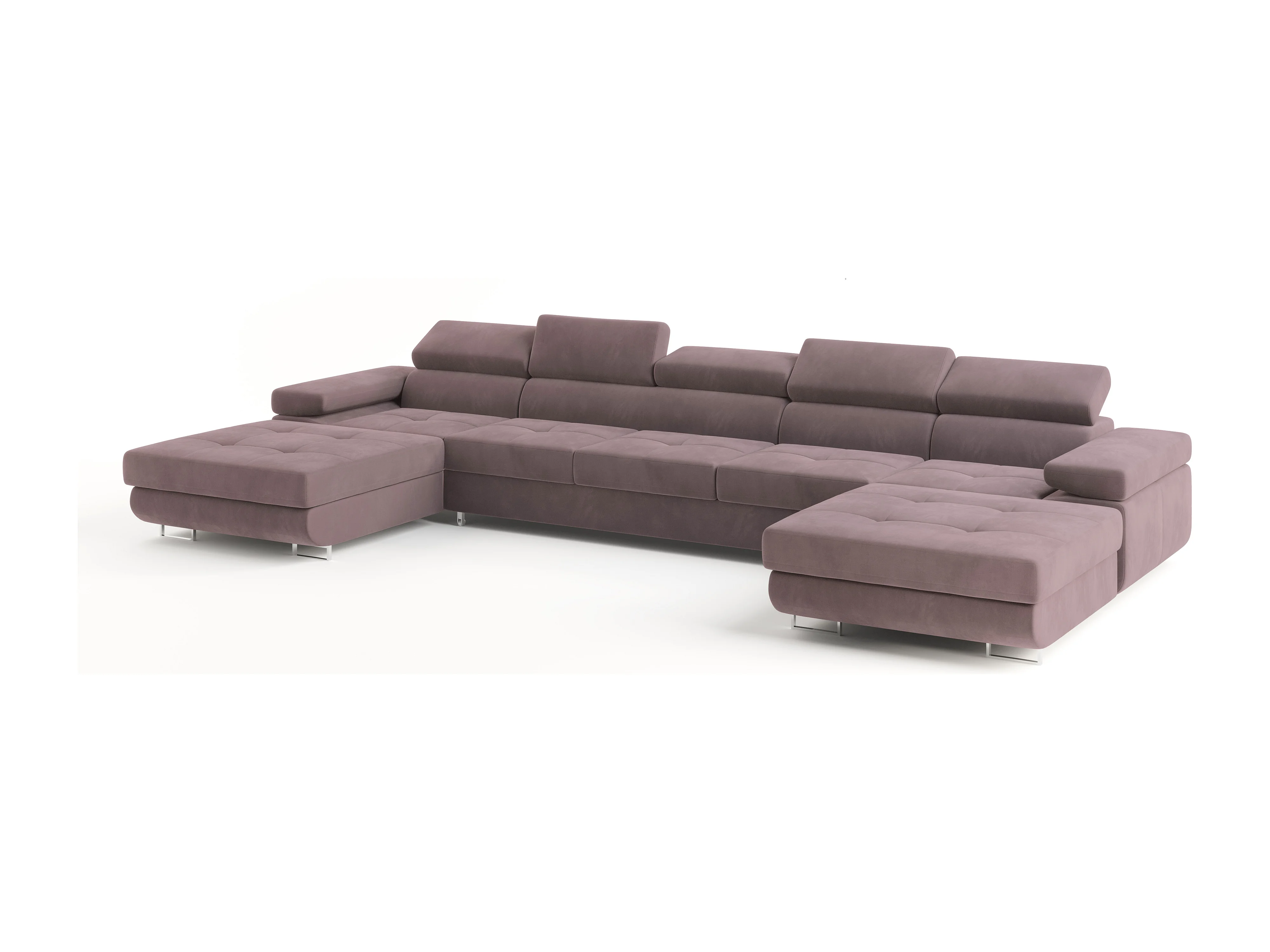Canapé d'angle OMBRA Violet en velours avec fonction de couchage