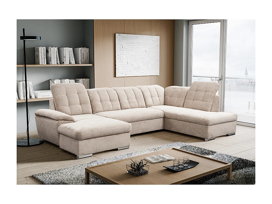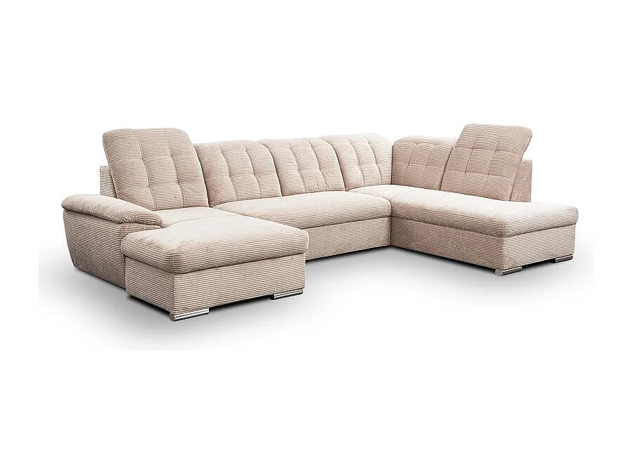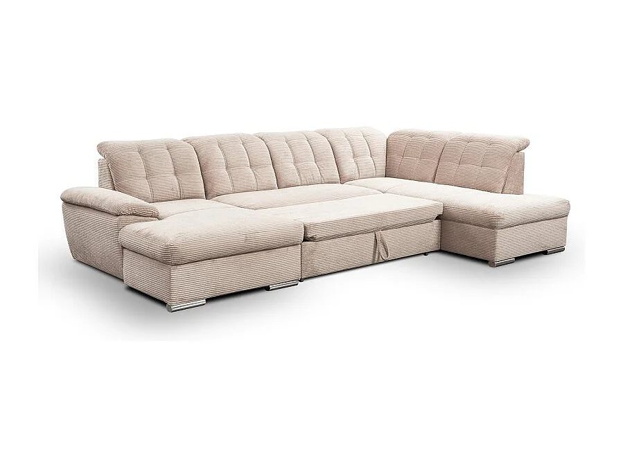 Canapé d’angle panoramique ATLANTIO lit et coffre de rangement - velours côtelé