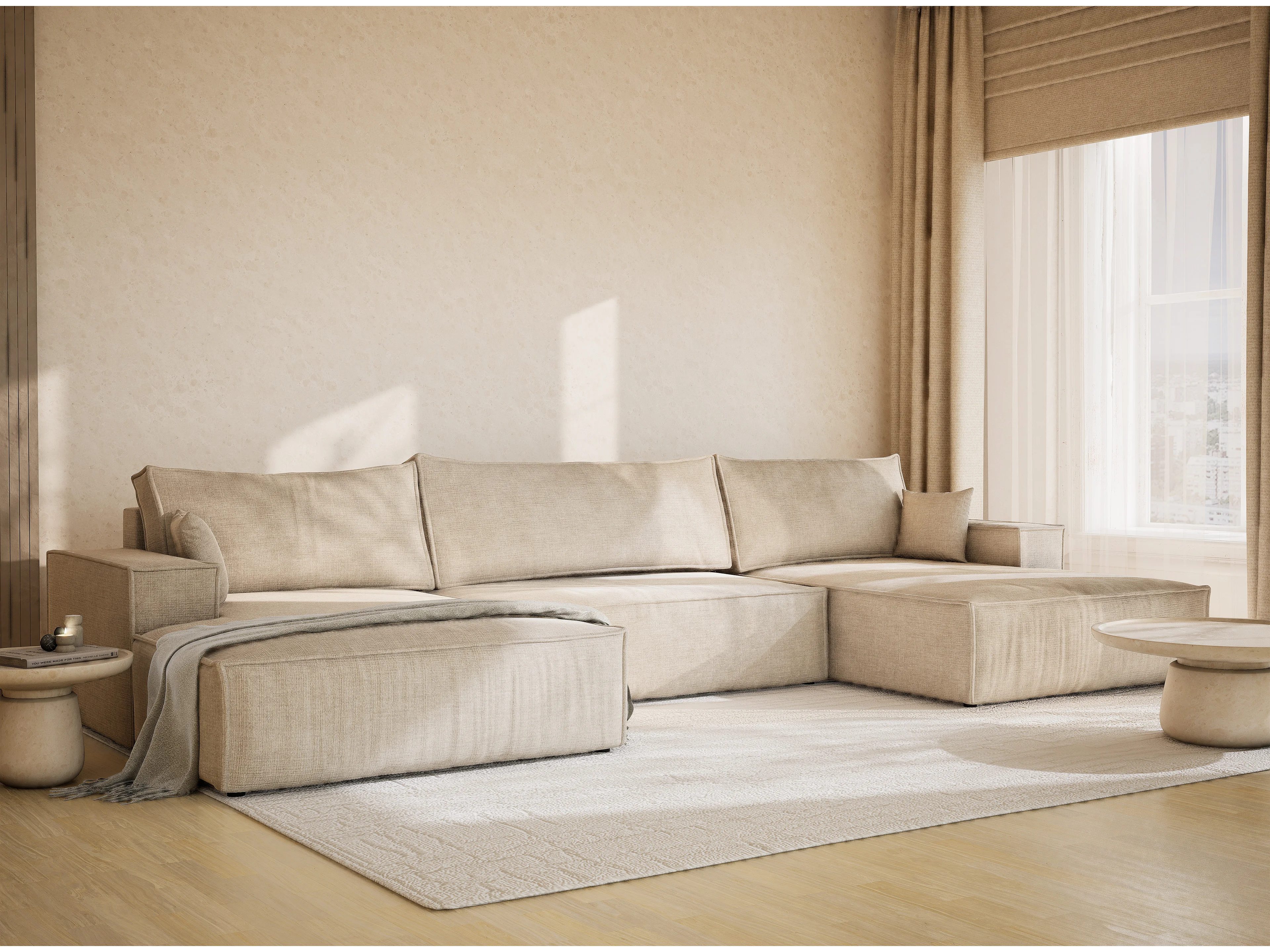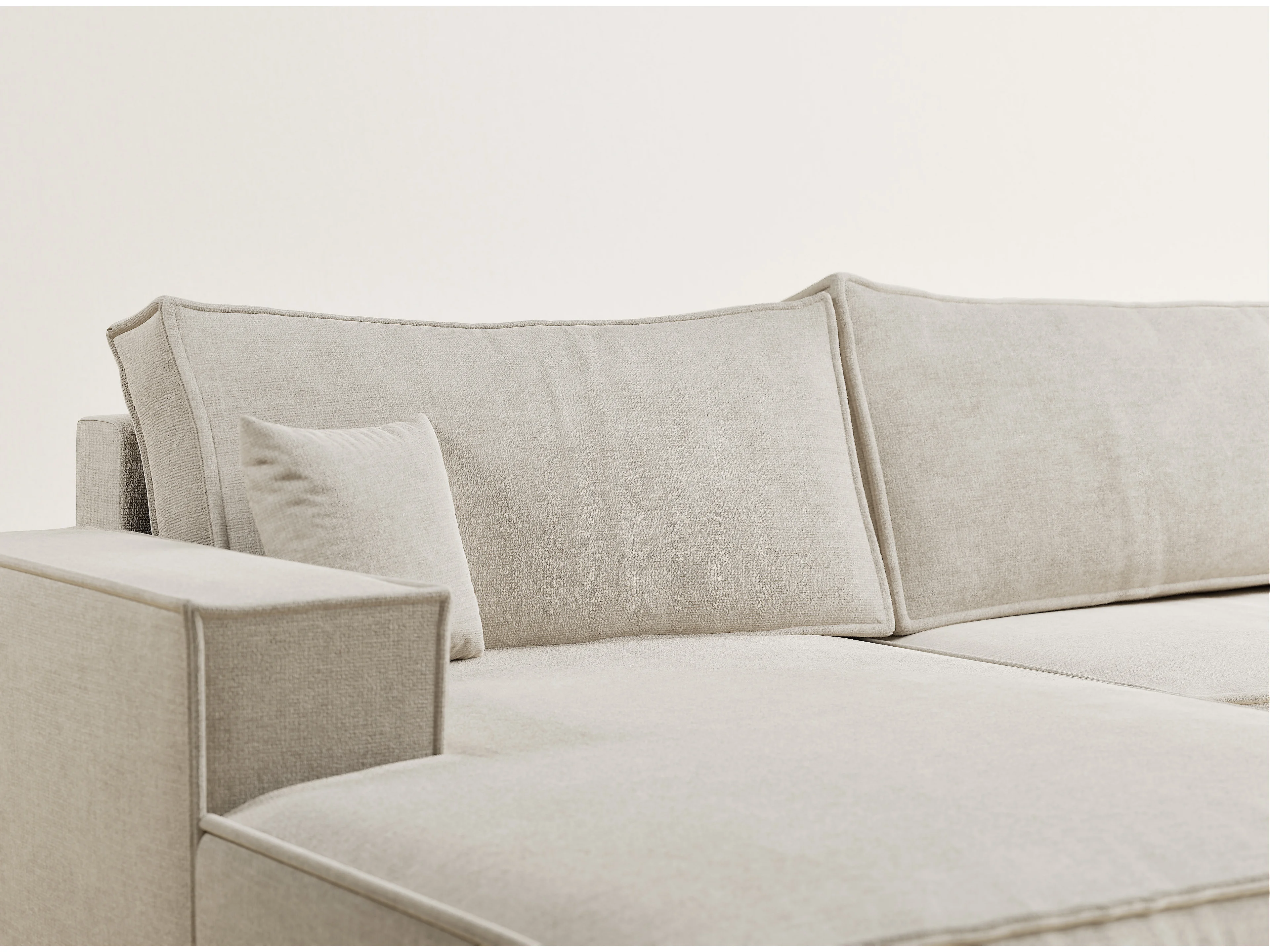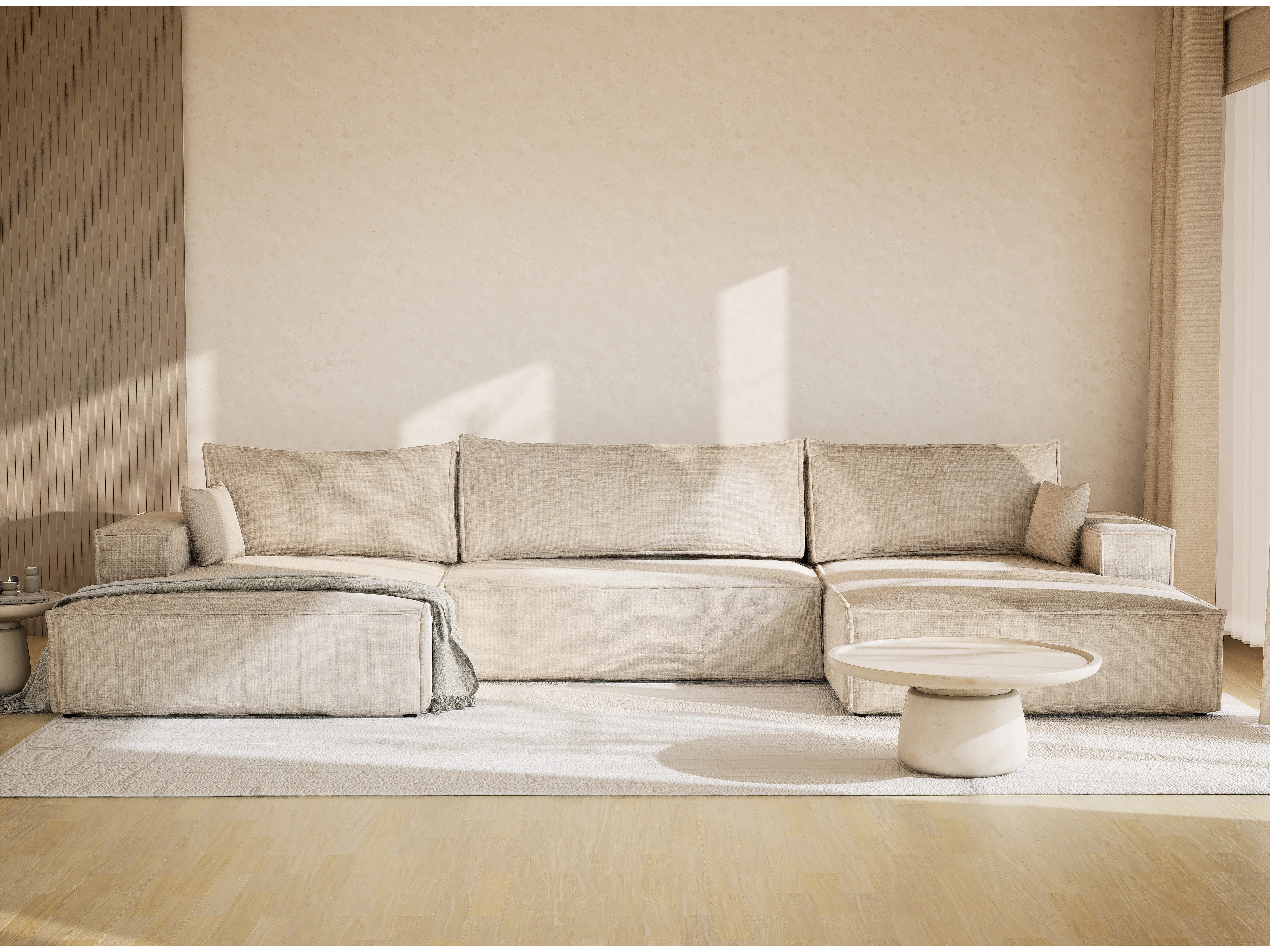 Canapé d'angle panoramique avec fonction lit en tissu chenille beige KYOTO