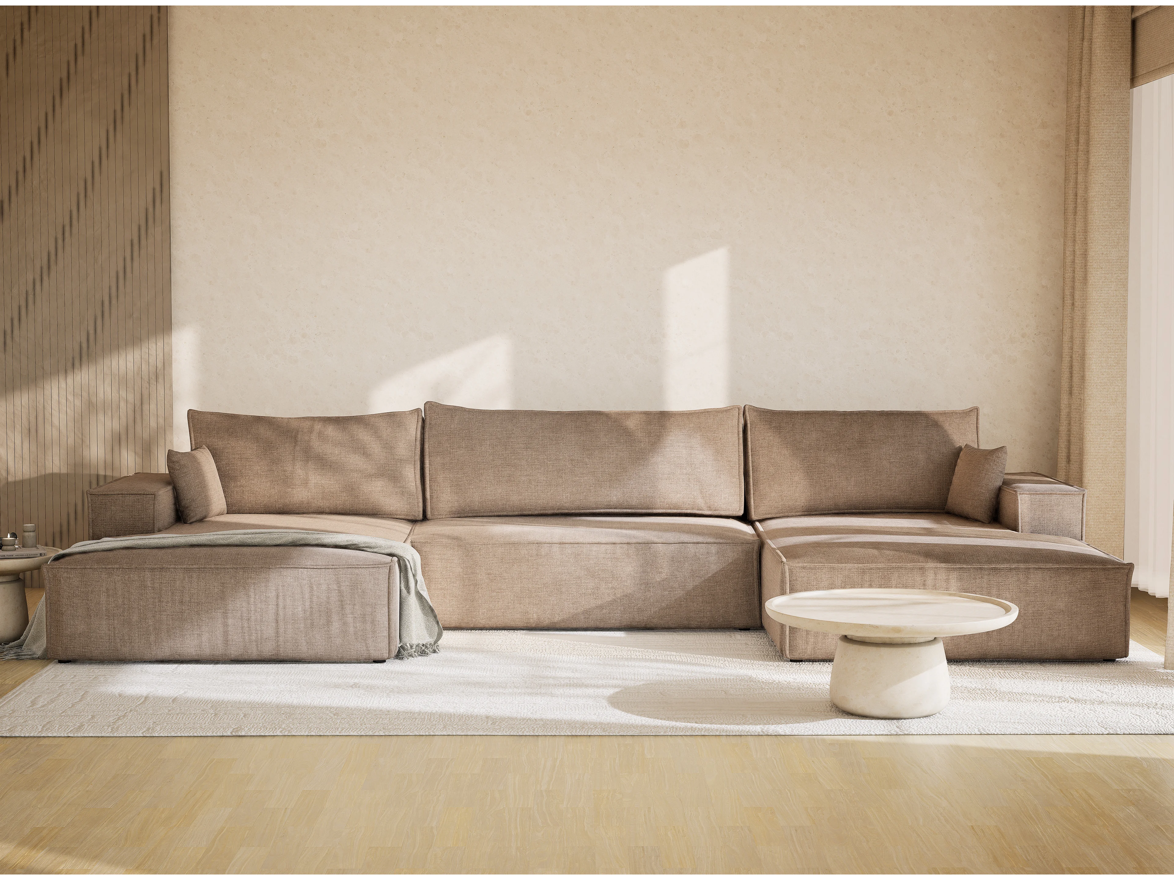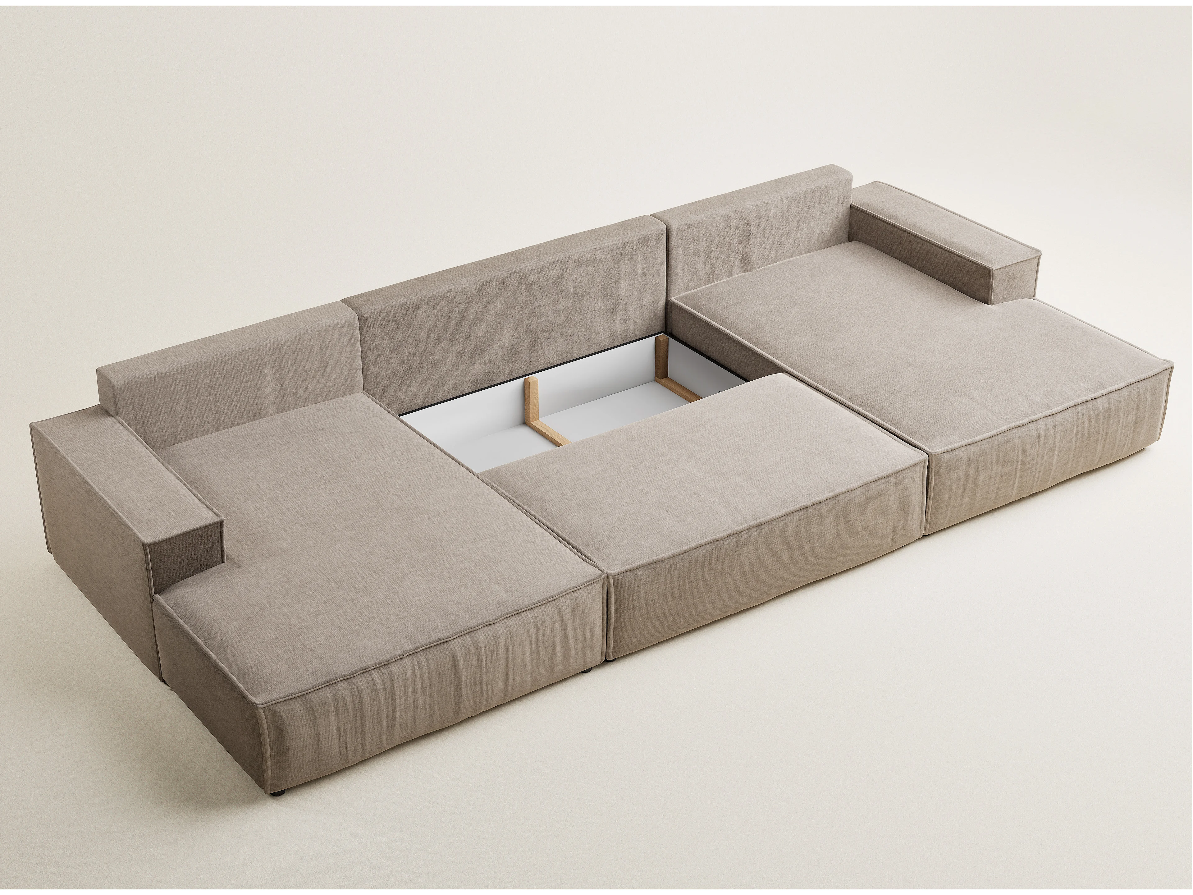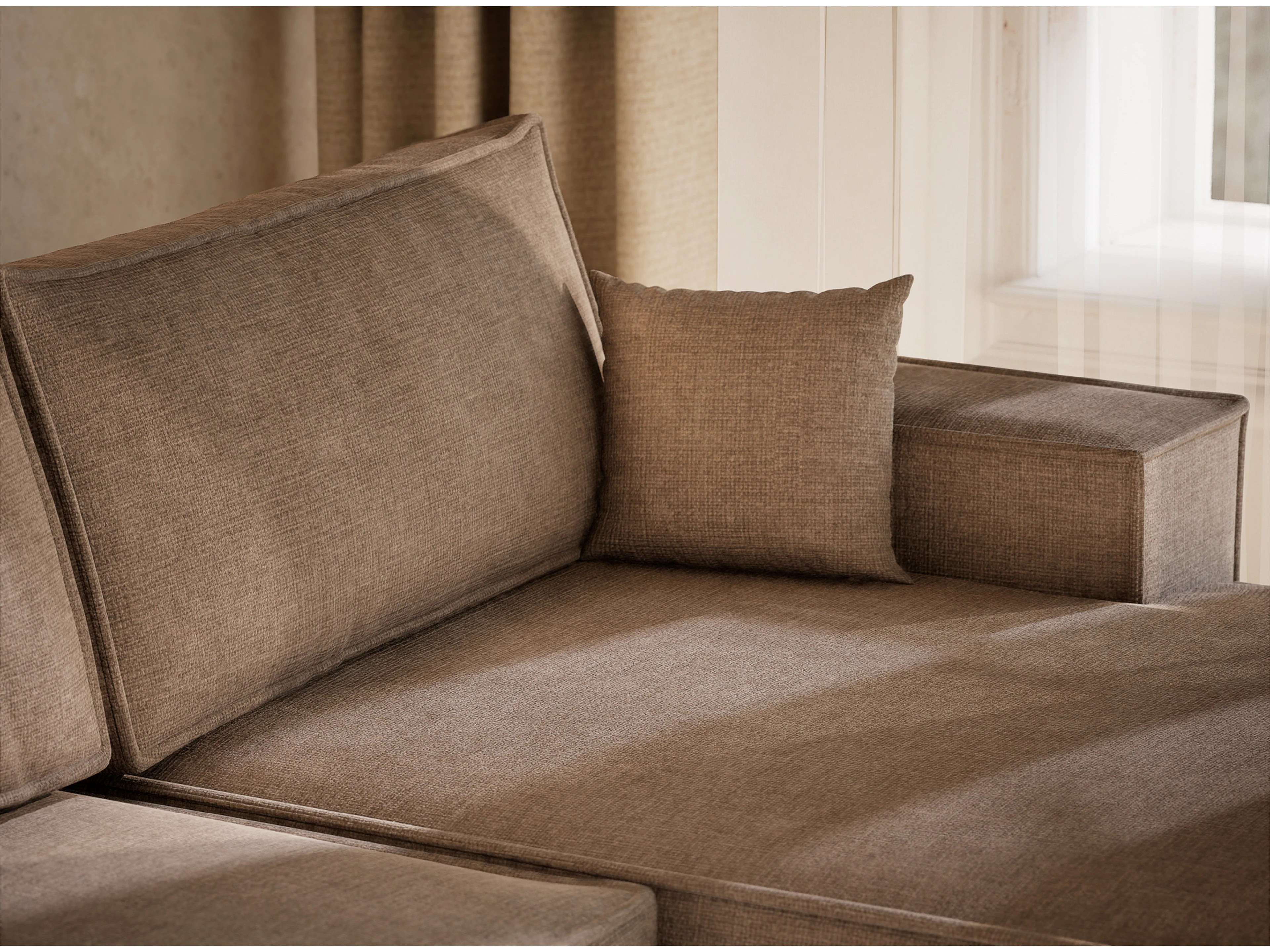 Canapé d'angle panoramique avec fonction lit en tissu chenille brun gris KYOTO