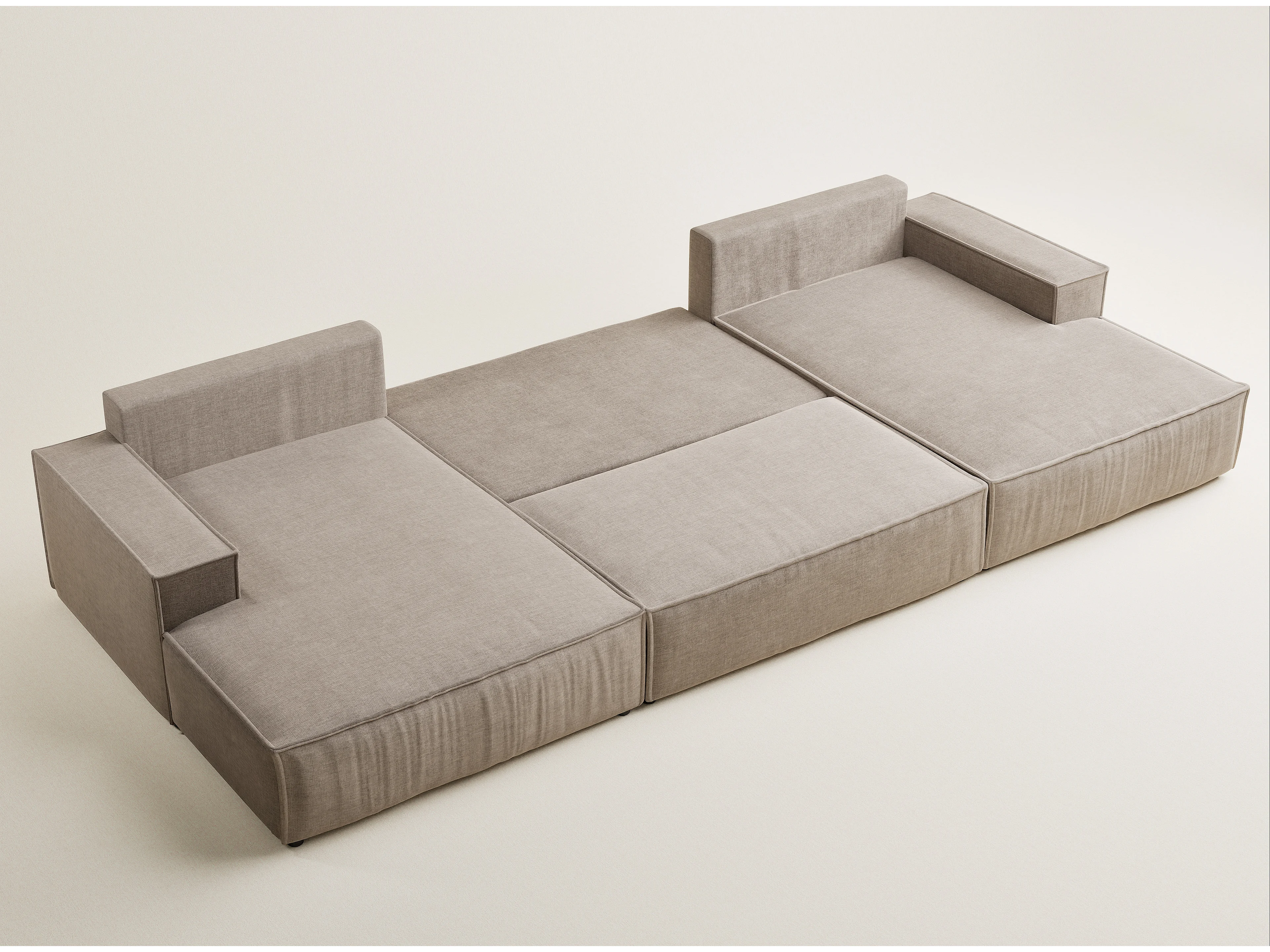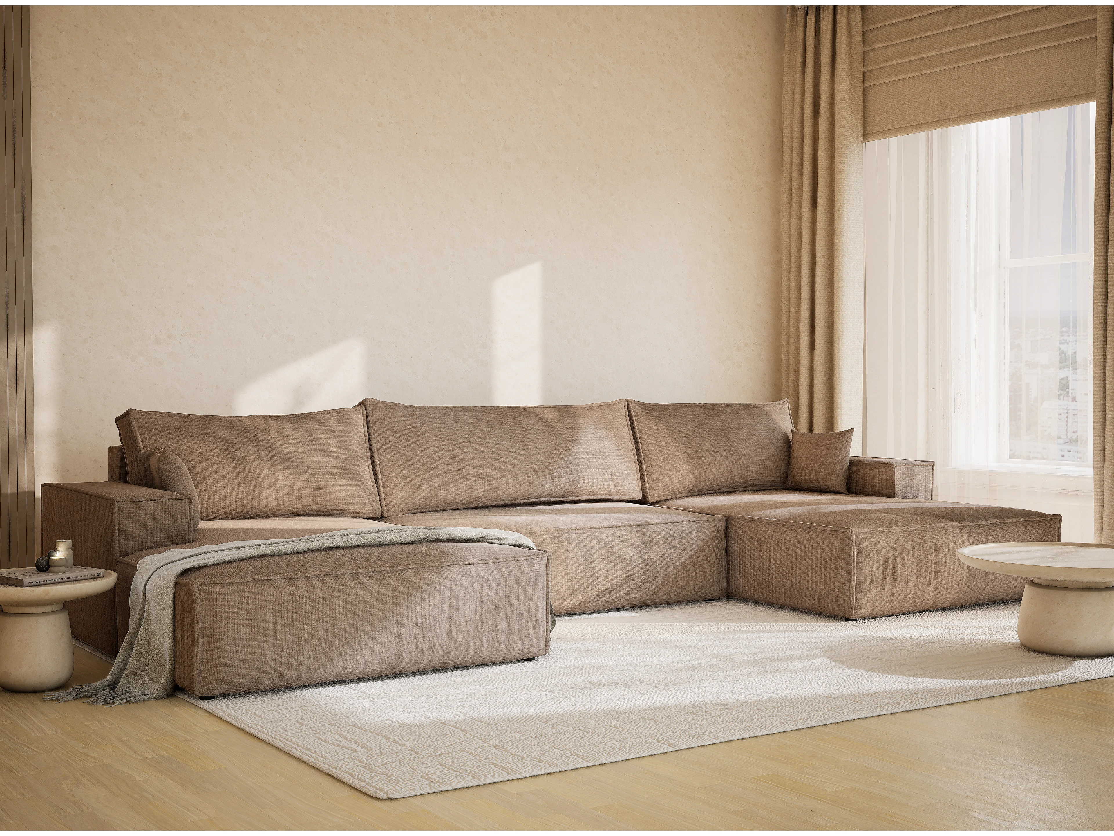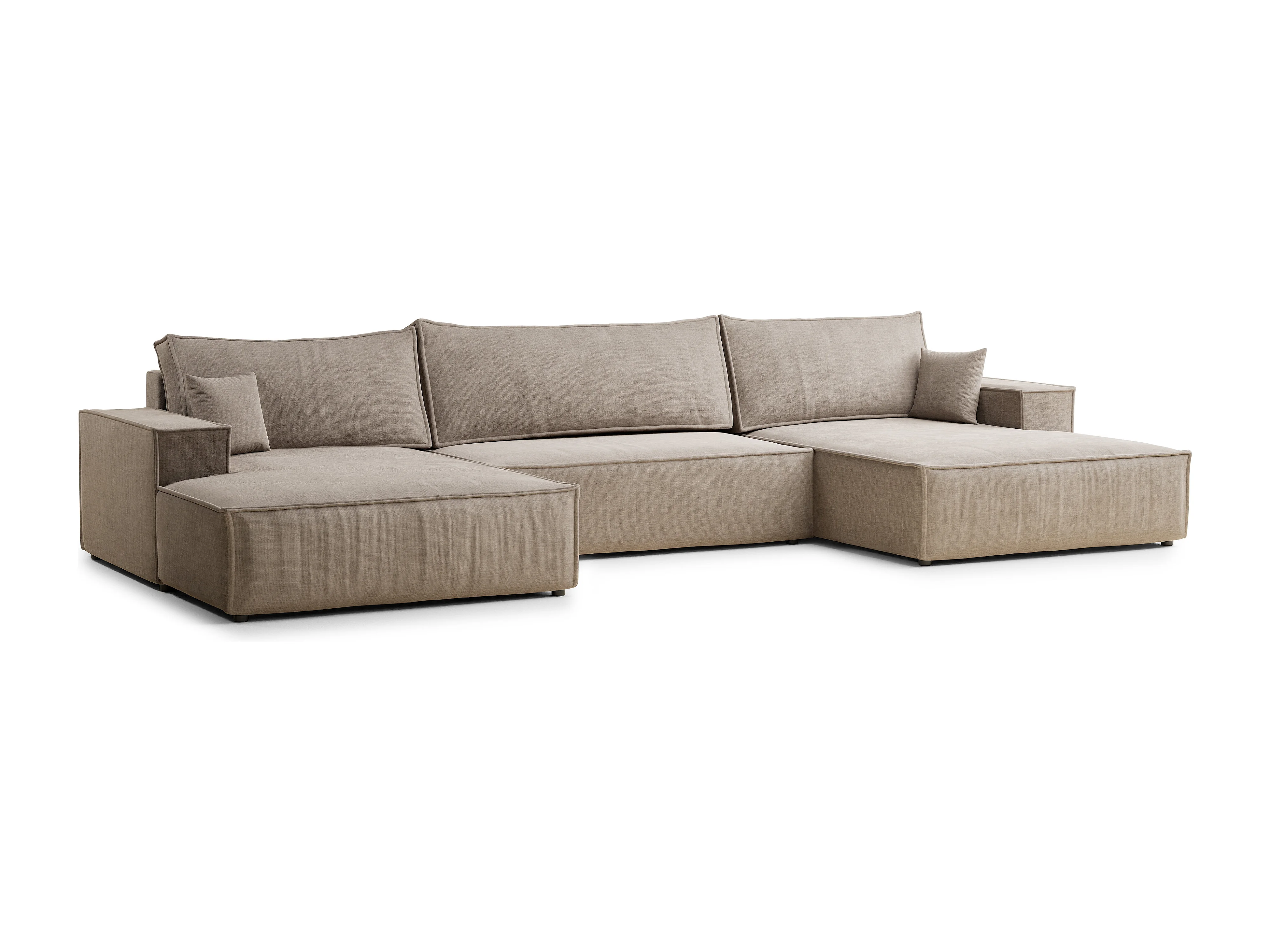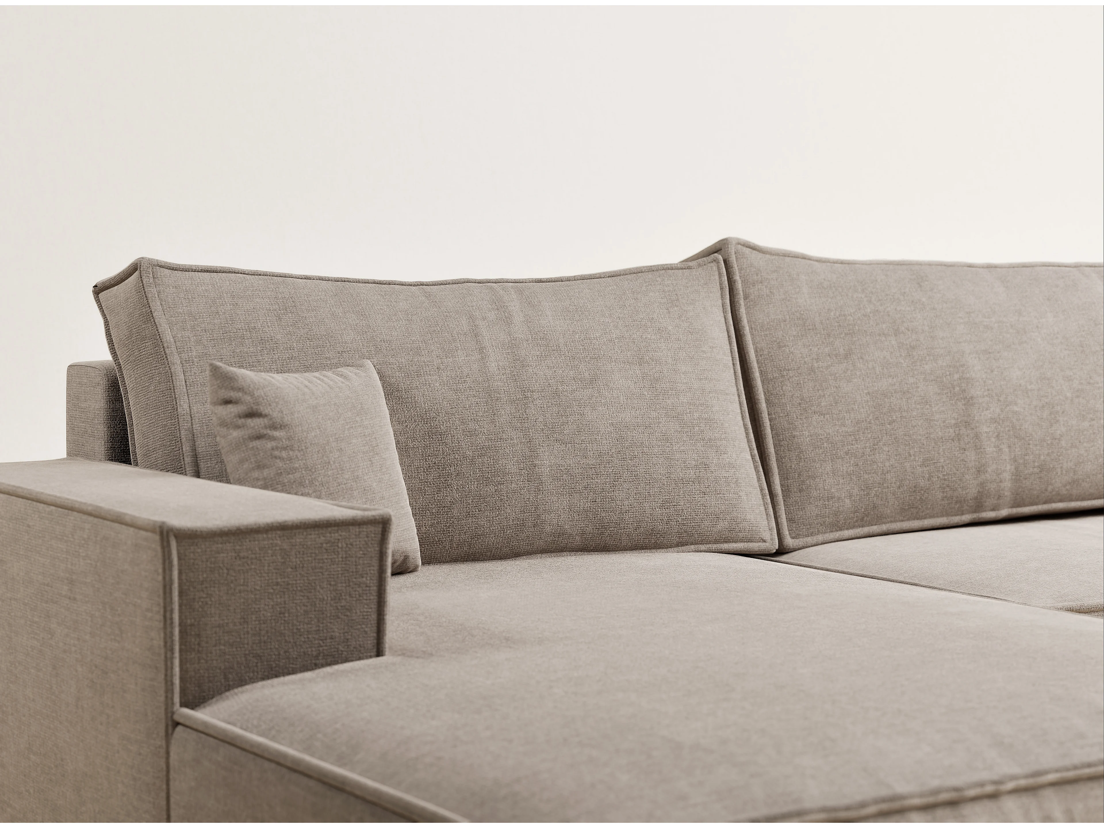 Canapé d'angle panoramique avec fonction lit en tissu chenille brun gris KYOTO