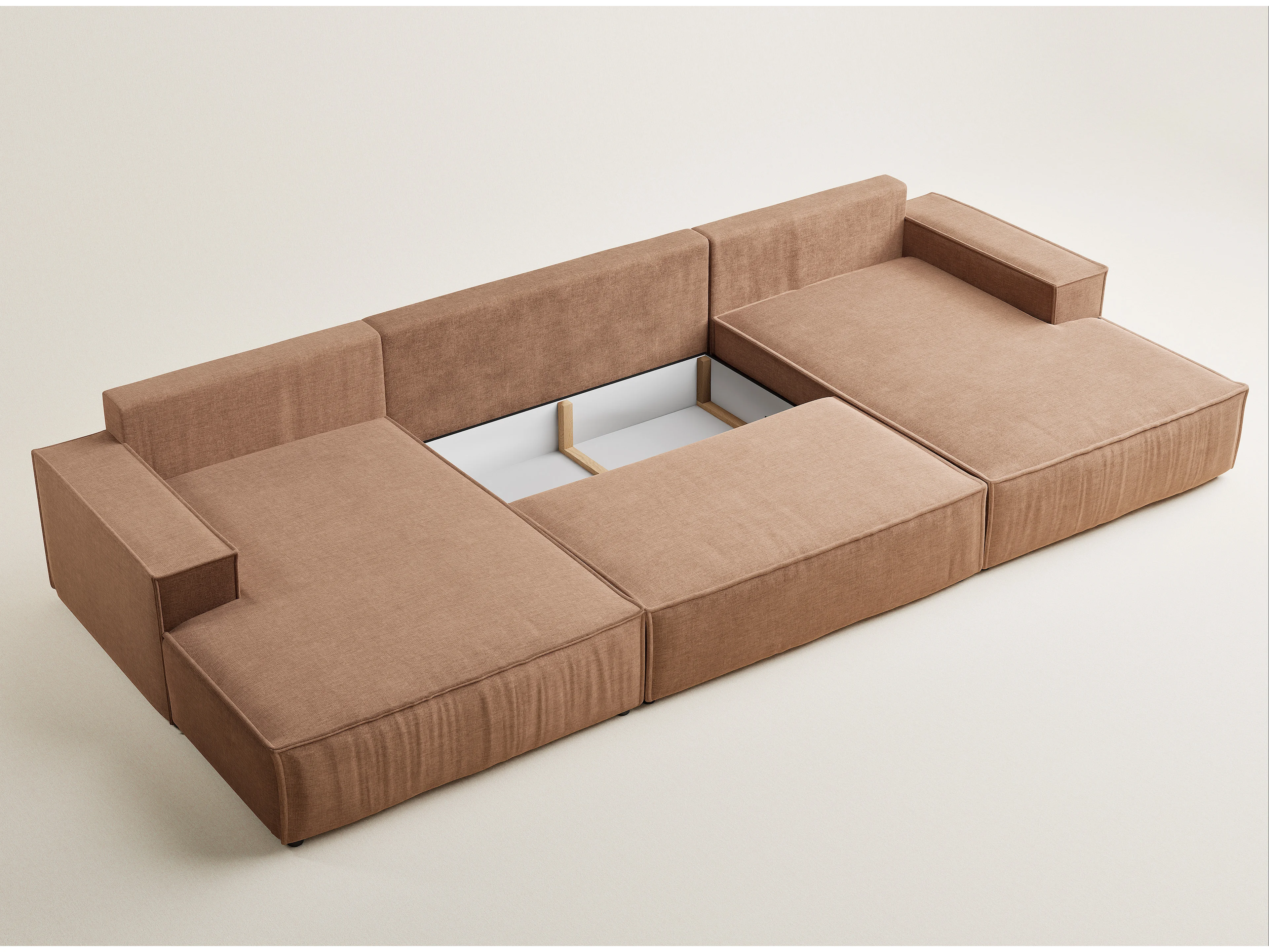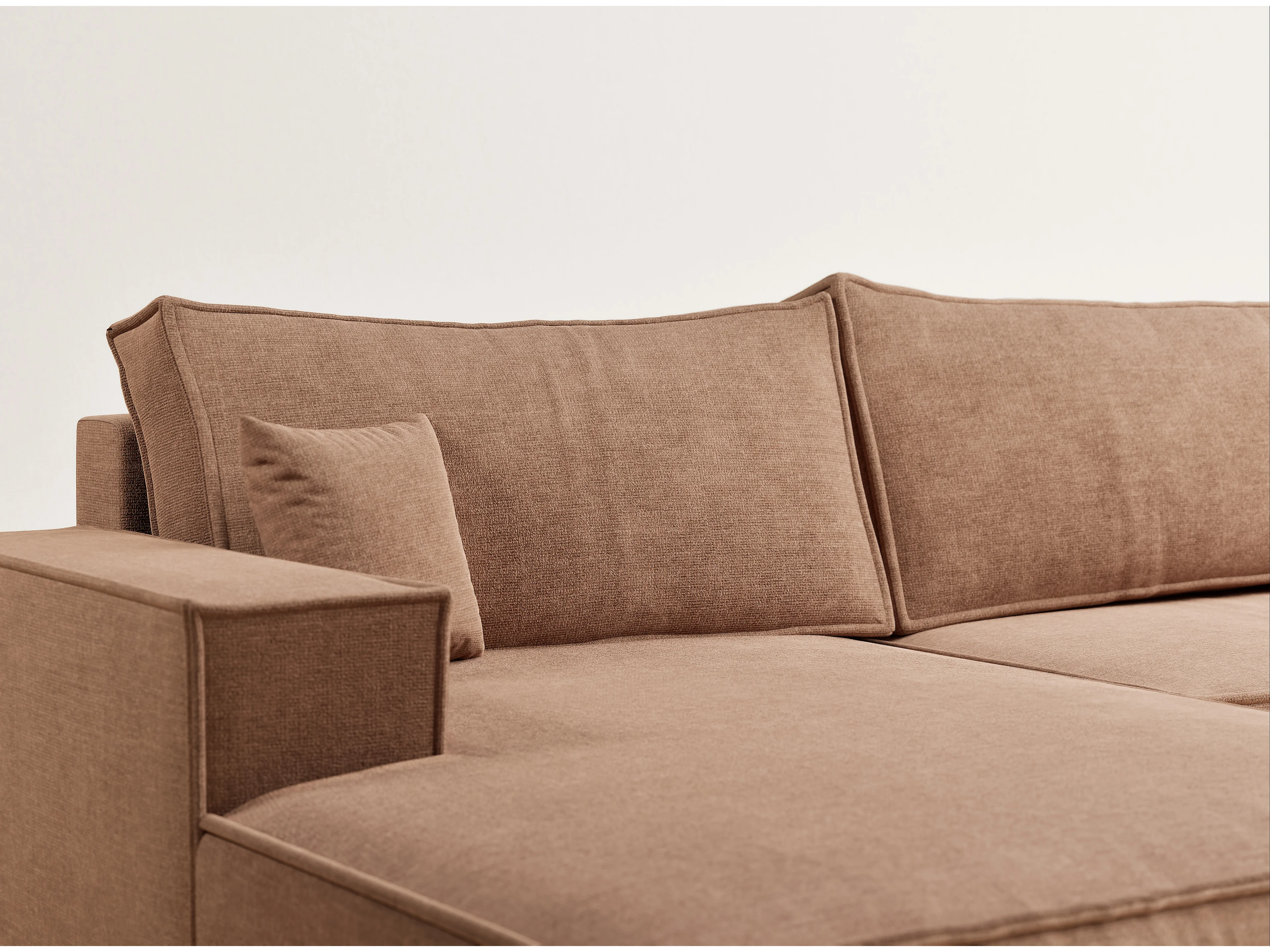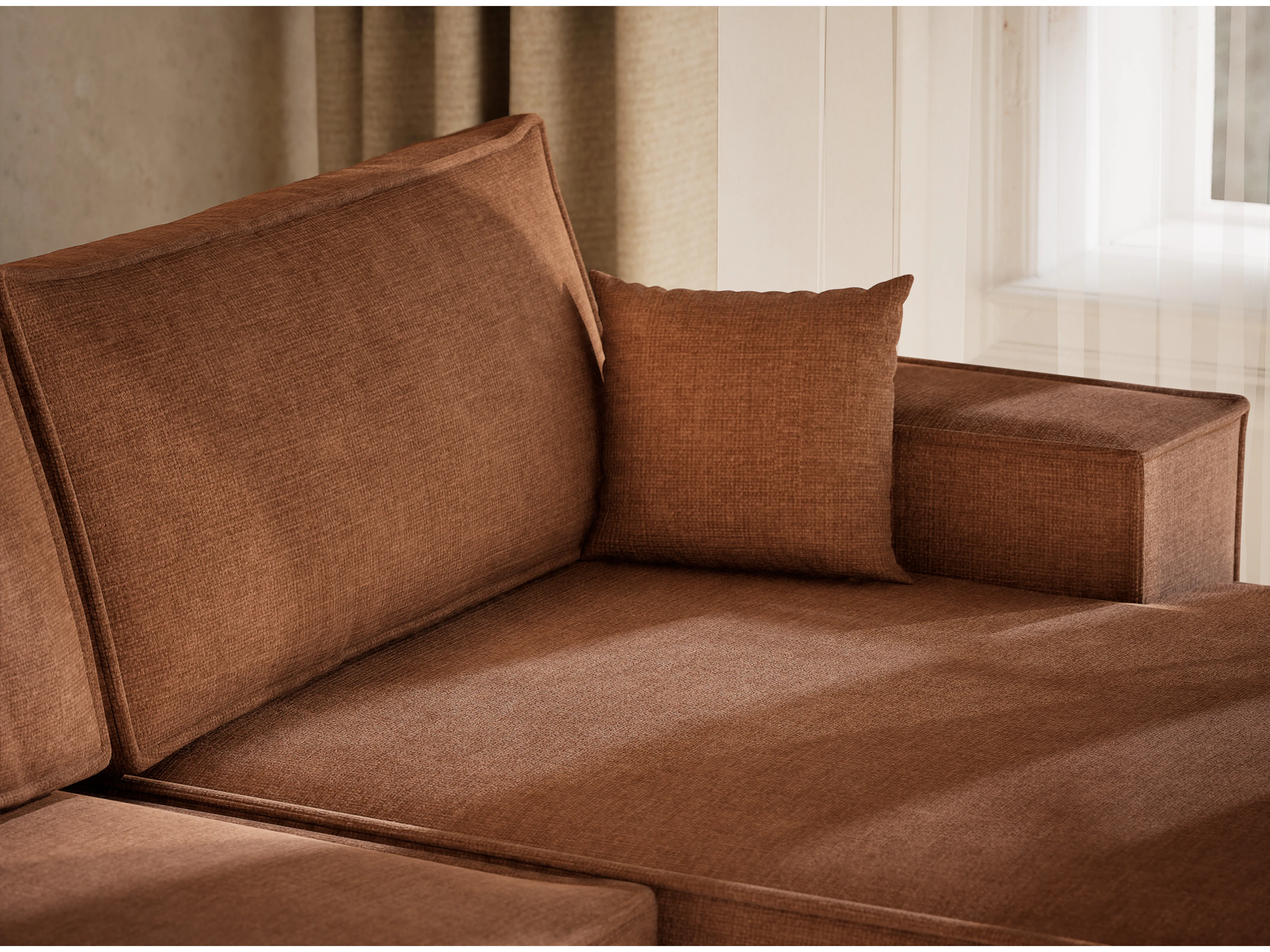 Canapé d'angle panoramique avec fonction lit en tissu chenille brun KYOTO