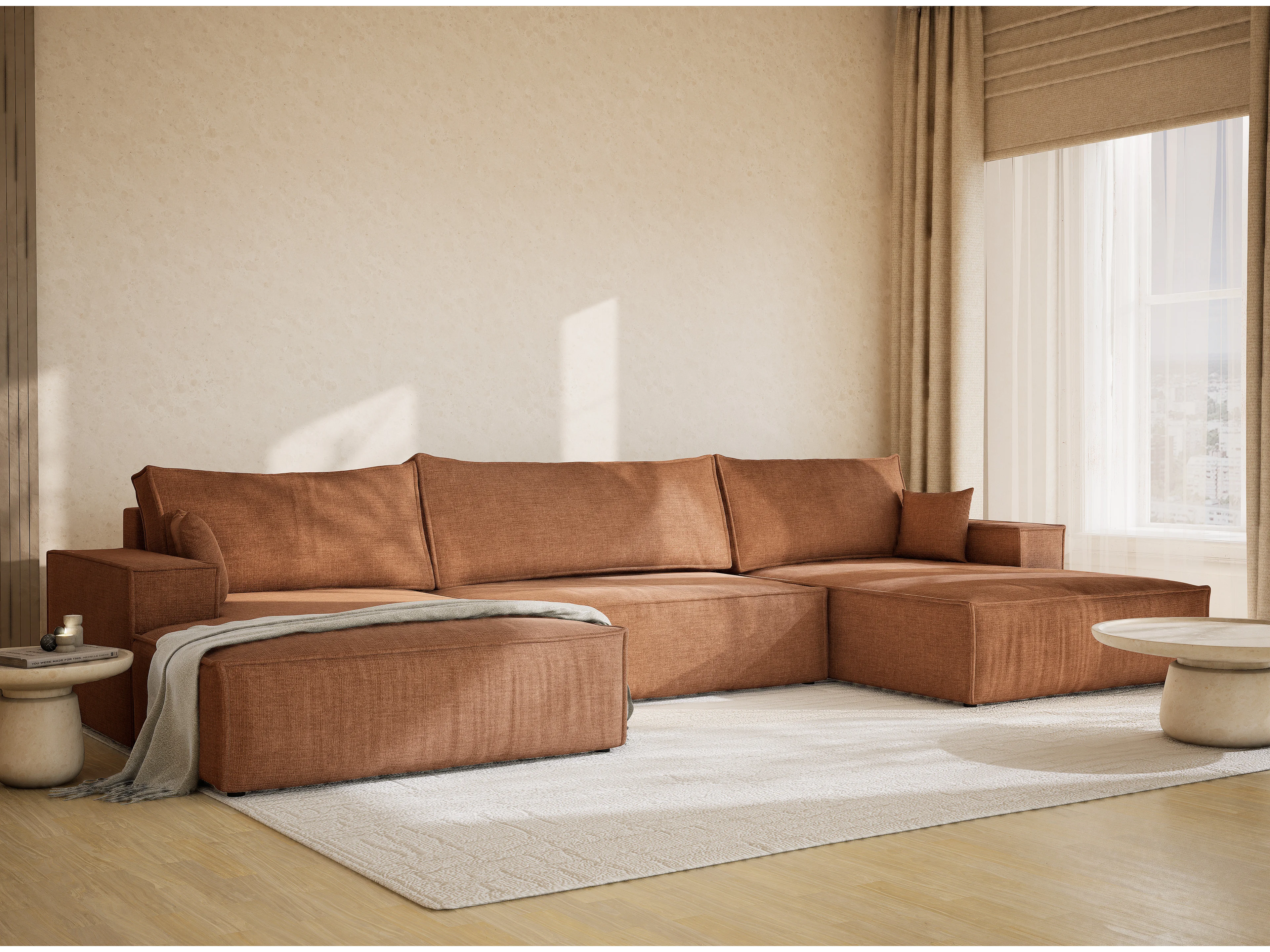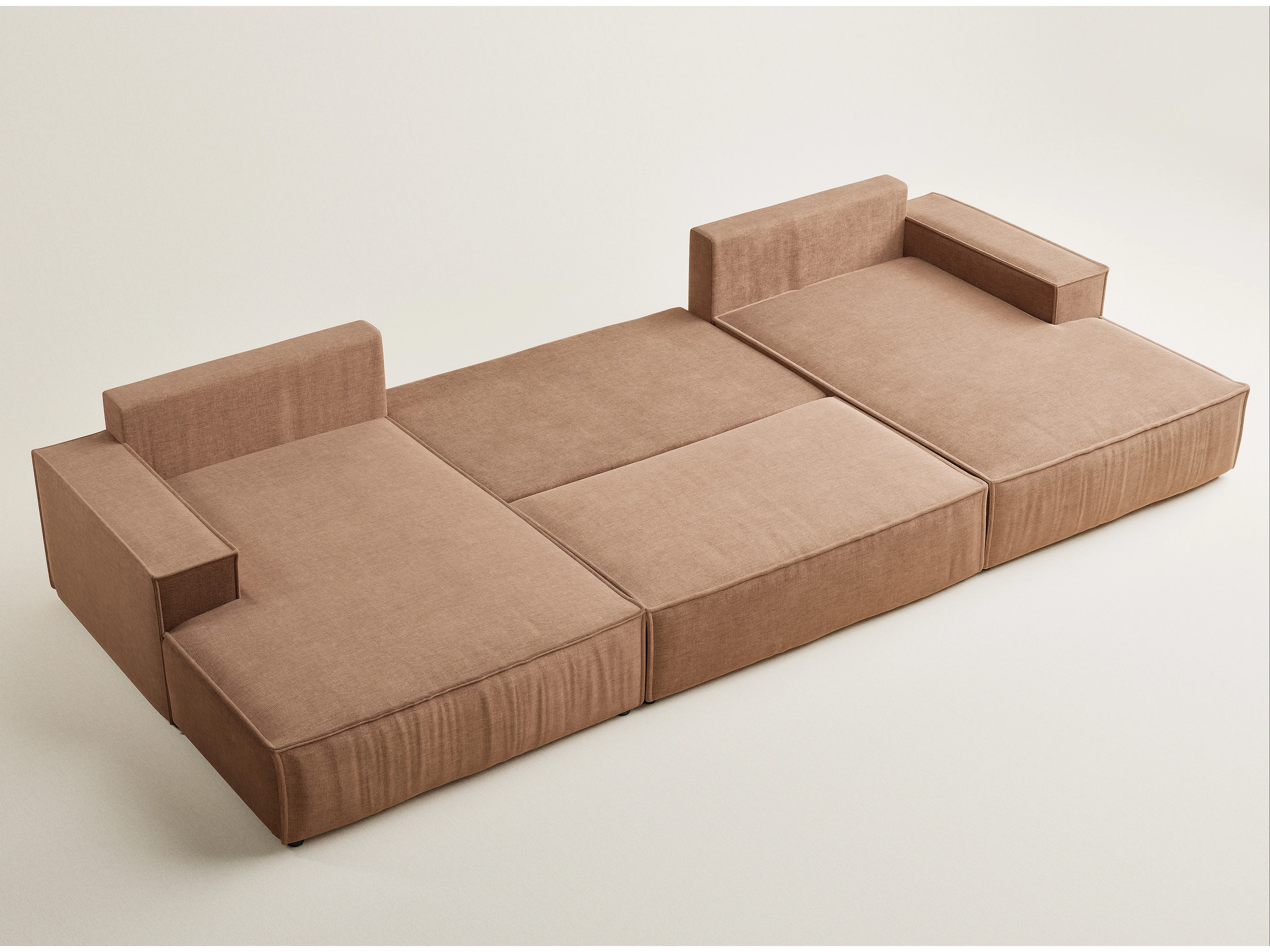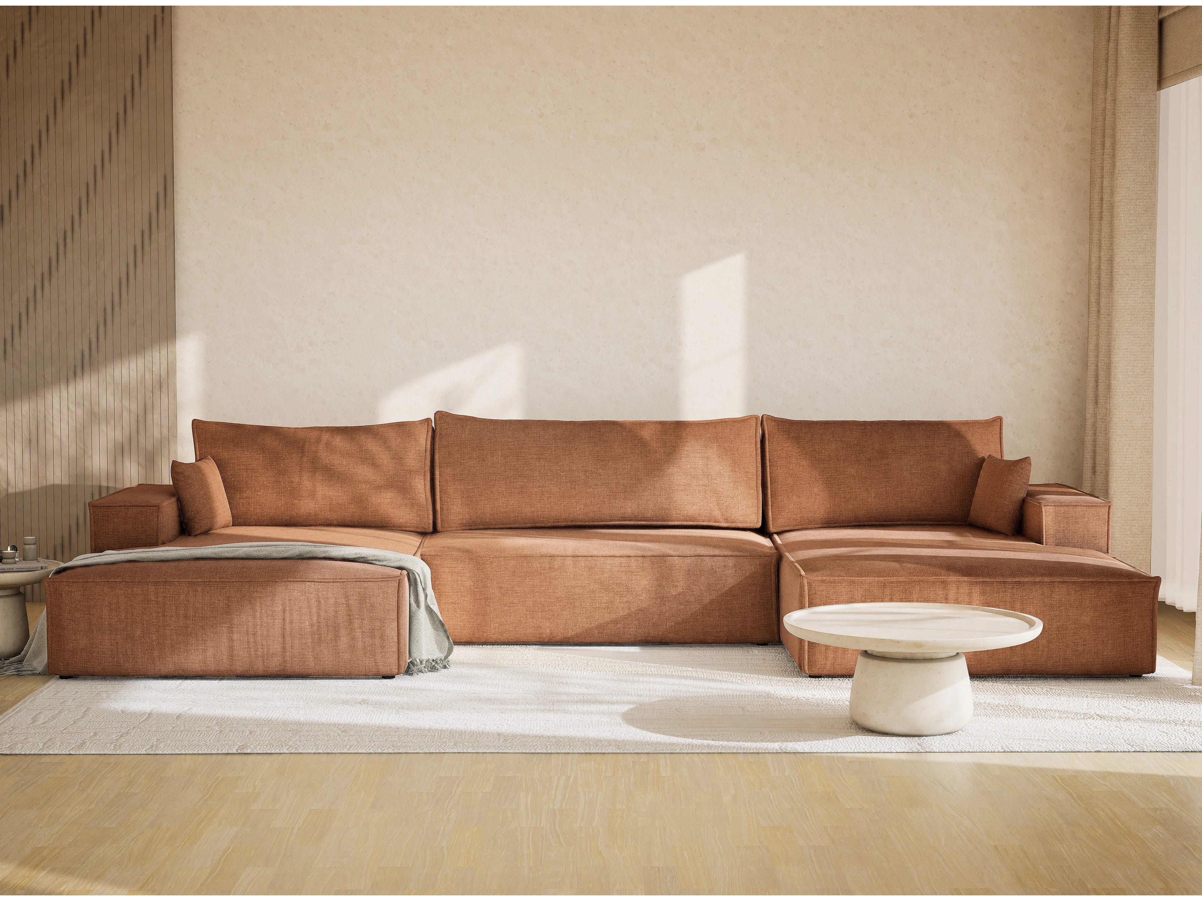 Canapé d'angle panoramique avec fonction lit en tissu chenille brun KYOTO