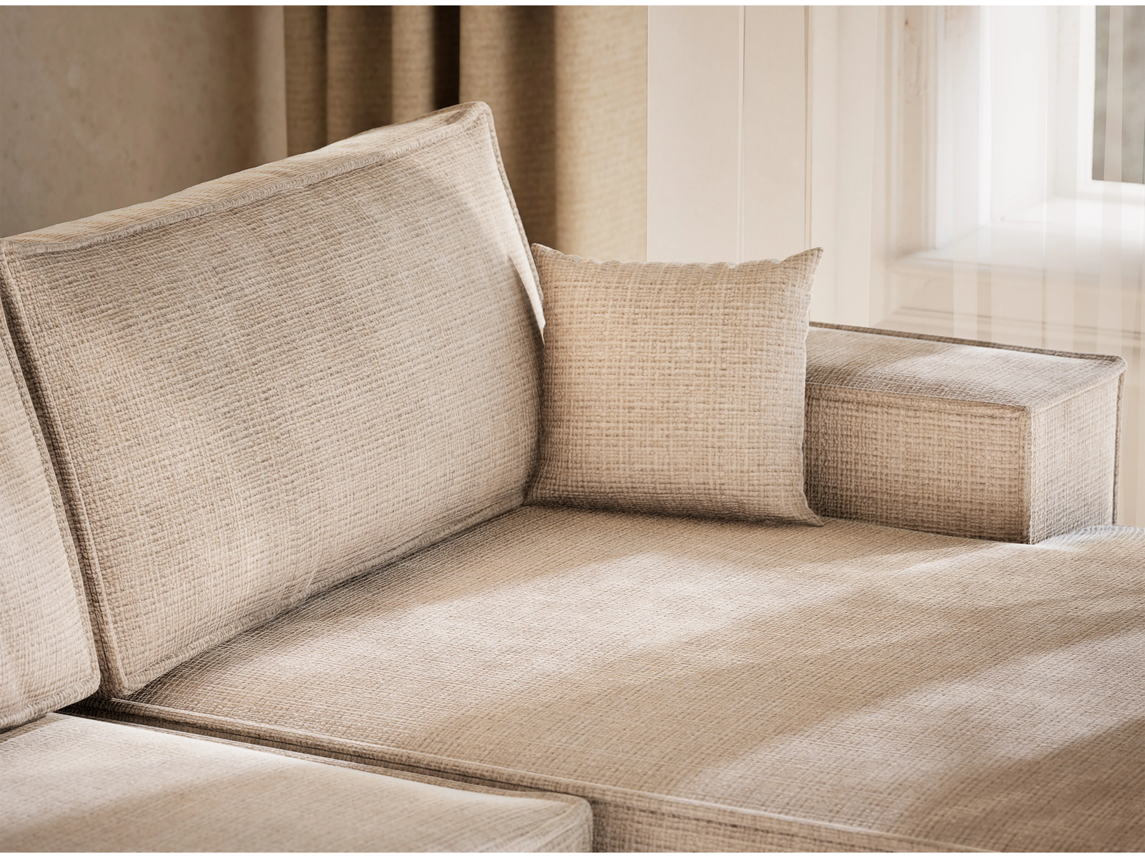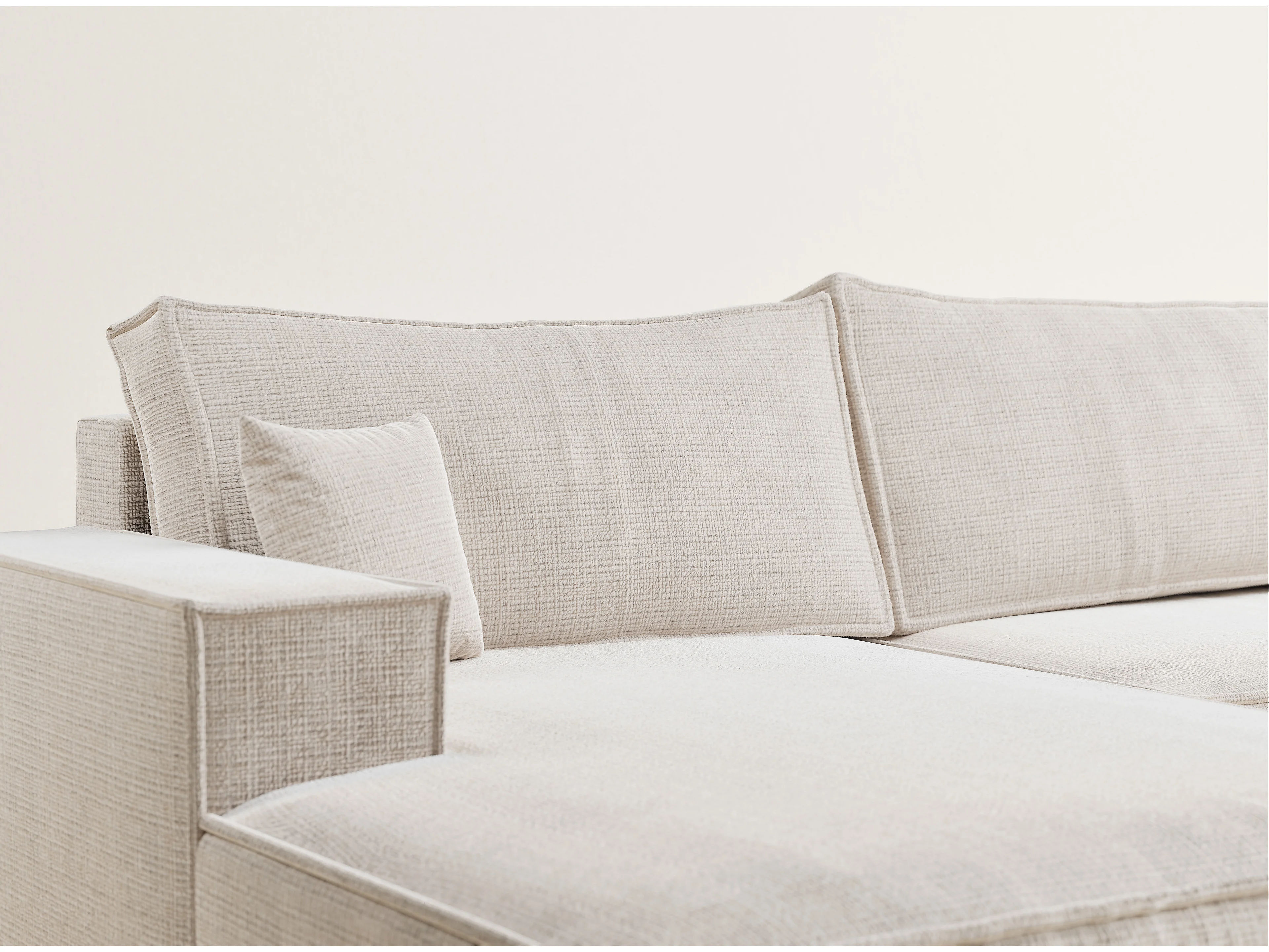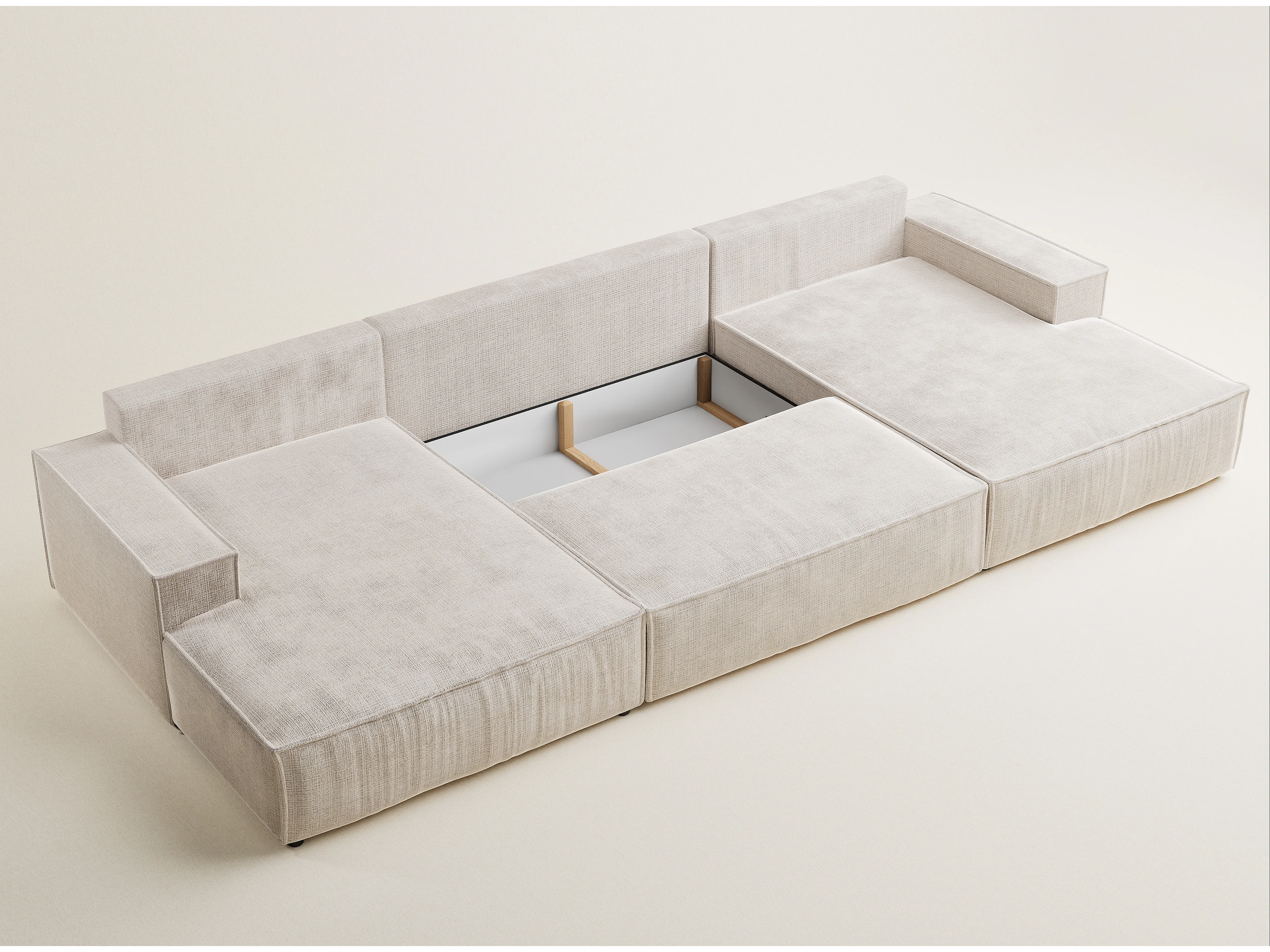 Canapé d'angle panoramique avec fonction lit en tissu chenille creme KYOTO